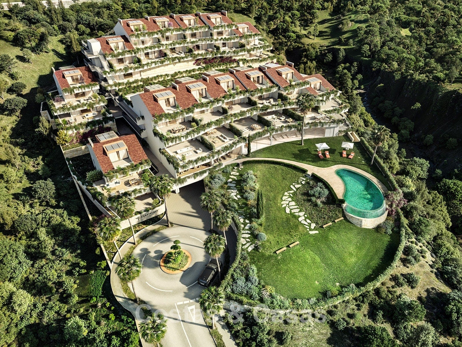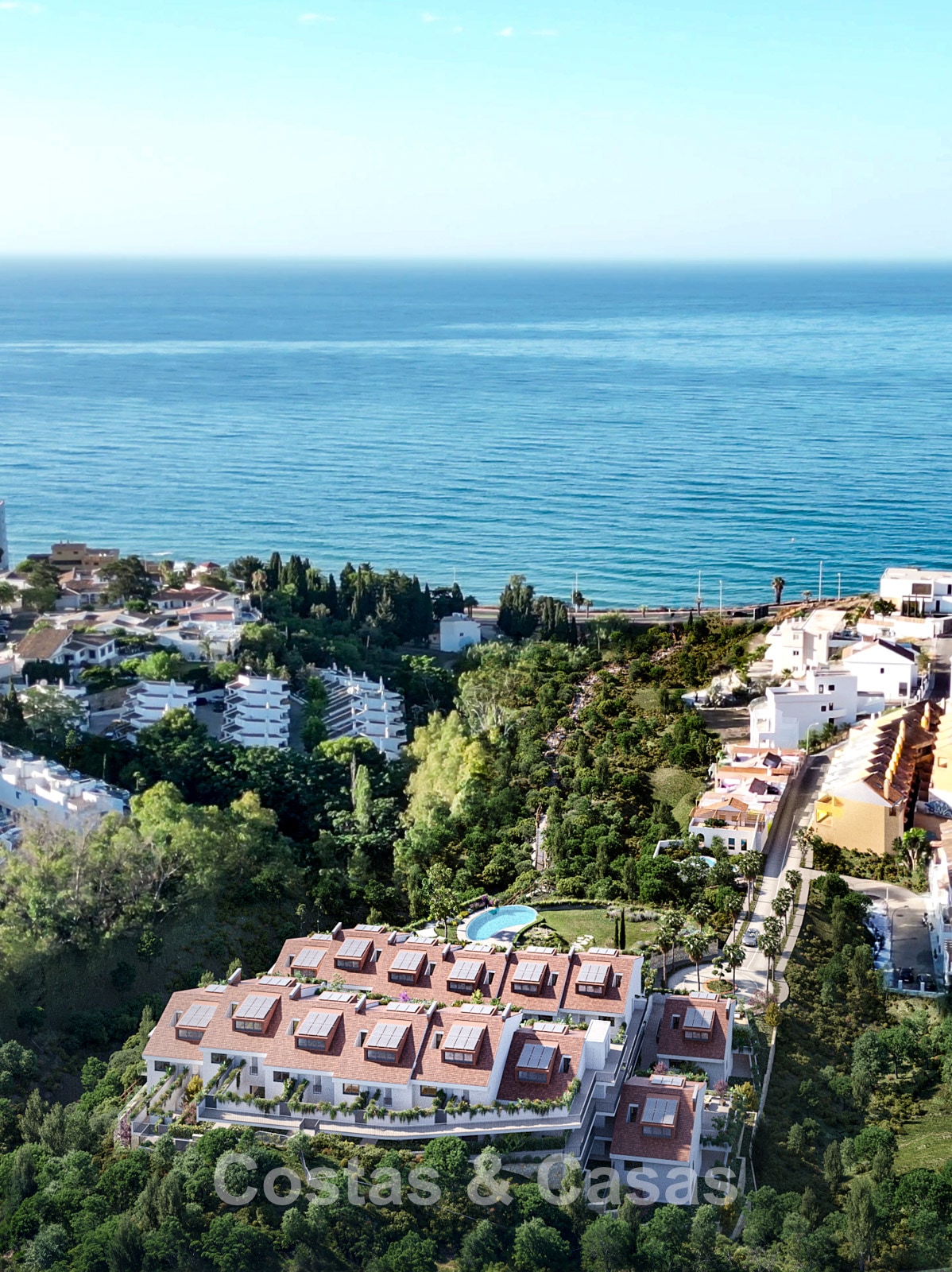 Les maisons sont situées sur une pente douce, toutes avec vue sur la mer, et bénéficient d'un accès direct à la côte par le magnifique parc public paysager situé en face du complexe.