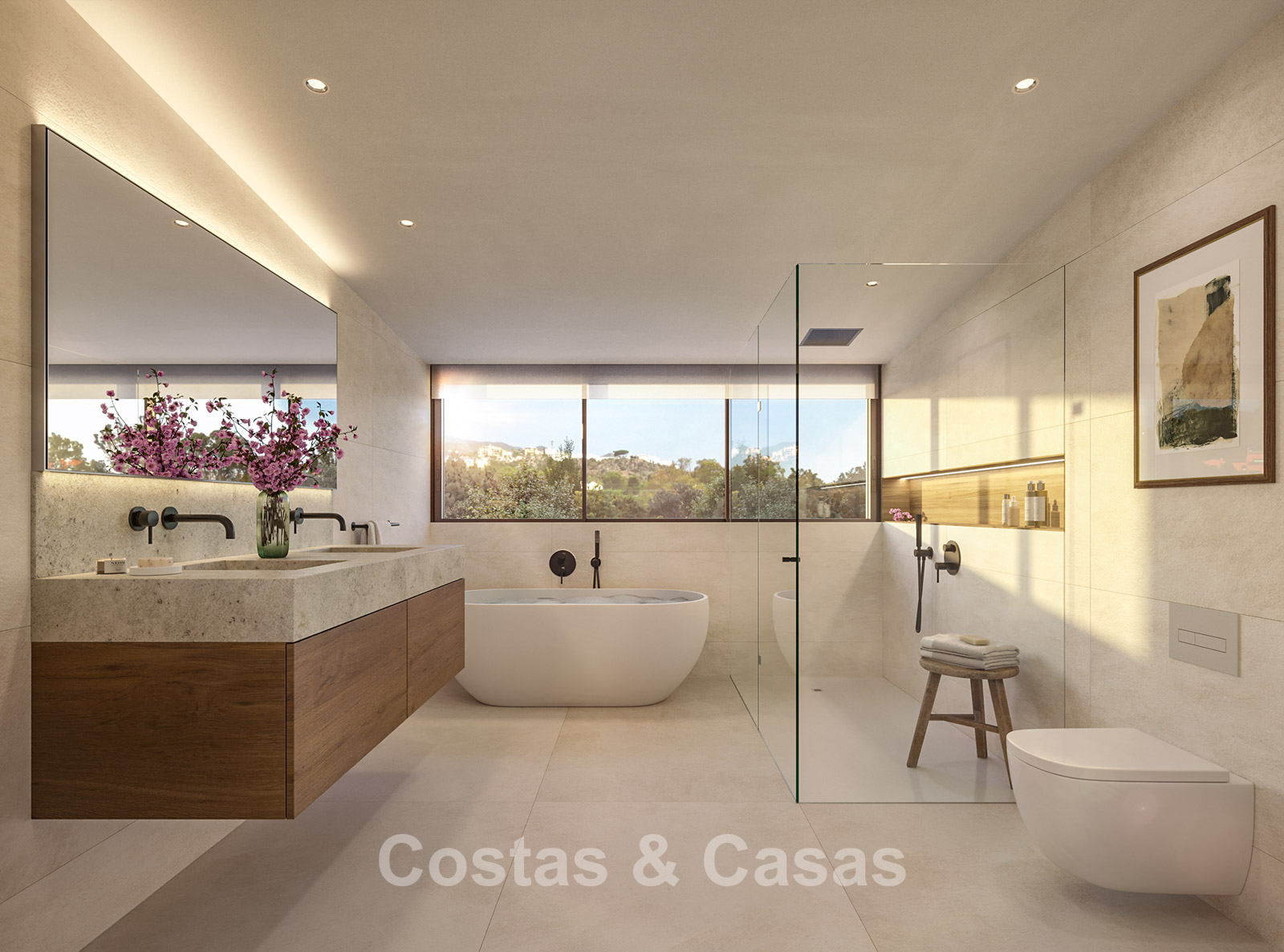 Autres caractéristiques : Climatisation pour le refroidissement et le chauffage. Système aérothermique pour l'eau chaude sanitaire. Chauffage au sol. Système de ventilation. Double vitrage. Appareils électroménagers Siemens ou similaires. Armoires intégrées. Sols en grès cérame. Installation télécom. Système domotique.