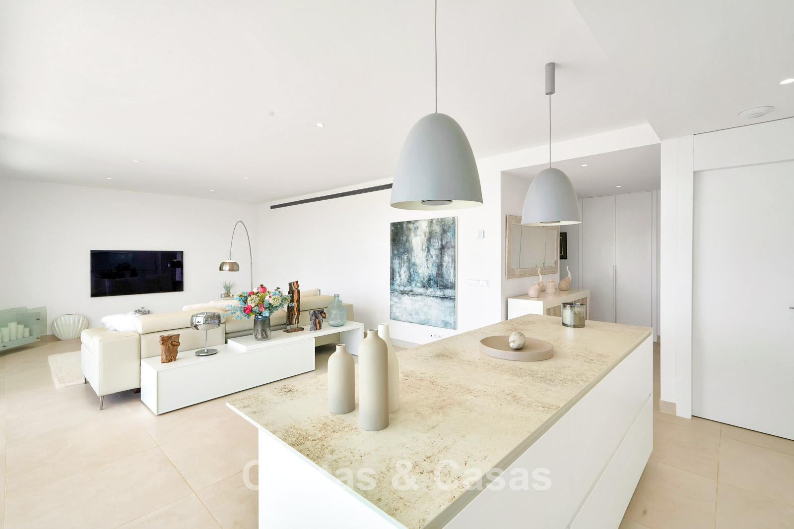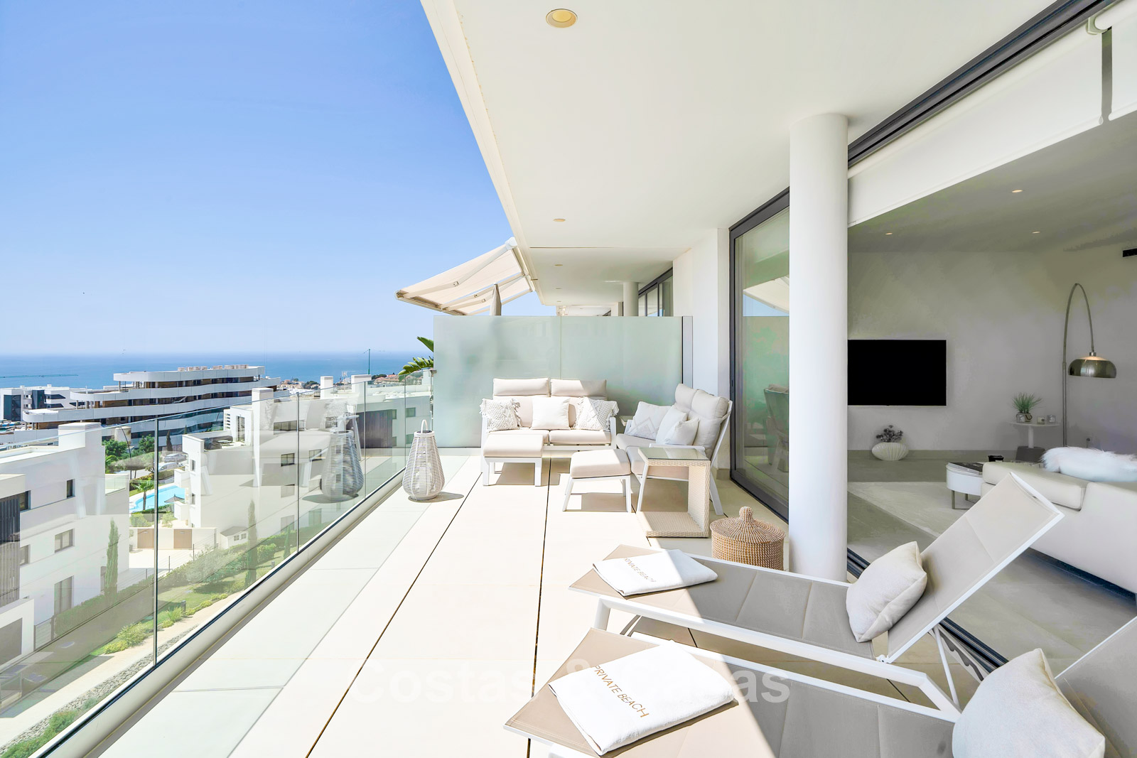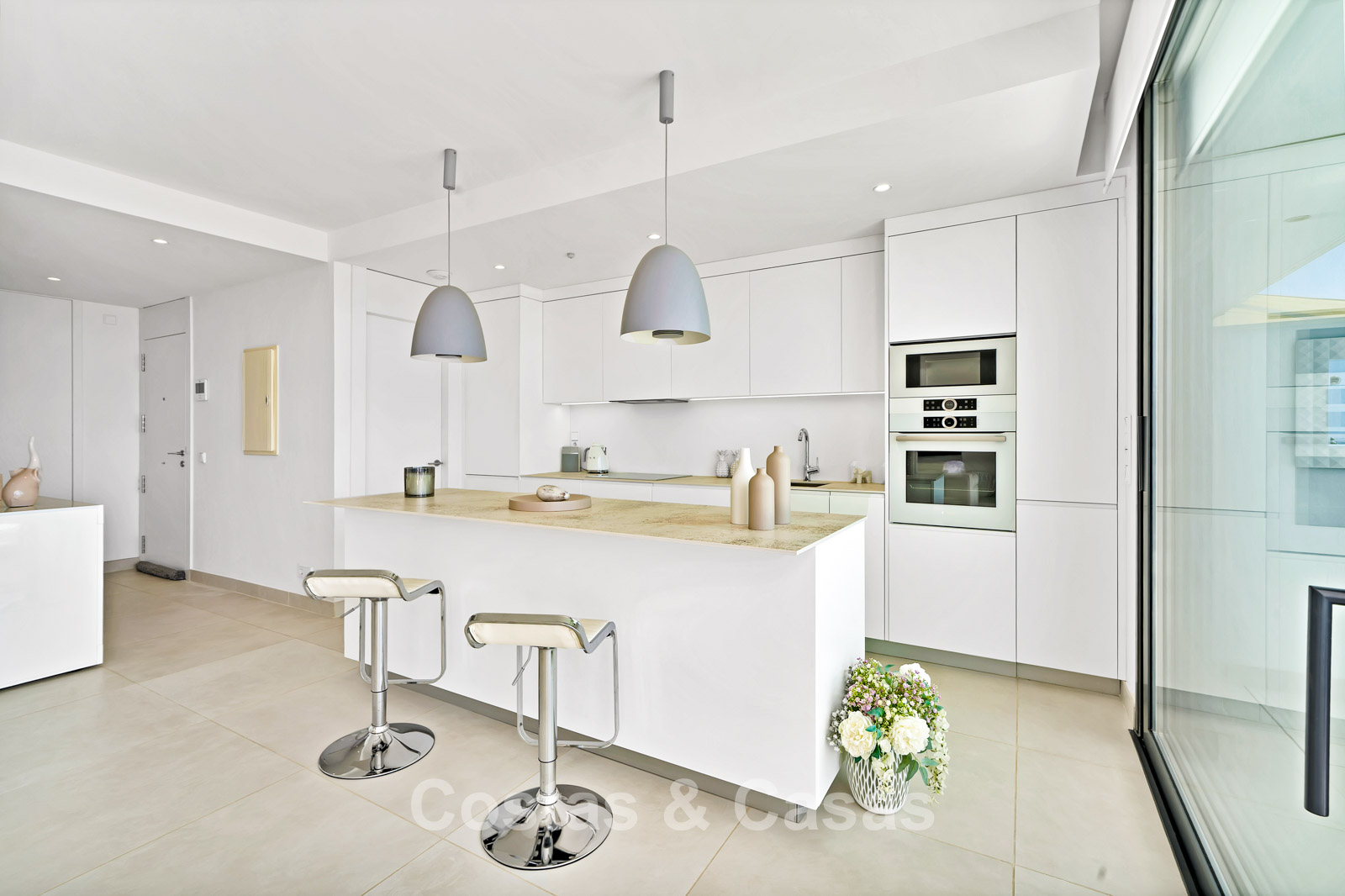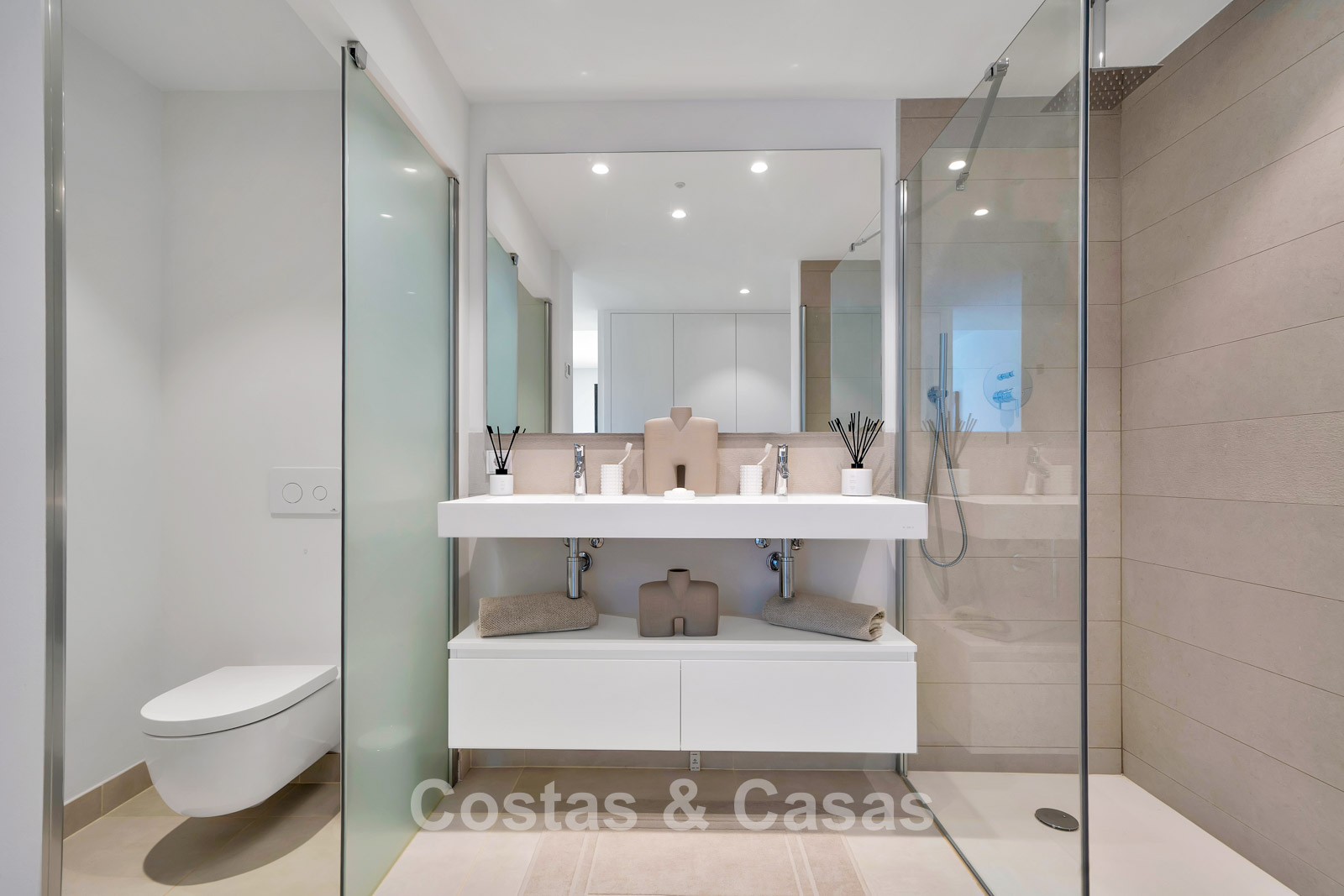 Autres caractéristiques : Climatisation pour le refroidissement et le chauffage. Chauffage au sol dans les salles de bains. Double vitrage. Balustrades en verre autour de la terrasse. Armoires intégrées sur mesure. Point de recharge pour voitures électriques.