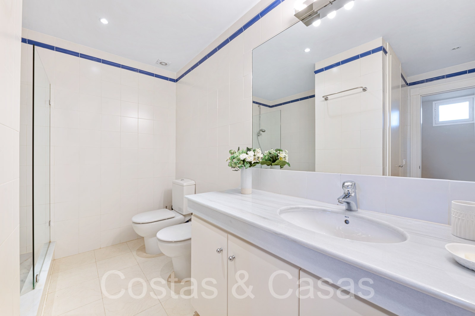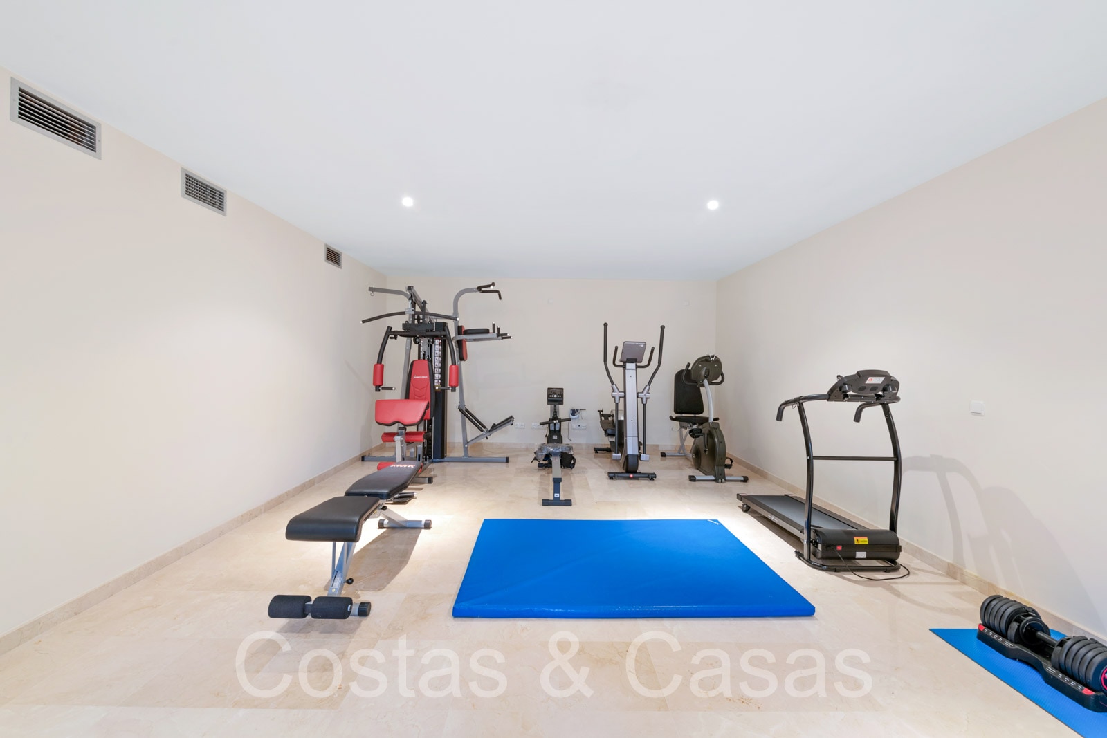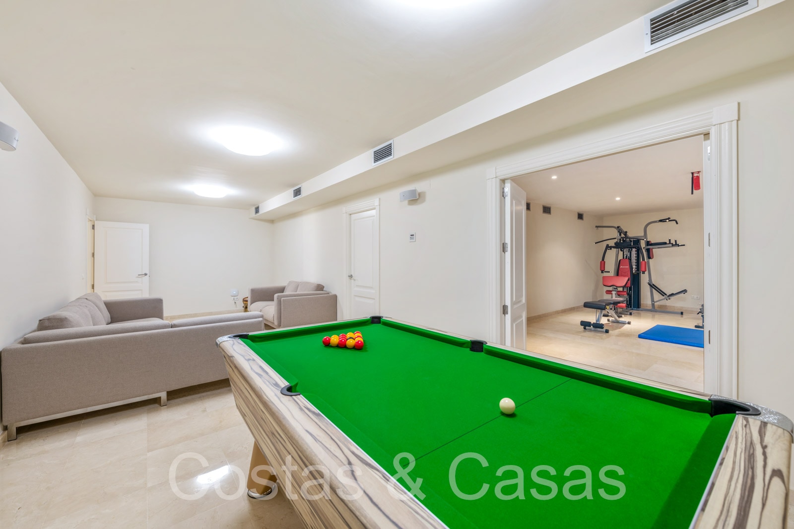 Villa individuelle au style architectural méditerranéen intemporel. Utilisation de matériaux de qualité et finition soignée. Vous entrez dans le hall d'entrée richement éclairé qui donne sur le patio. Toilette invité. Une cuisine spacieuse et séparée entièrement équipée avec des appareils électroménagers haut de gamme, un îlot et un coin repas. L'espace de vie a un plafond voûté, qui donne une apparence charmante et offre un salon et une salle à manger. De hautes portes-fenêtres s'ouvrent sur les espaces extérieurs confortables. 5 chambres, 5 salles de bains. La spacieuse suite parentale est située au dernier étage et est équipée d'un dressing, d'un coin salon, d'une salle de bain équipée et d'un accès à plusieurs terrasses privatives. Buanderie. Un logement intérieur pour les invités ou le personnel au sous-sol comprend une entrée privée, une chambre avec salle de bains privative, un salon et une kitchenette. Au sous-sol se trouvent une salle de fitness, un salon TV, une zone de jeux de bodega à vin et un débarras. Buanderie. Garage intérieur pour 2 voitures.