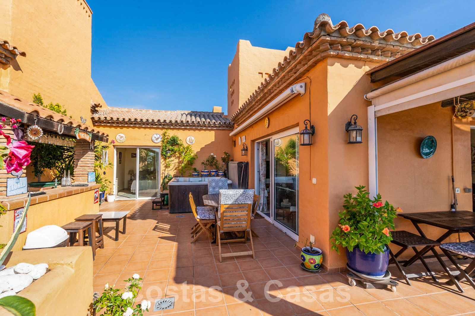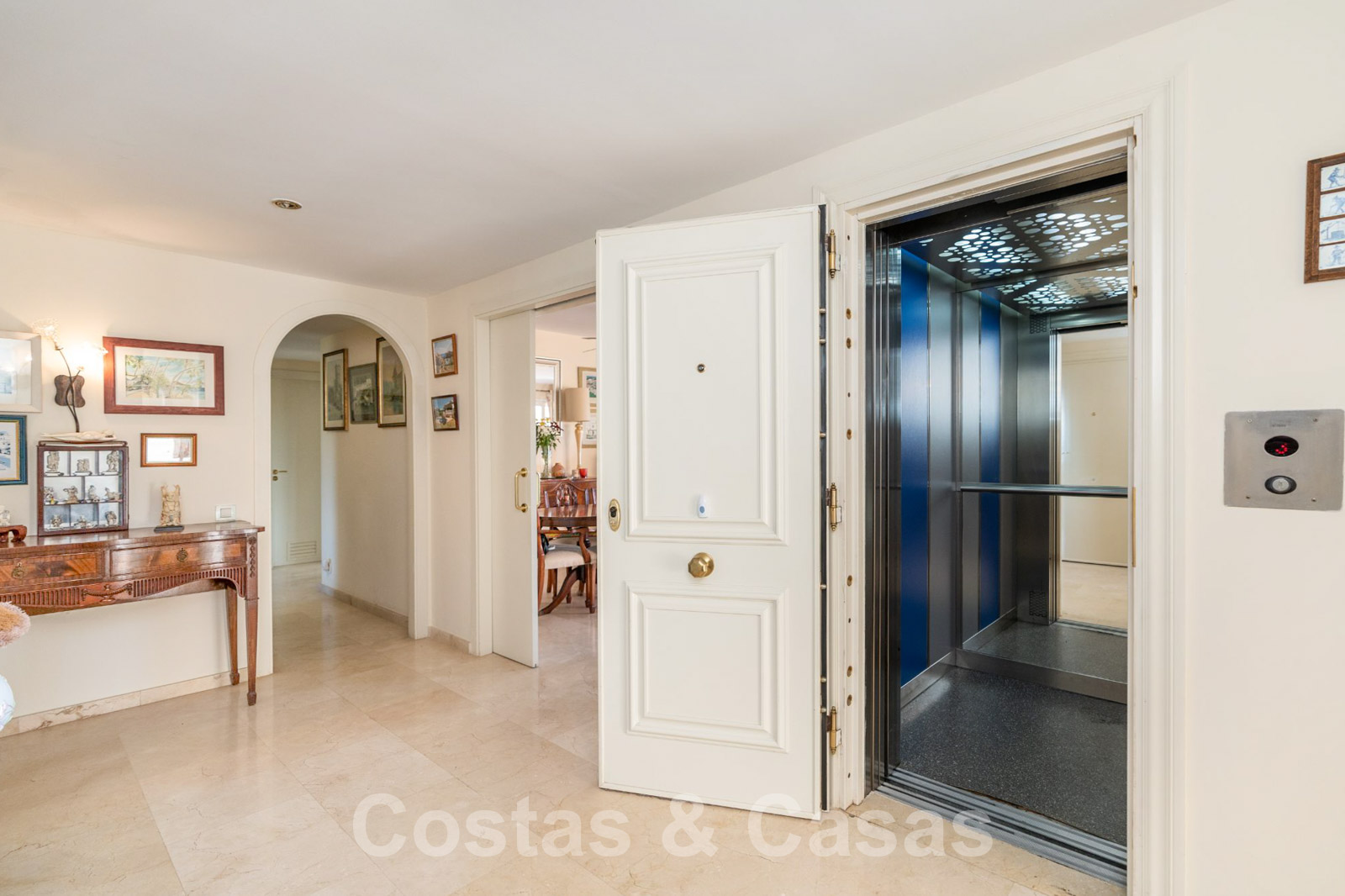 Ascenseur privé depuis le garage souterrain. Climatisation pour le refroidissement et le chauffage. Armoires encadrées. Auvents sur la terrasse. Système d'alarme. Le mobilier est en option.