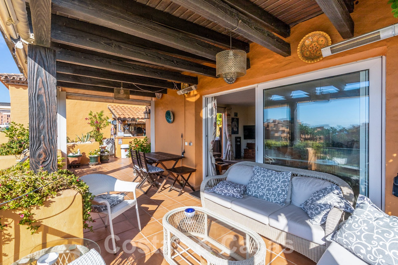 Situé dans un complexe bien entretenu, à côté de la plage, où vous trouverez plusieurs restaurants de fruits de mer authentiques à une courte distance de marche. Le port de La Duquesa, ainsi qu'un supermarché et d'autres commodités se trouvent à quelques minutes de marche. Les résidents du complexe bénéficient de jardins soignés et d'une piscine commune de style lagon.