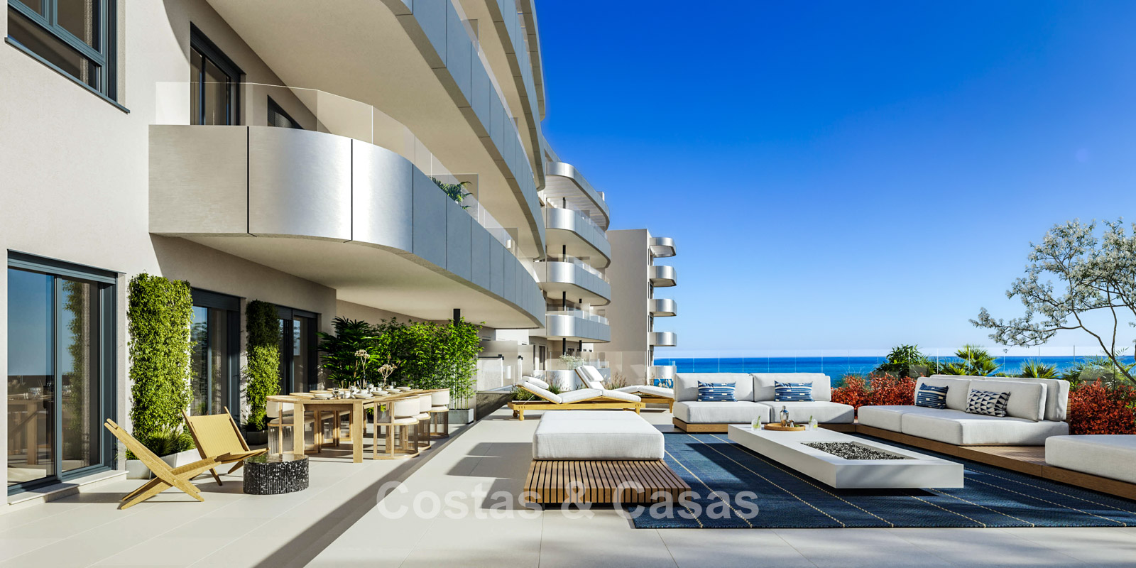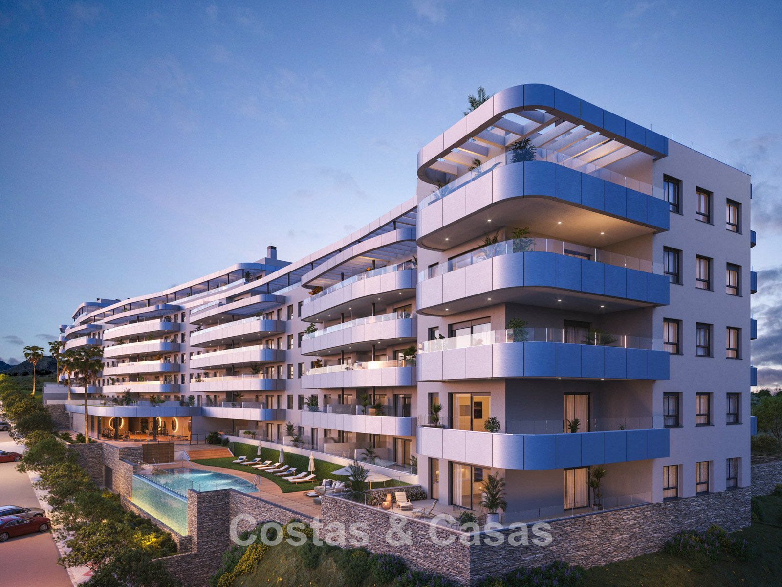 Appartements neufs modernes, caractérisés par une architecture innovante et épurée. Finitions de haute qualité avec un accent sur le design, la durabilité et des matériaux premium. Le complexe propose une variété de logements, y compris des appartements en rez-de-jardin, des étages intermédiaires et des penthouses spectaculaires. La plupart des logements sont conçus de manière stratégique avec une orientation sud à sud-ouest. Depuis les vastes terrasses, les résidents bénéficient d’une vue panoramique sur la côte et les montagnes grâce à la position élevée. De grandes baies vitrées coulissantes dans les salons laissent entrer une abondante lumière naturelle, créant des intérieurs lumineux et ouverts. Les espaces de vie sont conçus en plan ouvert. Les cuisines modernes sont entièrement équipées avec des appareils Bosch haut de gamme et des plans de travail en Silestone. Cellier inclus. Parking souterrain disponible.