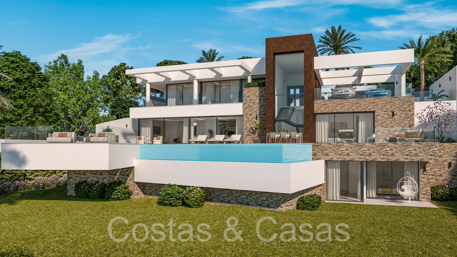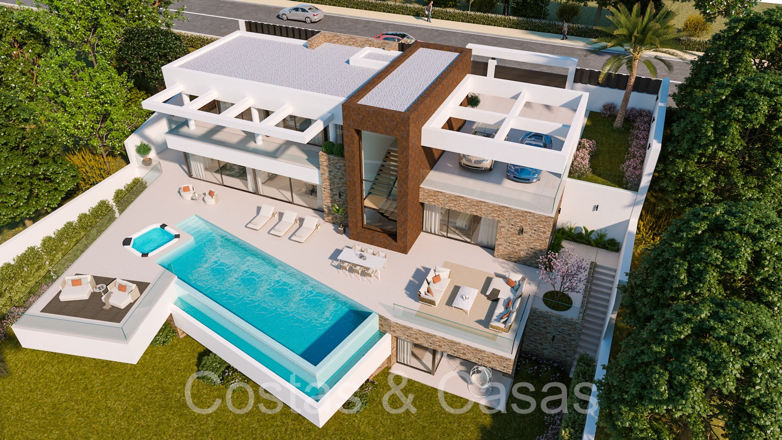 Superficie du terrain: 1.400 m² Superficie totale construite: 480m² Superficie des terrasses: 340m² 5 chambres 5 salles de bains 3 étages
