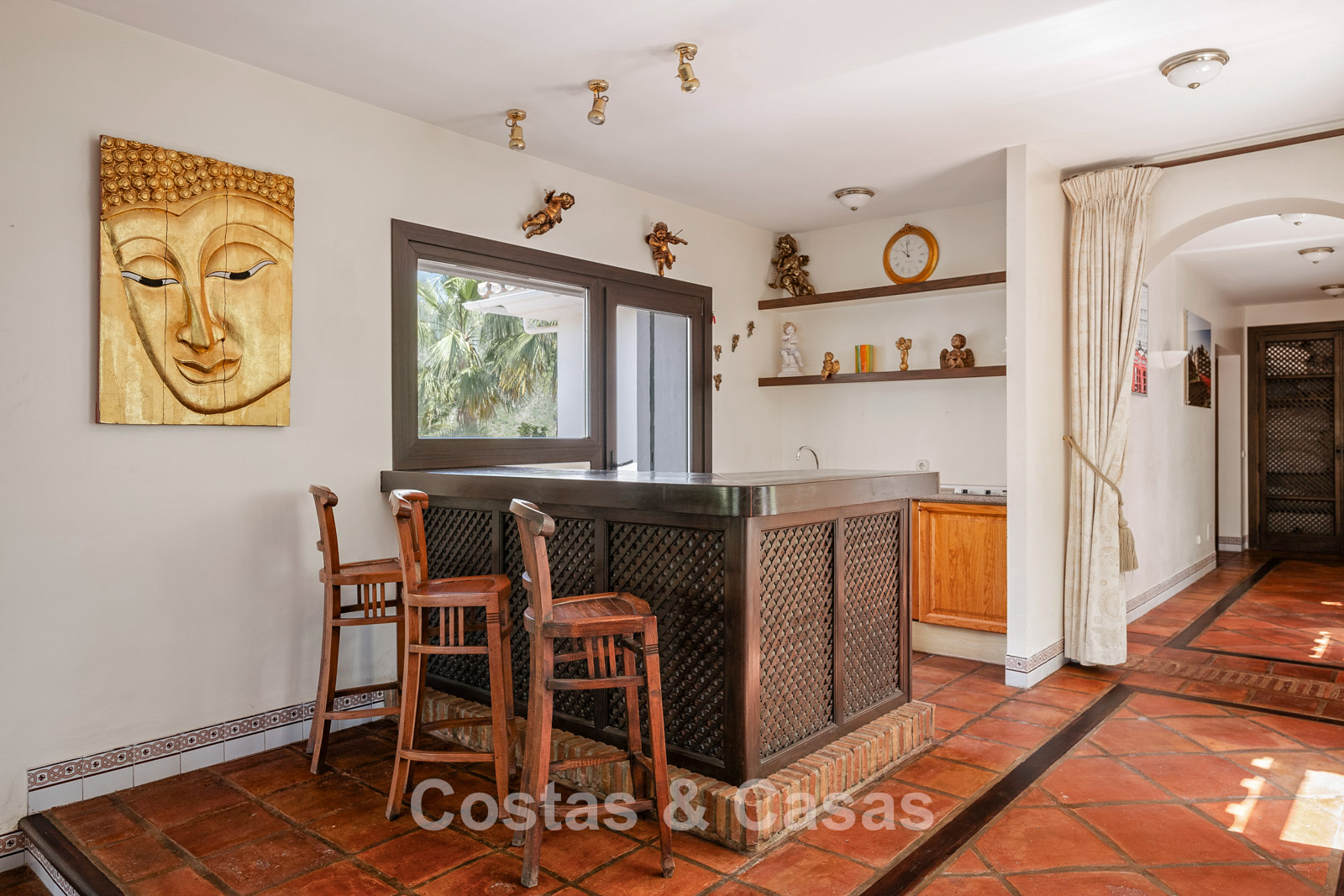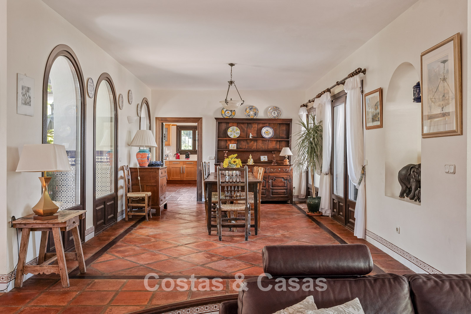 Spacieuse maison de campagne espagnole à l’architecture traditionnelle. L’utilisation de couleurs chaudes, de terre cuite et de bois confère à l’intérieur et à l’extérieur un charme méditerranéen. Plusieurs espaces de vie. Cuisine ouverte fonctionnelle, entièrement équipée d'électroménagers haut de gamme et d'un îlot central. 6 chambres, 6 salles de bains. Une charmante tour peut être transformée en chambre supplémentaire, bureau ou espace de création. Possibilité d'aménager des logements intérieurs pour les invités ou le personnel. Sols en terre cuite caractéristiques. Débarras. Buanderie. Garage intégré. Parking supplémentaire pour plusieurs voitures.