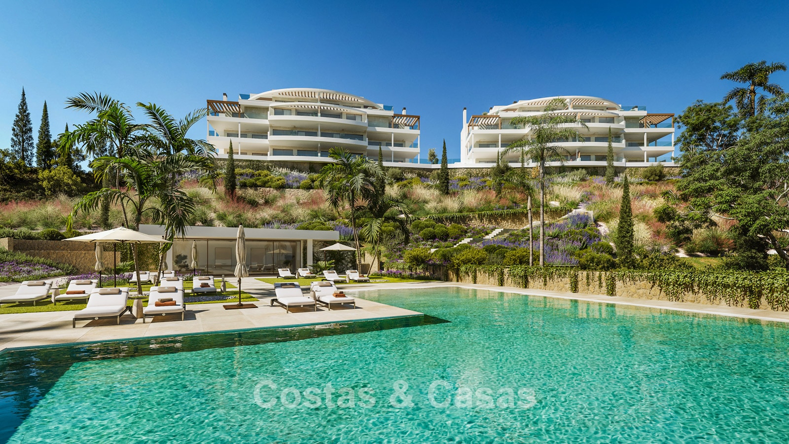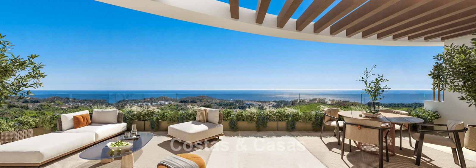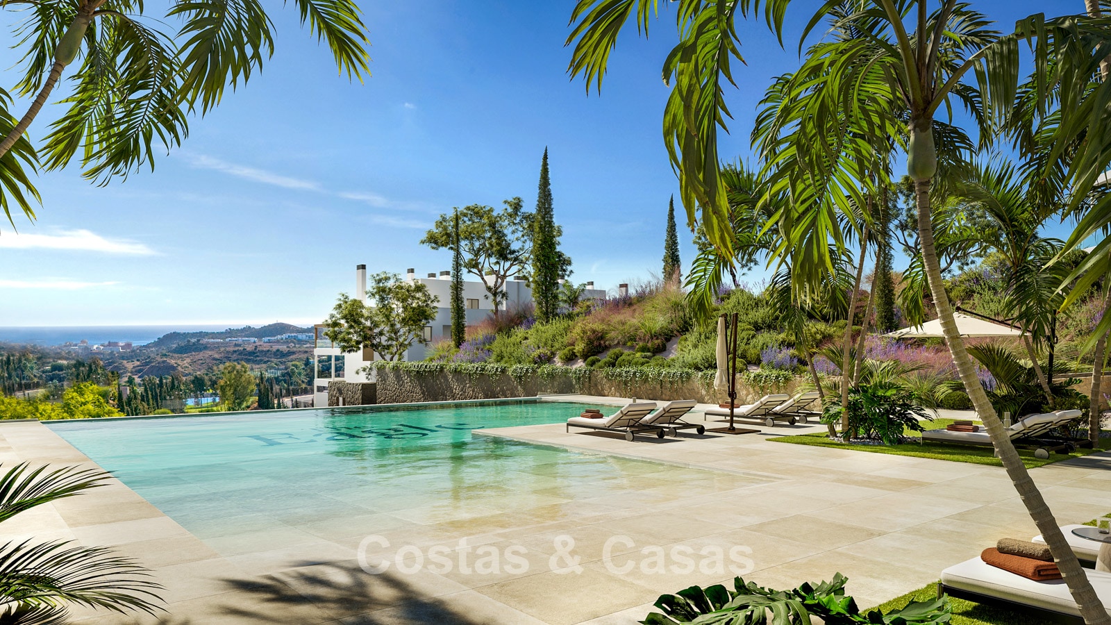Appartements contemporains neufs caractérisés par une architecture moderne et fonctionnelle. Résidence à taille humaine composée de seulement 59 logements répartis sur quatre bâtiments élégants. Conçus selon des standards élevés. Réalisés avec des matériaux durables et de haute qualité. Orientation sud et sud-ouest. Depuis presque chaque pièce, vous profiterez de vues spectaculaires et dégagées sur la mer, les parcours de golf et le littoral. Vastes terrasses offrant suffisamment d’espace pour des salons et salles à manger extérieurs. Baies vitrées coulissantes en aluminium toute hauteur avec rupture de pont thermique et double vitrage à contrôle solaire. Espace de vie ouvert avec salon TV et salle à manger intégrée. Cuisine moderne ouverte entièrement équipée avec électroménagers Siemens haut de gamme et îlot central. Cave et place de parking en sous-sol incluses.