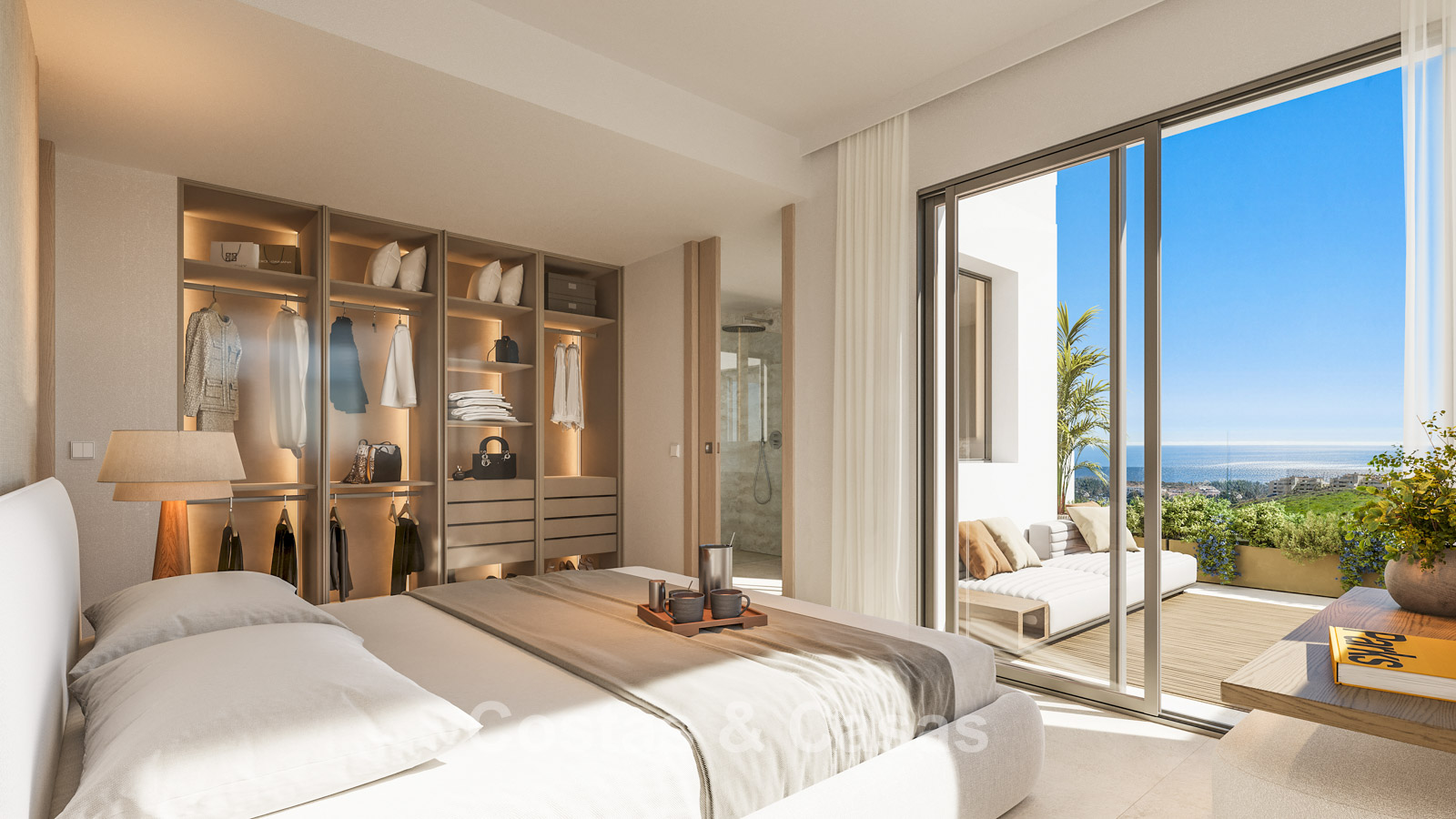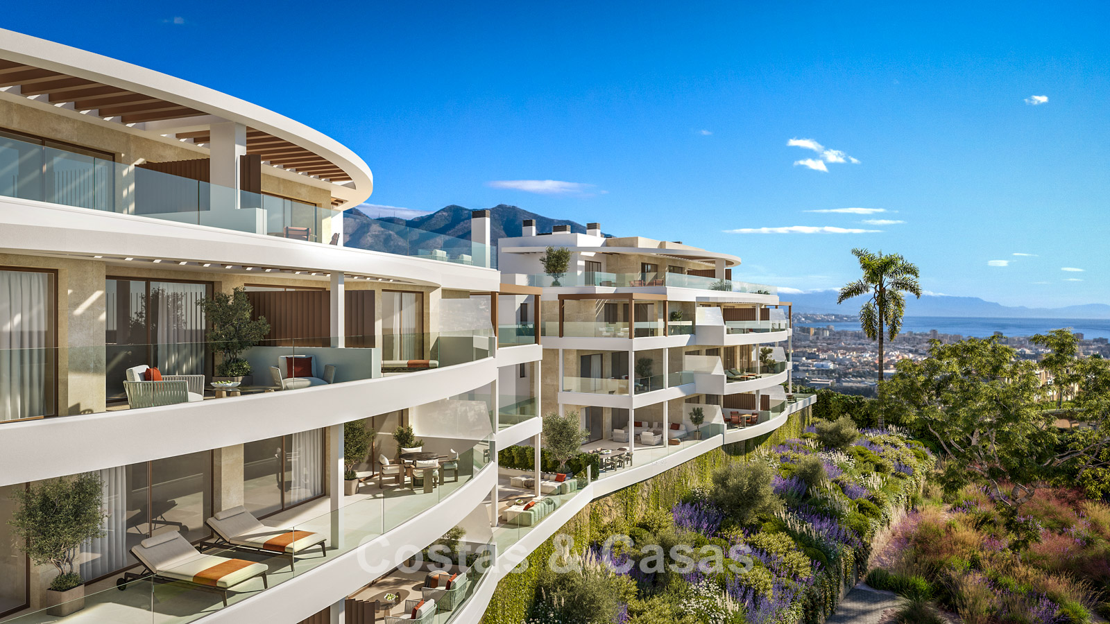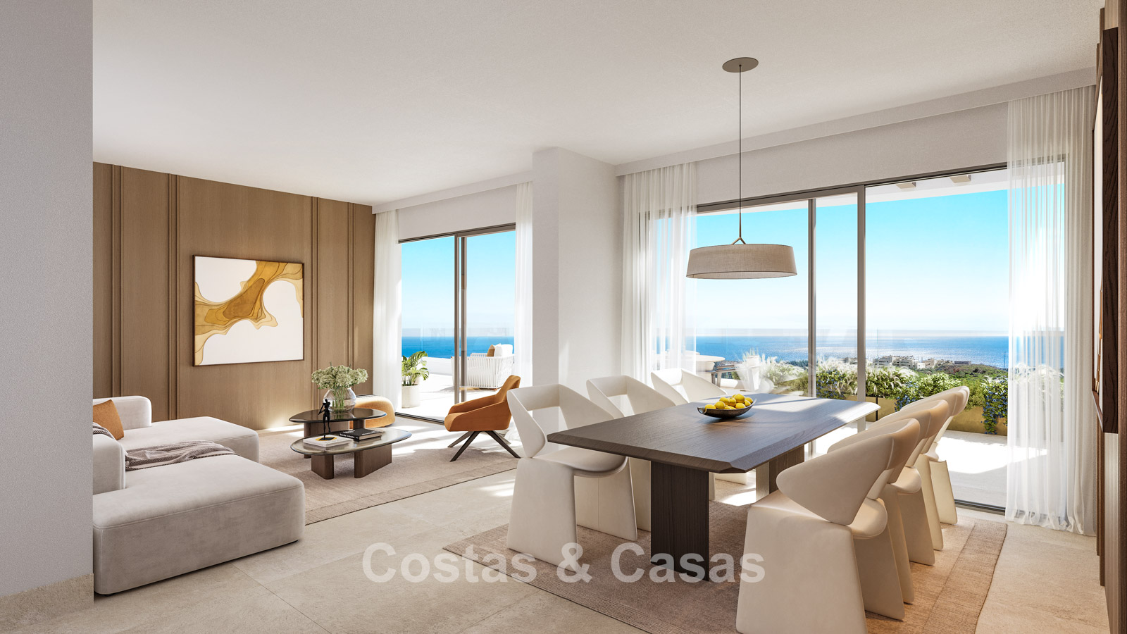 Appartements contemporains neufs caractérisés par une architecture moderne et fonctionnelle. Résidence à taille humaine composée de seulement 59 logements répartis sur quatre bâtiments élégants. Conçus selon des standards élevés. Réalisés avec des matériaux durables et de haute qualité. Orientation sud et sud-ouest. Depuis presque chaque pièce, vous profiterez de vues spectaculaires et dégagées sur la mer, les parcours de golf et le littoral. Vastes terrasses offrant suffisamment d’espace pour des salons et salles à manger extérieurs. Baies vitrées coulissantes en aluminium toute hauteur avec rupture de pont thermique et double vitrage à contrôle solaire. Espace de vie ouvert avec salon TV et salle à manger intégrée. Cuisine moderne ouverte entièrement équipée avec électroménagers Siemens haut de gamme et îlot central. Cave et place de parking en sous-sol incluses.