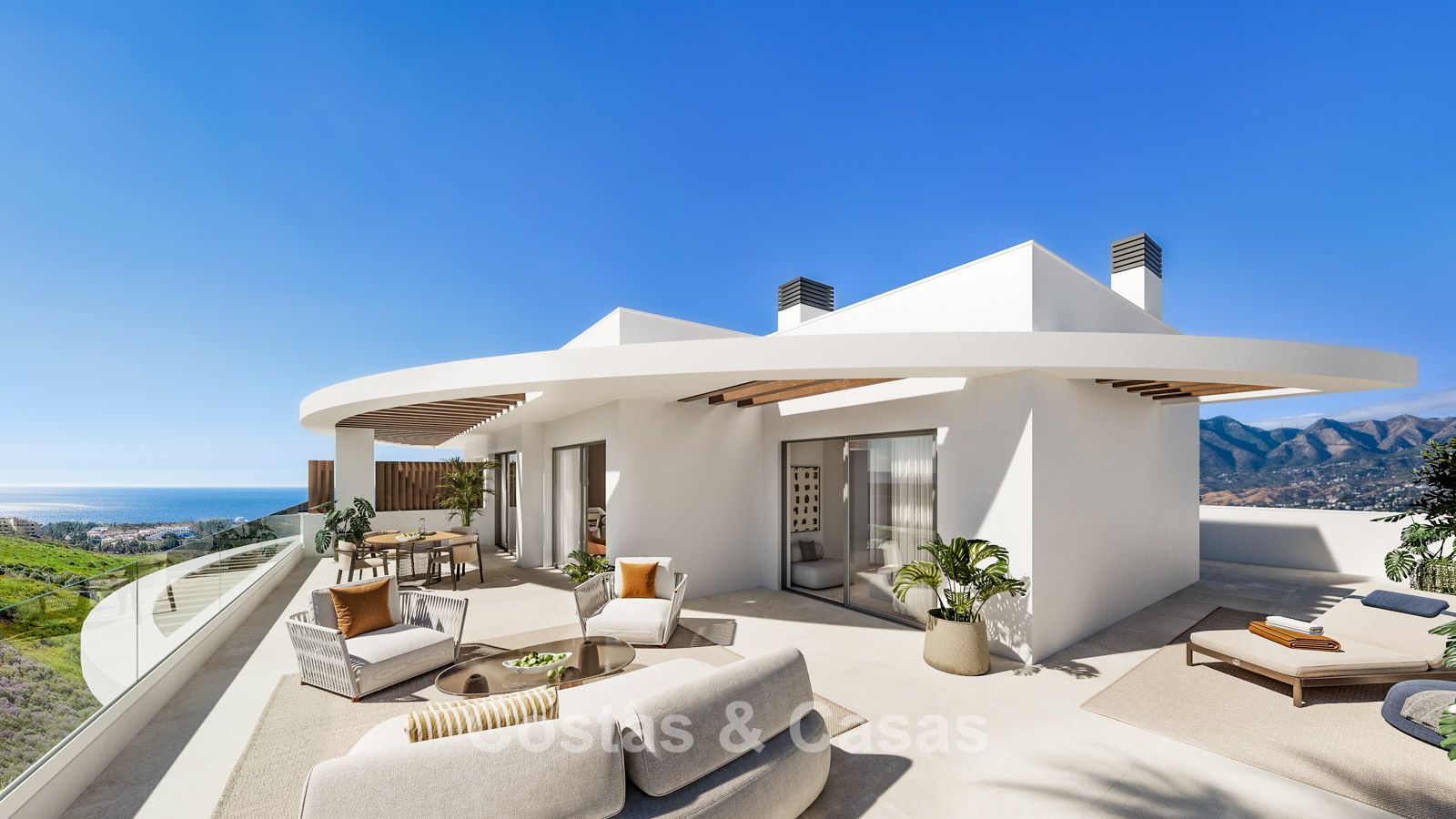 Intérieurs modernes en open space et vastes terrasses