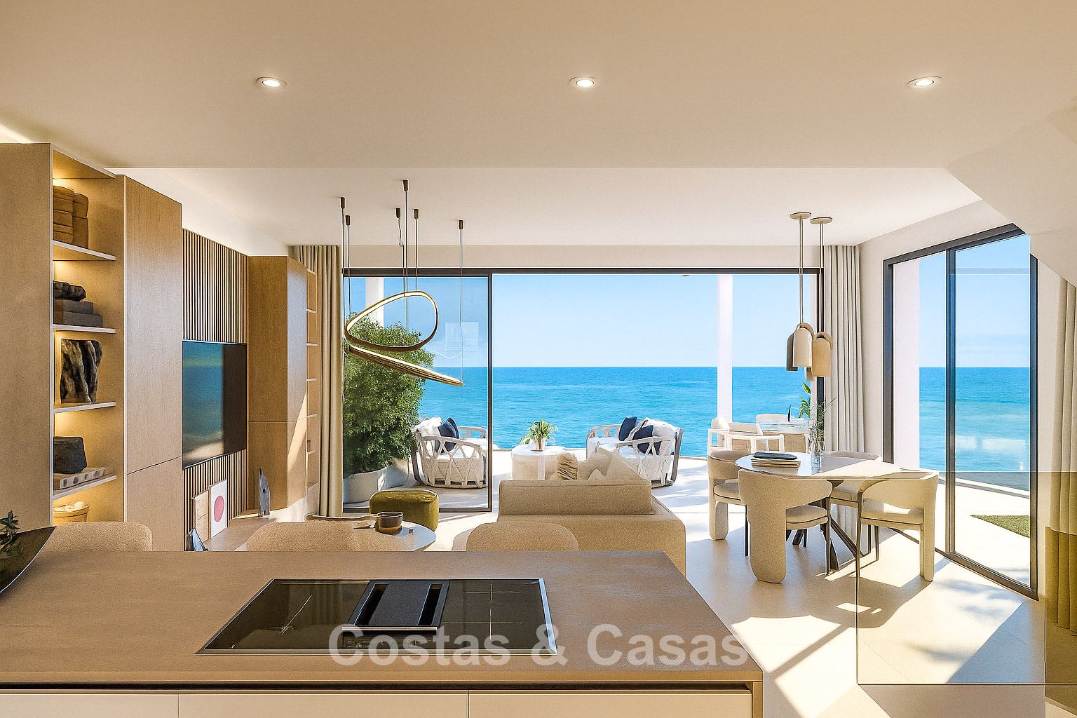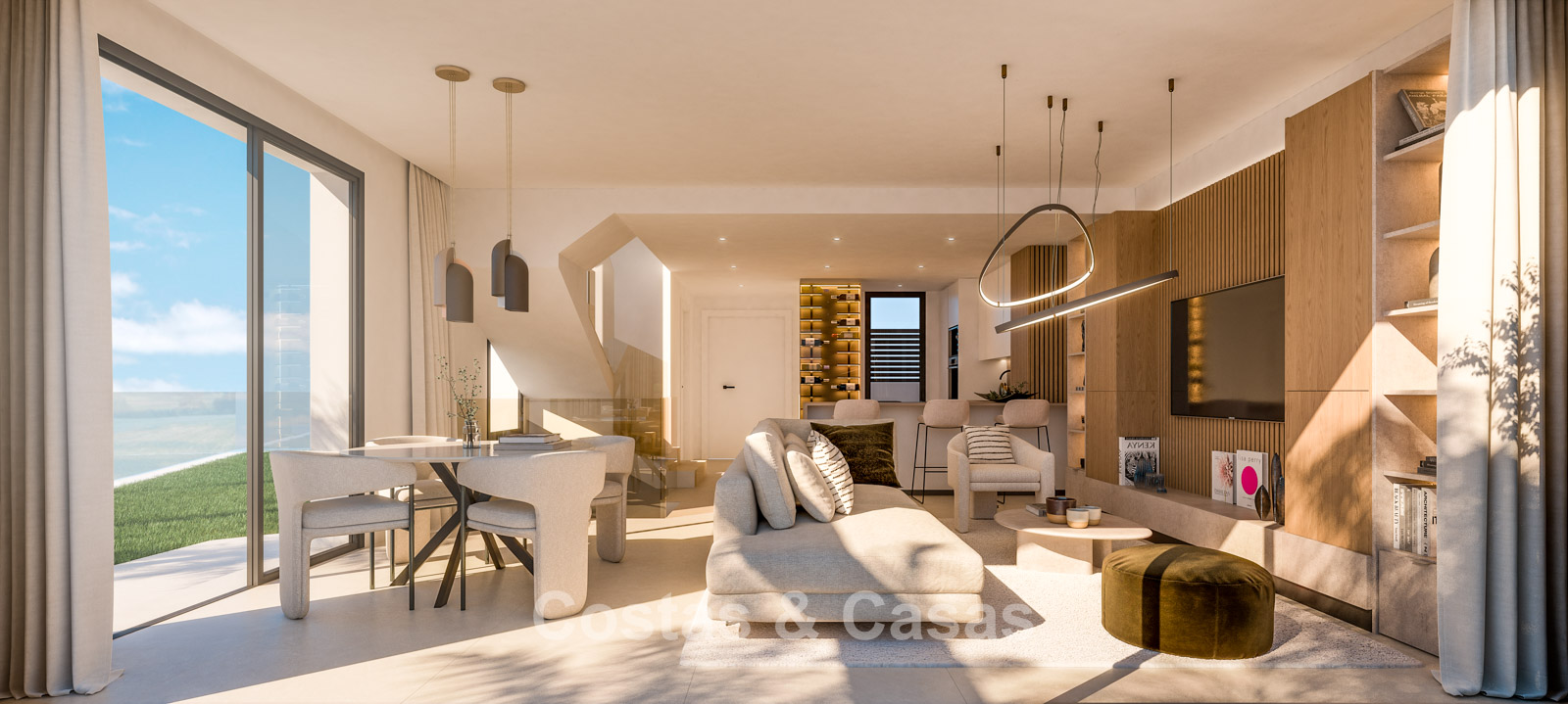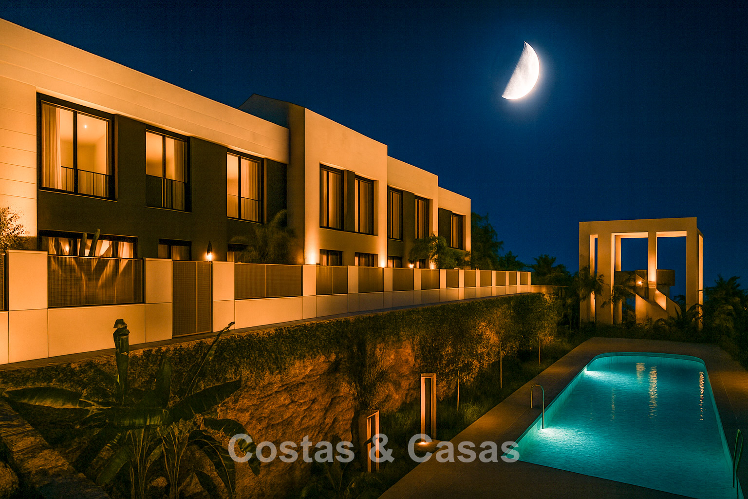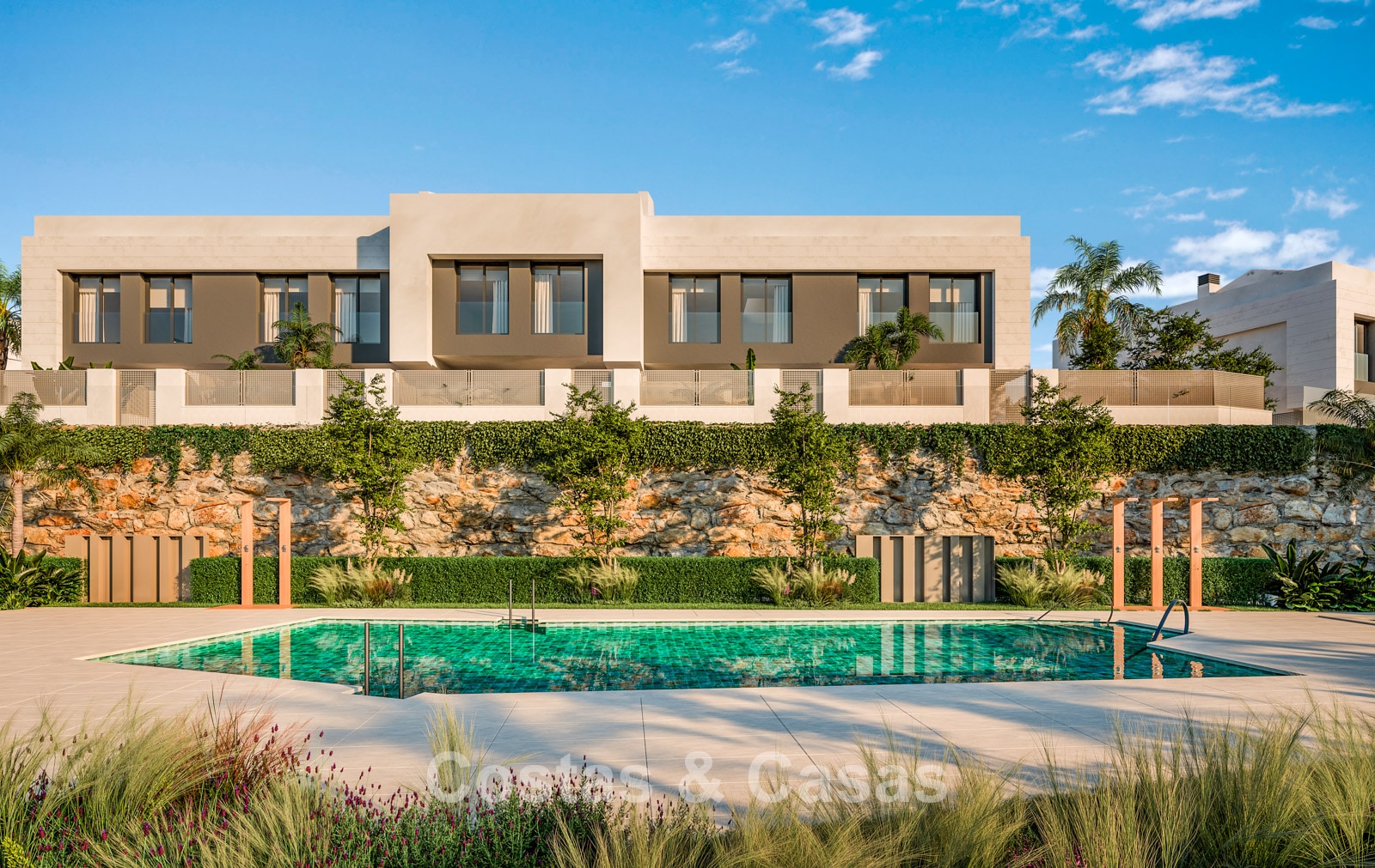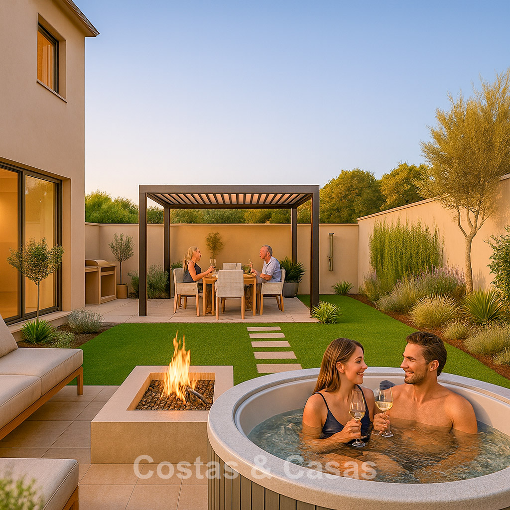 Nouvelle collection composée de 13 logements. Piscine commune avec solarium et ambiance de resort. Construites avec des matériaux de haute qualité et des finitions soignées. Maisons mitoyennes avec 3 chambres, 2 salles de bains et une toilette invité. Le solarium est équipé d’une pré-installation pour une cuisine extérieure avec barbecue, un espace lounge et un jacuzzi intégré. Les logements offrent une vue imprenable sur la mer depuis chaque étage, tandis que la terrasse sur le toit bénéficie d’une vue panoramique spectaculaire à 360°. Certaines unités disposent d’un jardin privé avec option de piscine. Intérieurs élégants avec un agencement ouvert. De grandes baies vitrées coulissantes avec profils encastrés apportent une luminosité naturelle abondante et donnent accès aux terrasses. Cuisine ouverte entièrement équipée avec électroménagers intégrés de haute qualité. Espace salle à manger intégré. Le niveau inférieur polyvalent offre la liberté d’adapter l’espace à vos besoins personnels, que ce soit comme salle de loisirs ou espace de rangement supplémentaire. Buanderie. Local de rangement. Parking privé.