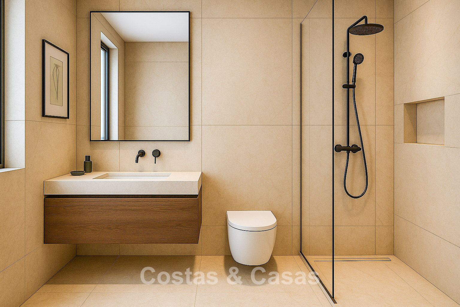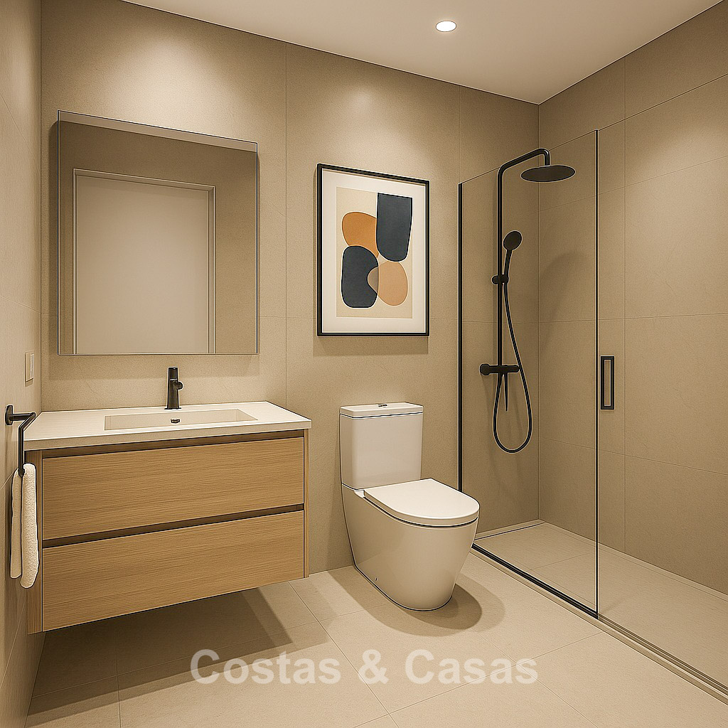 Autres caractéristiques: Climatisation chaud/froid Système aérothermique pour l’eau chaude Garde-corps en verre Double vitrage Placards intégrés sur mesure Carrelage en grès cérame grand format 60x60 Éclairage LED Installation télécom Possibilité d’options supplémentaires telles qu’un système domotique, une cuisine extérieure ou une piscine privée sur certaines unités Pack mobilier en option Personnalisables