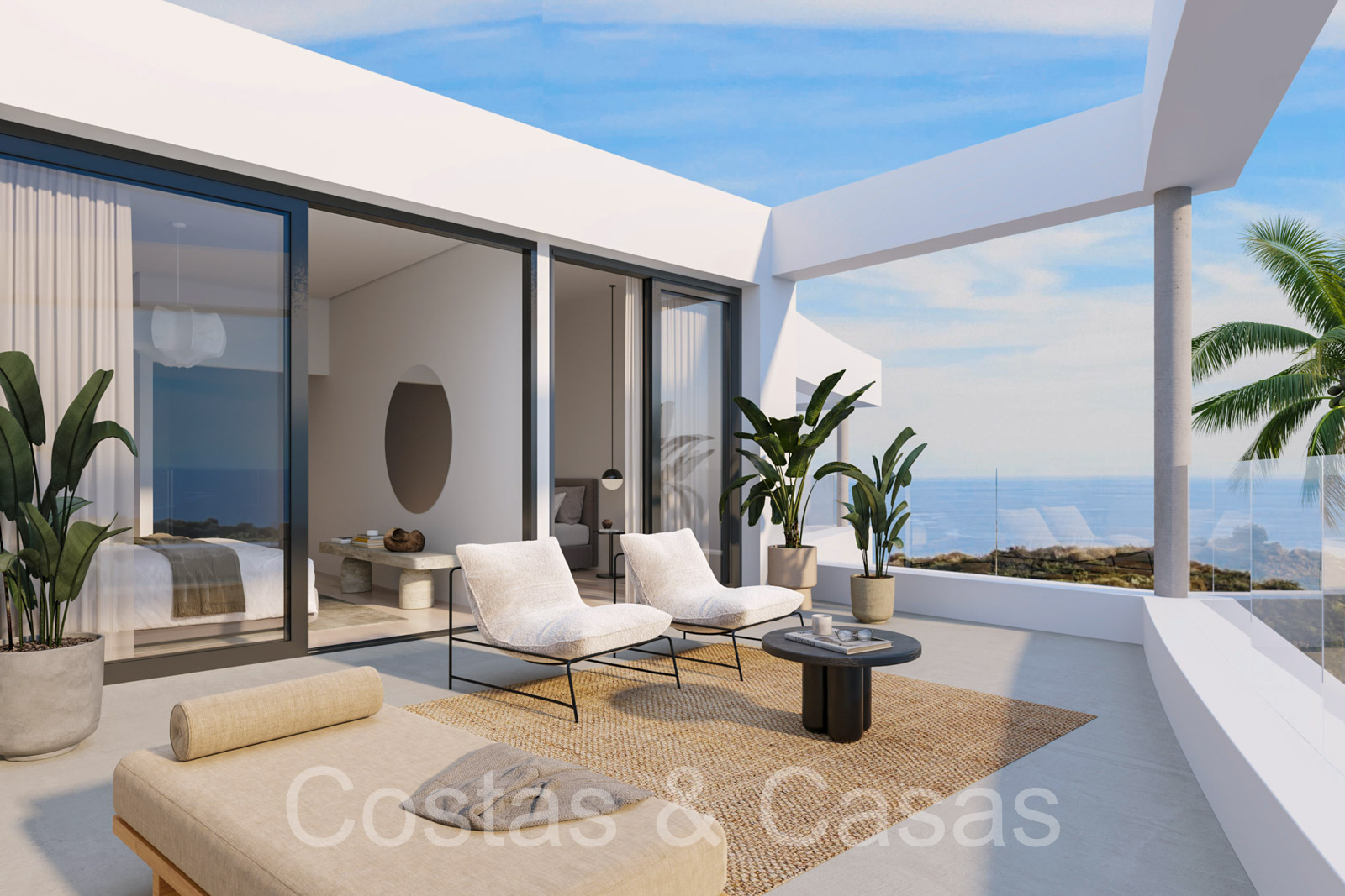 Propriétés élégantes et modernes de nouvelle construction à vendre avec vue sur la mer à Mijas, Costa del Sol
