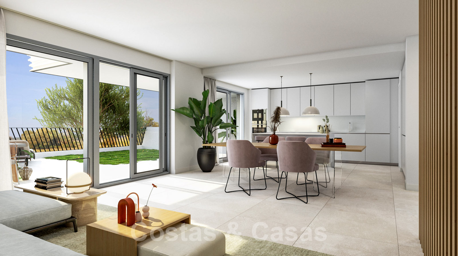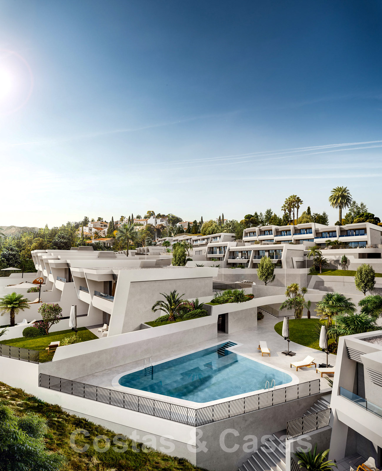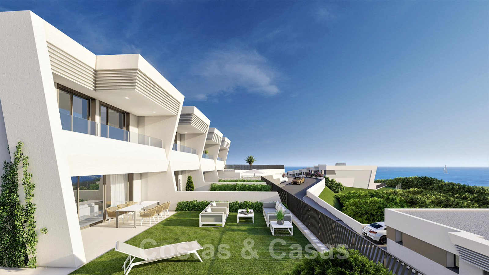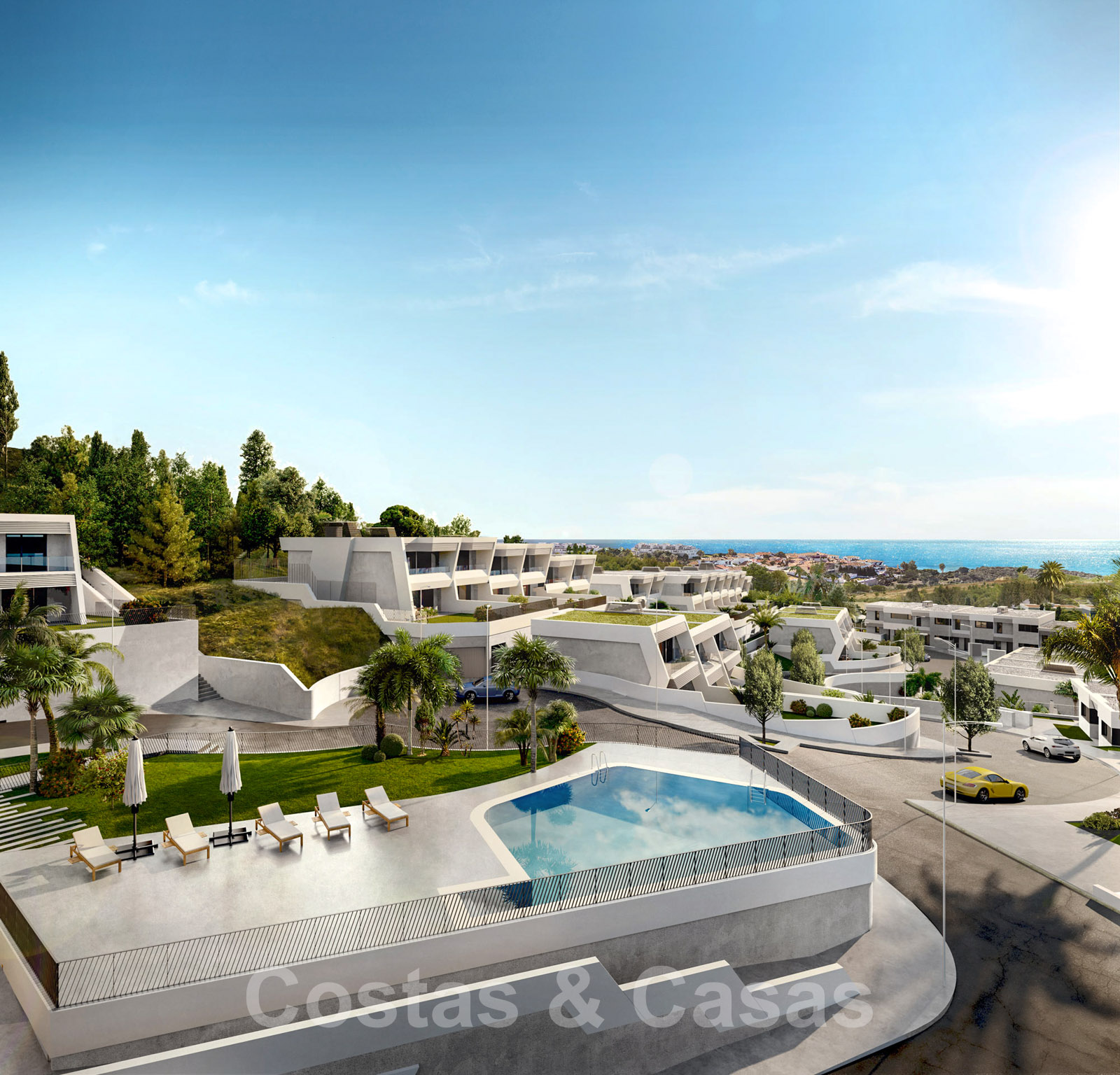 Nouvelles maisons de ville au design d'avant-garde avec vue sur la mer à vendre dans un prestigieux complexe de golf à Mijas Costa