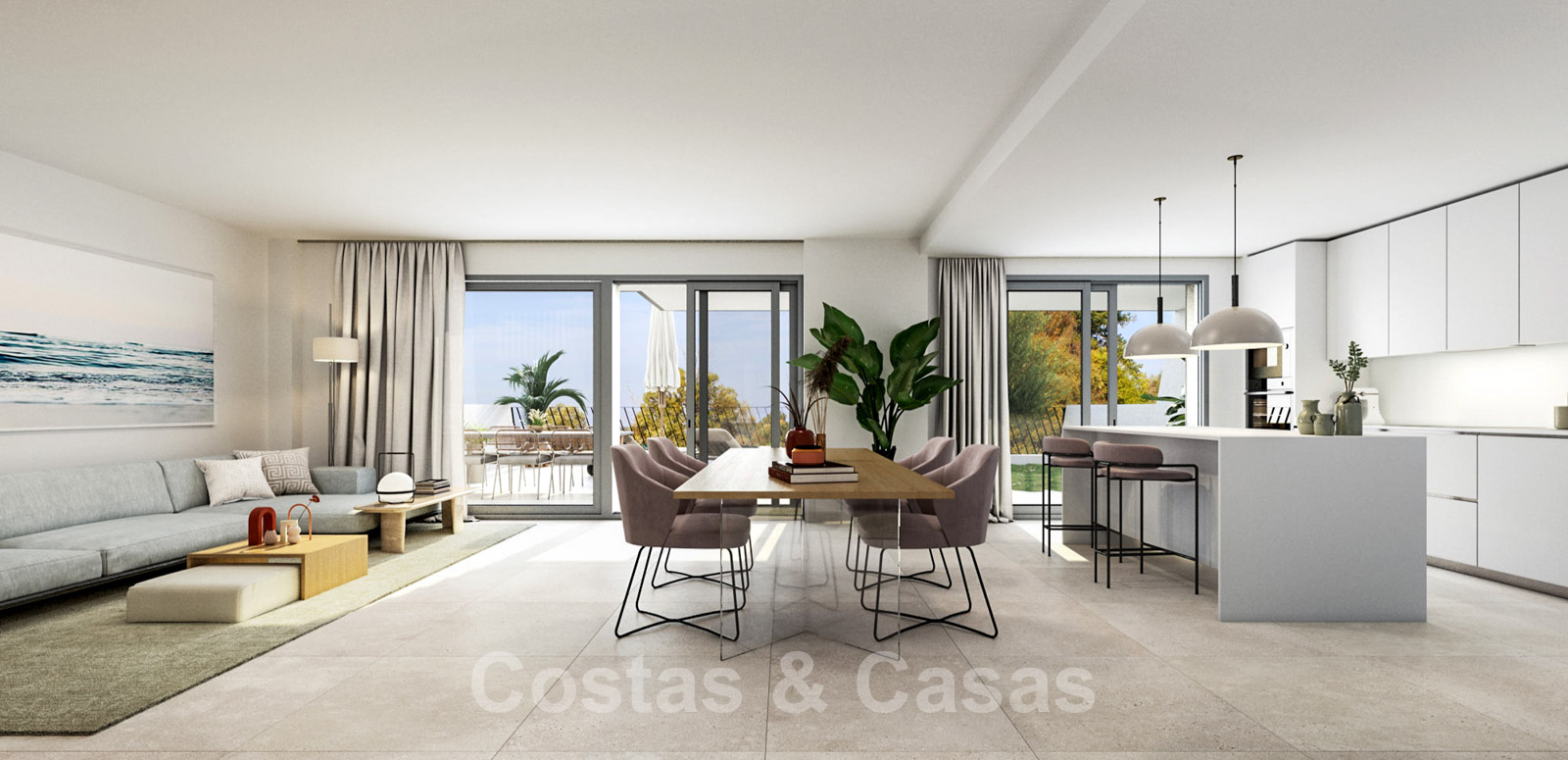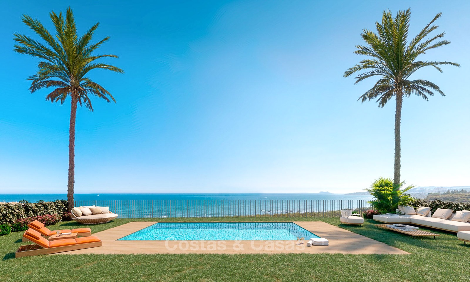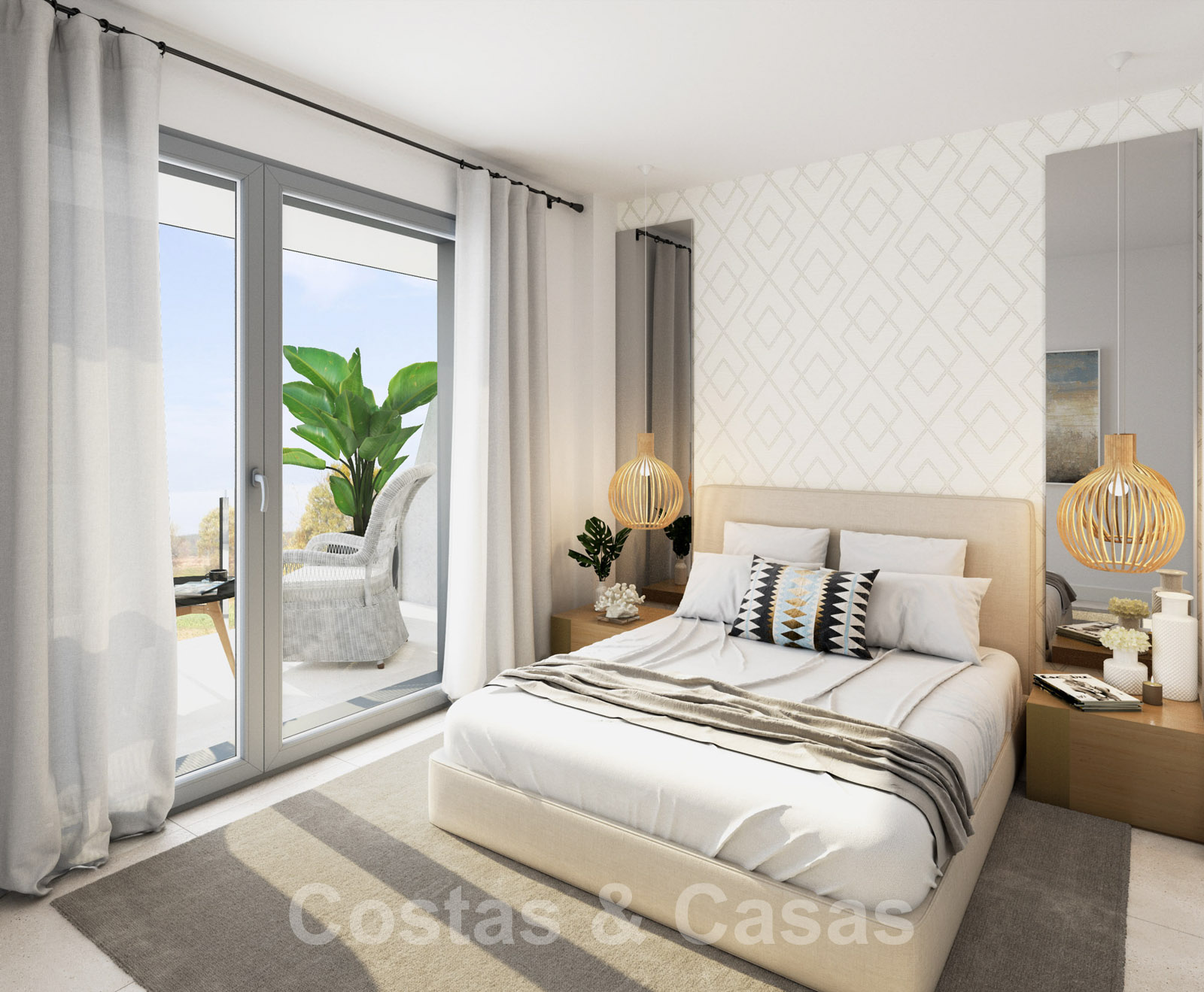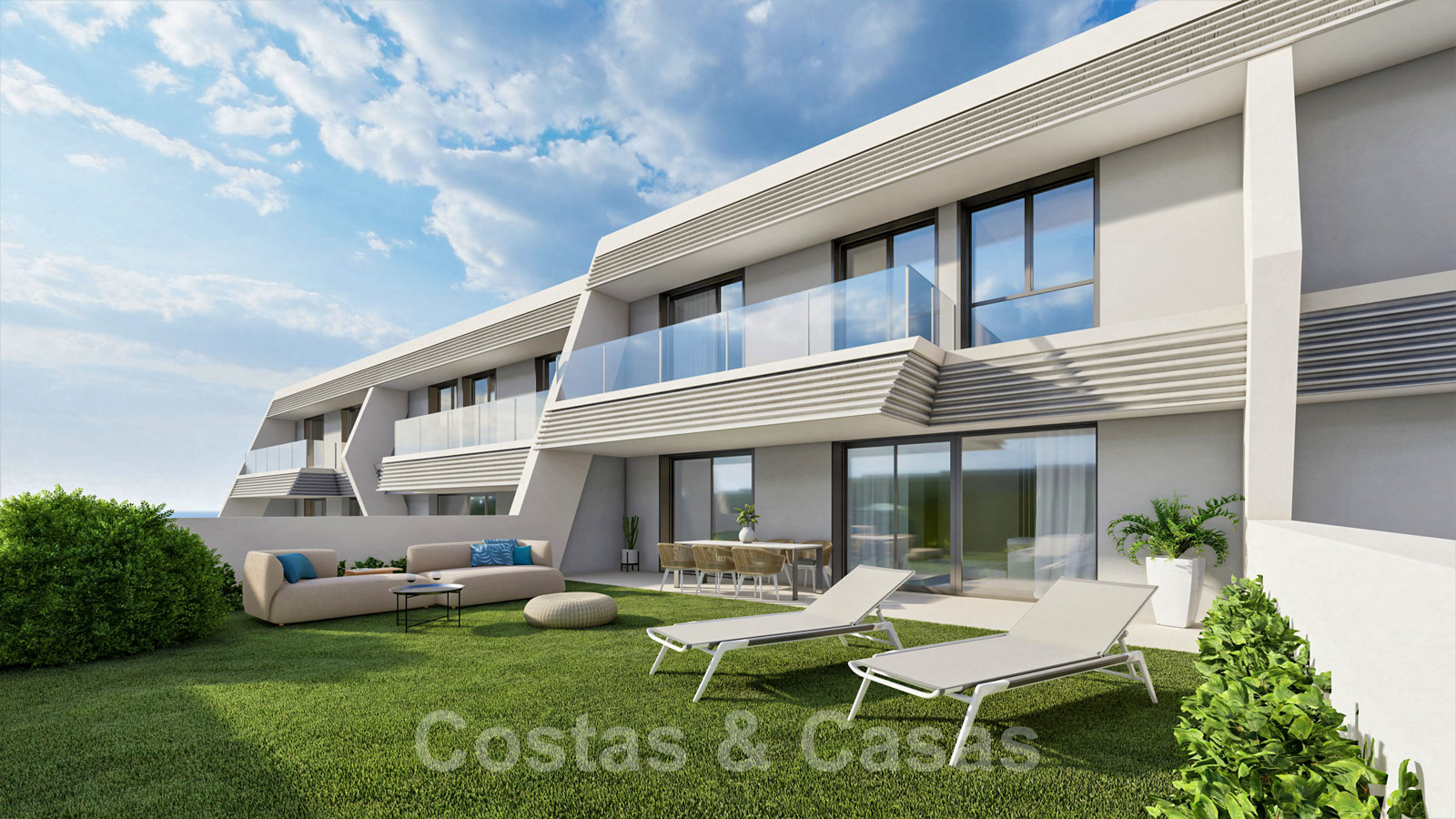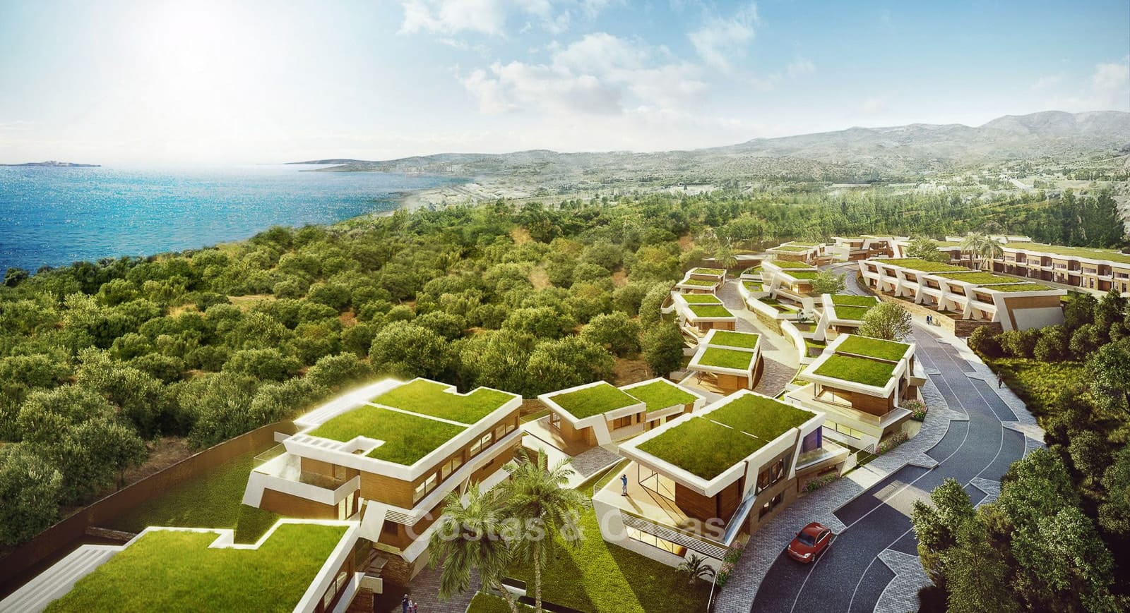 Nouvelles maisons de ville au design d'avant-garde avec vue sur la mer à vendre dans un prestigieux complexe de golf à Mijas Costa
