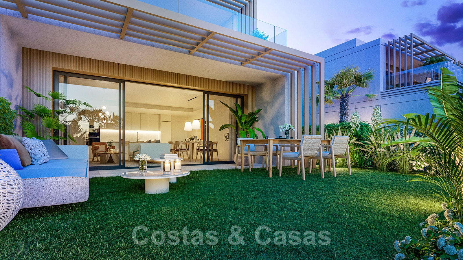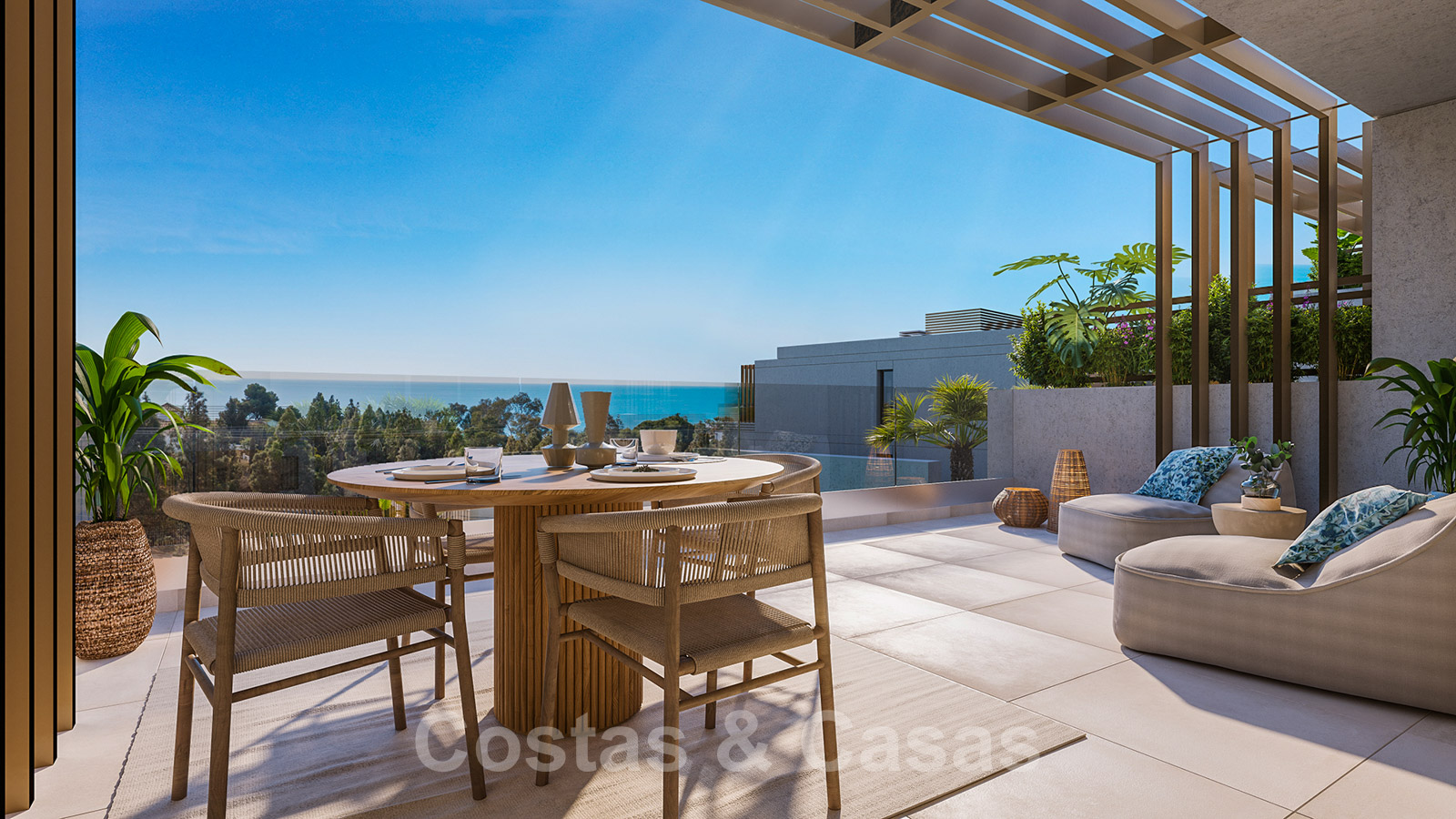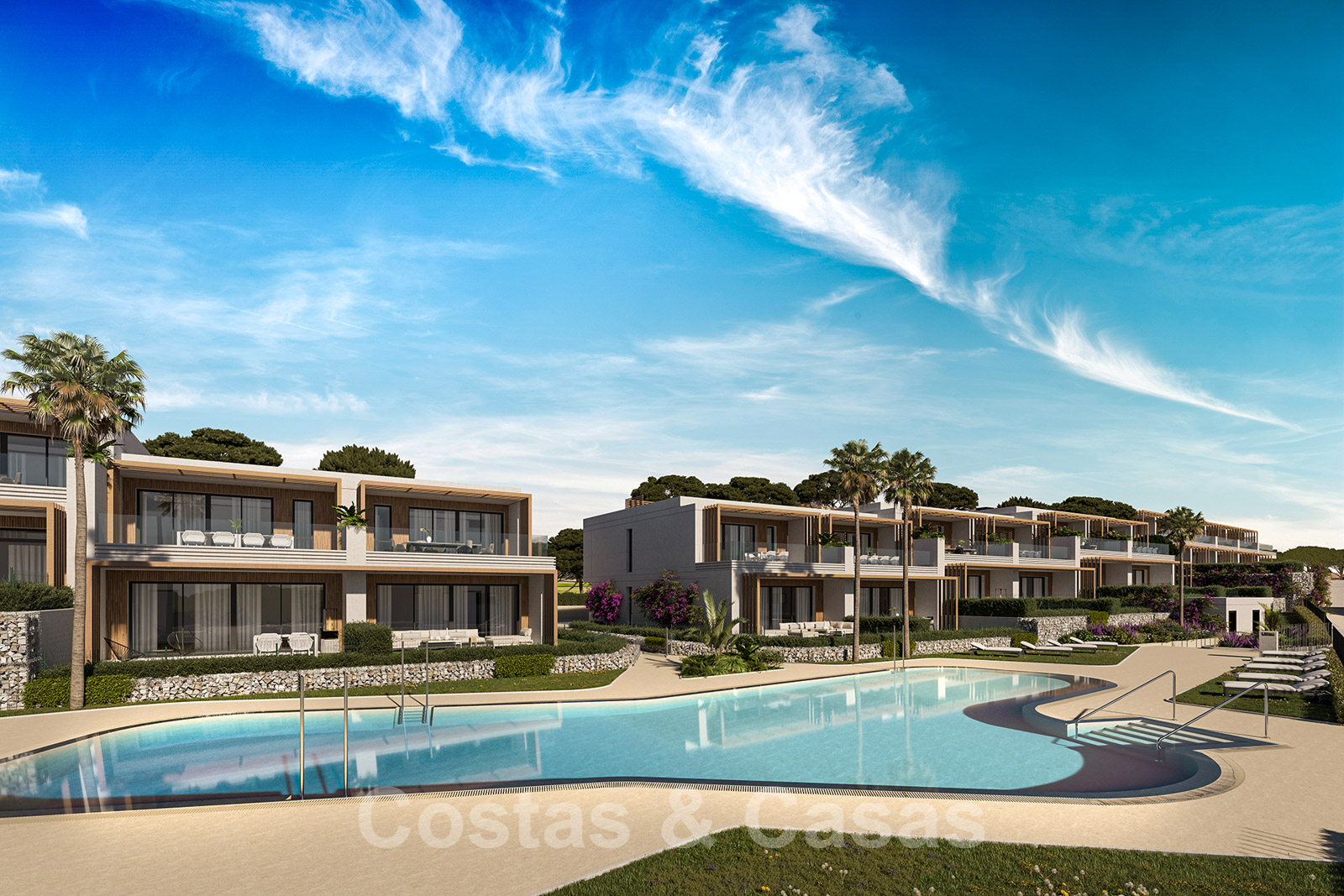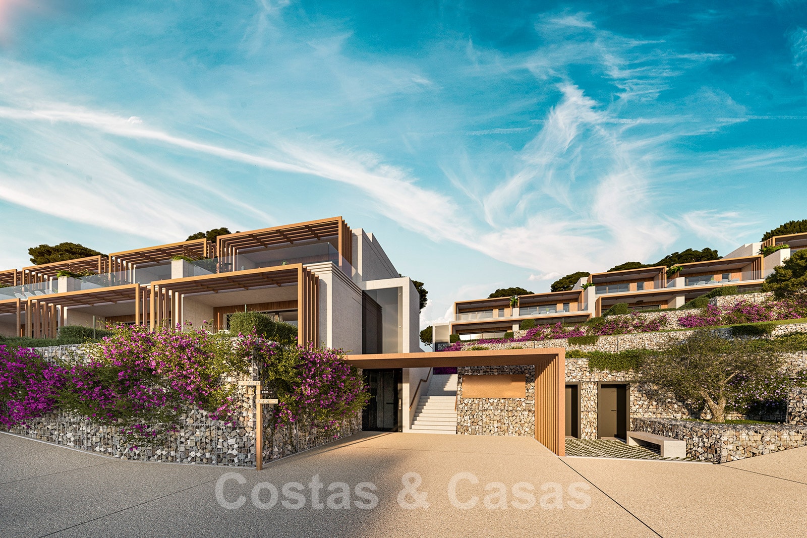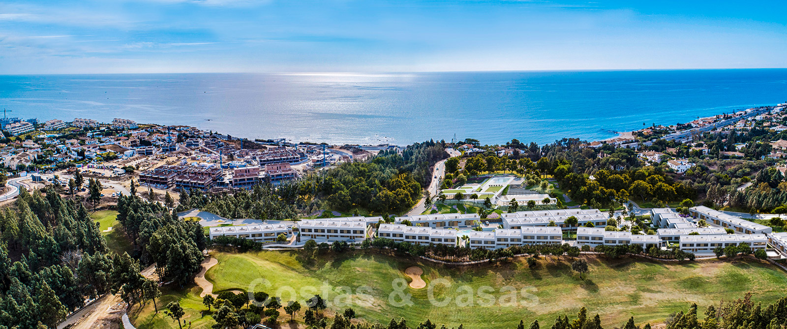 Villa en rangée de conception moderniste avec vue sur la mer à vendre dans un complexe de premier plan à Mijas Costa, Costa del Sol