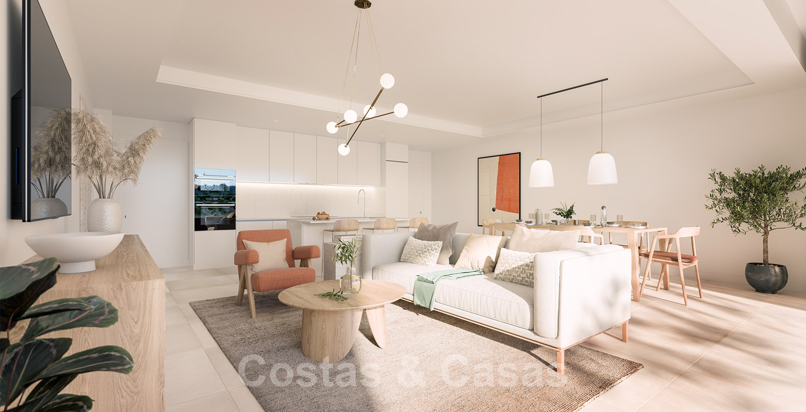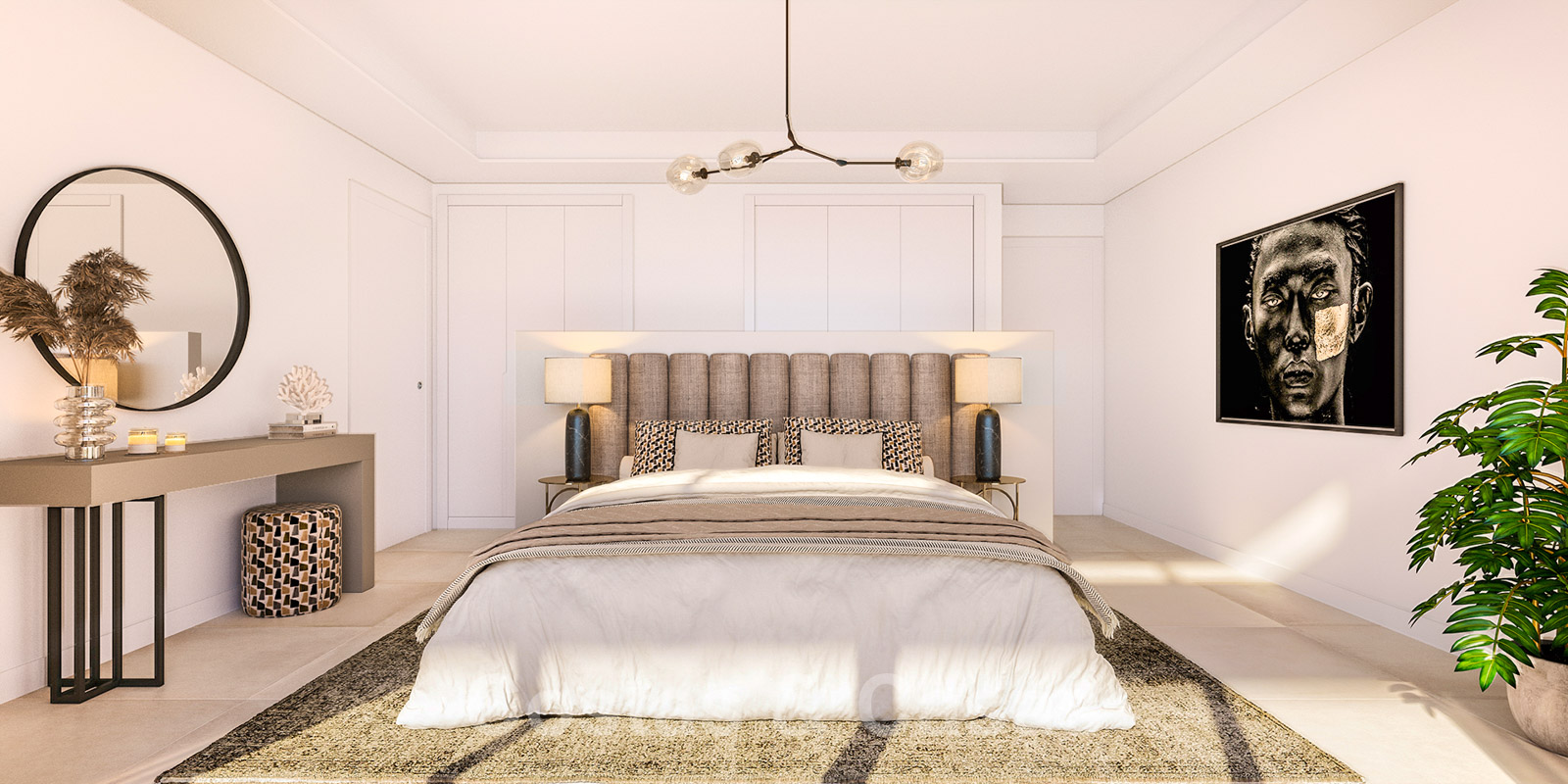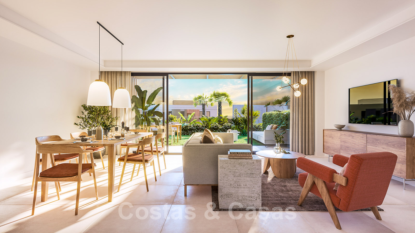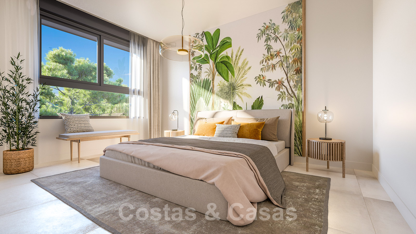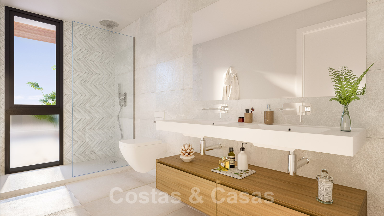 Villa en rangée de conception moderniste avec vue sur la mer à vendre dans un complexe de premier plan à Mijas Costa, Costa del Sol