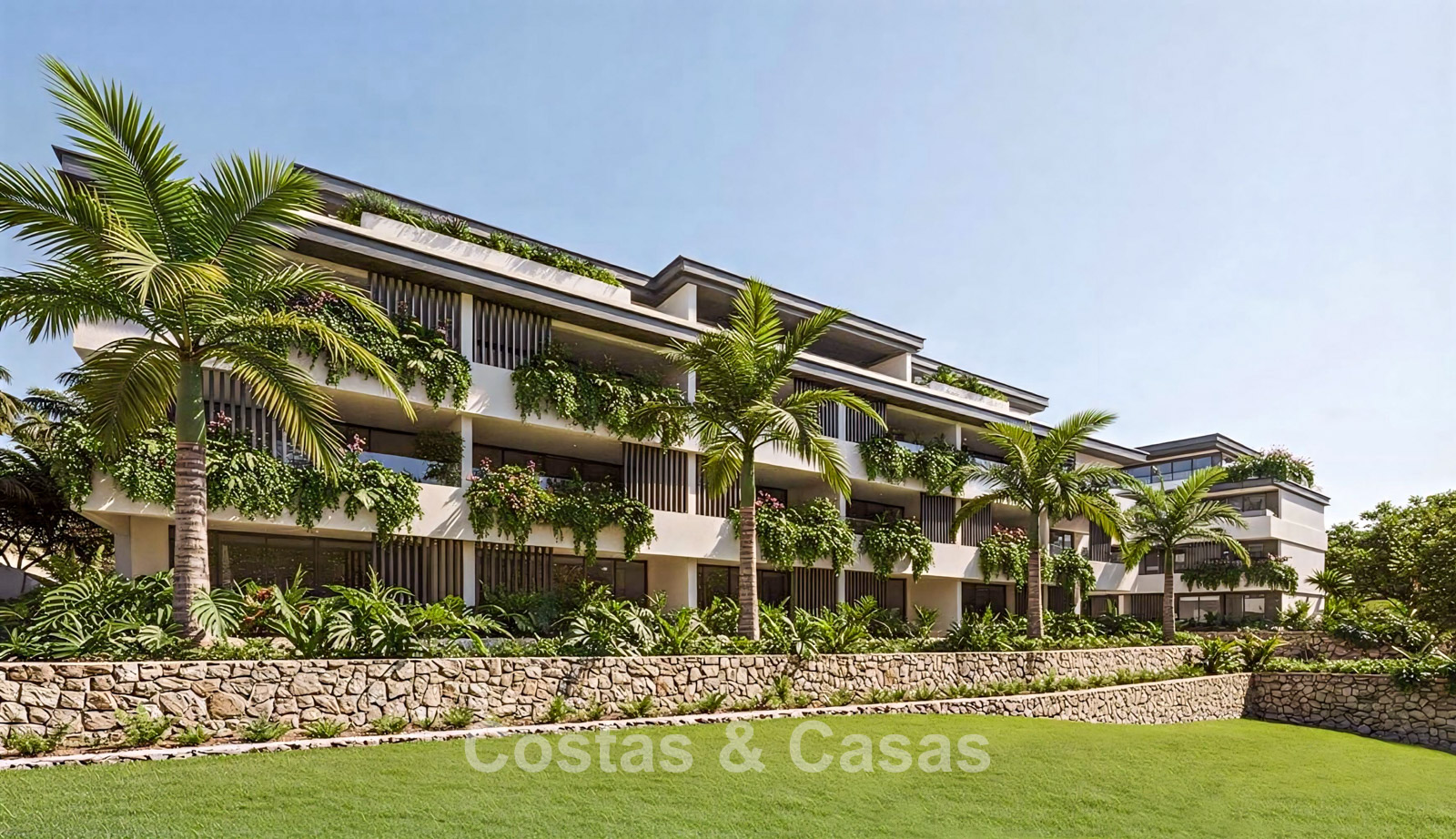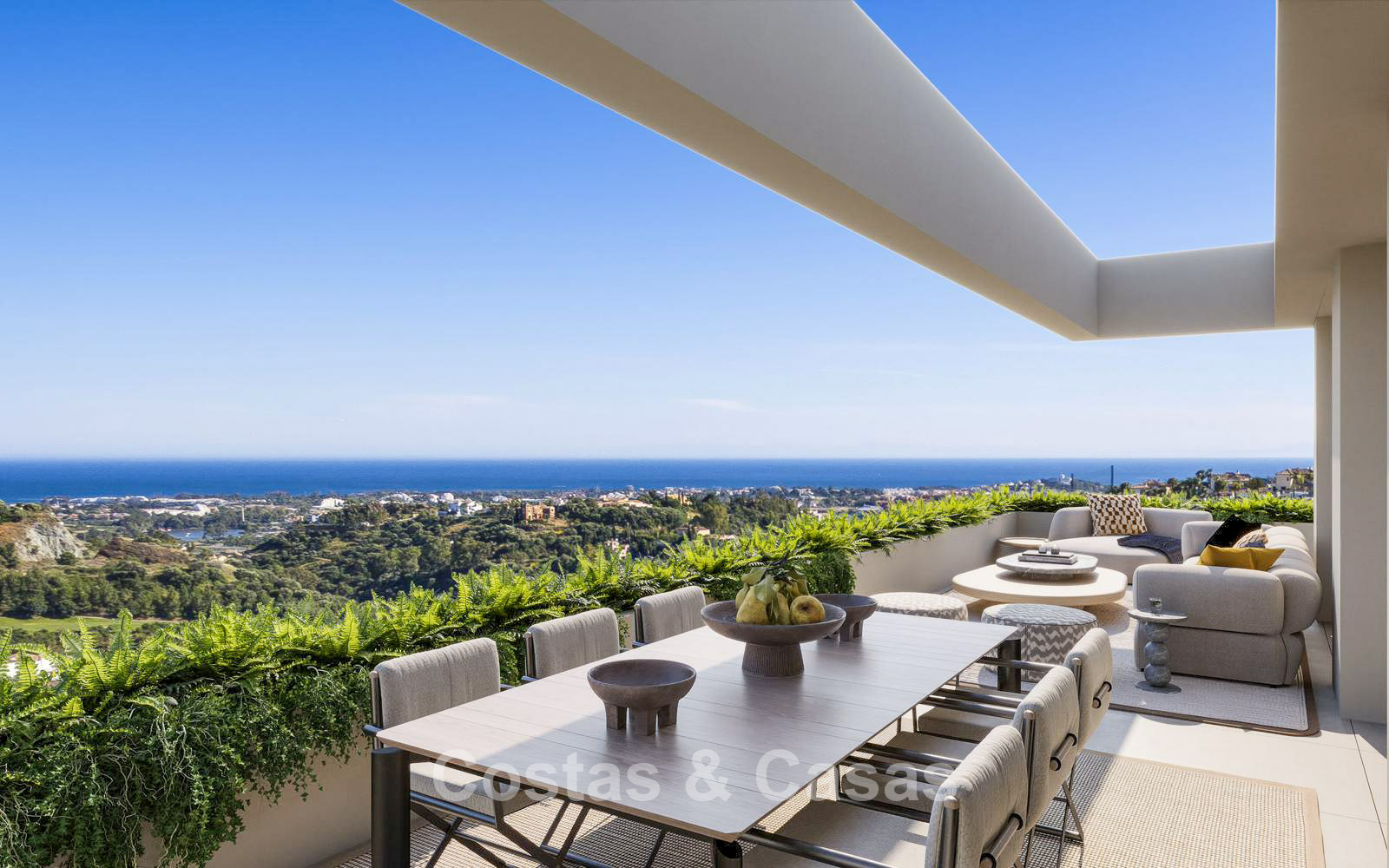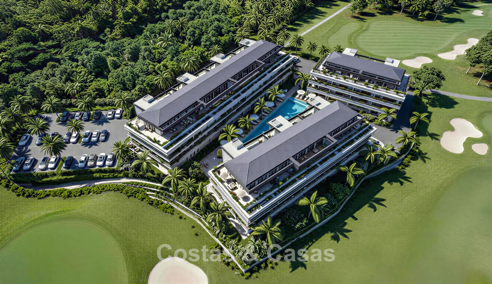 Résidence contemporaine composée de 63 logements de luxe répartis sur trois bâtiments. Finitions haut de gamme avec une attention particulière portée aux détails, à la luminosité naturelle et au confort moderne. Orientation majoritairement plein sud, offrant un ensoleillement optimal tout au long de la journée. Vues panoramiques exceptionnelles sur le golf, les montagnes et la mer Méditerranée. Les intérieurs privilégient la lumière et la transparence. Le salon spacieux s’ouvre sur la terrasse grâce à de grandes baies vitrées coulissantes du sol au plafond. Les cuisines ouvertes sont modernes et fonctionnelles, équipées de matériaux de haute qualité. Les appartements en rez-de-chaussée disposent de vastes terrasses avec accès direct aux espaces communs. Les penthouses séduisent par leurs grands solariums et leurs vues spectaculaires à 360 degrés. Débarras et parking souterrain inclus.