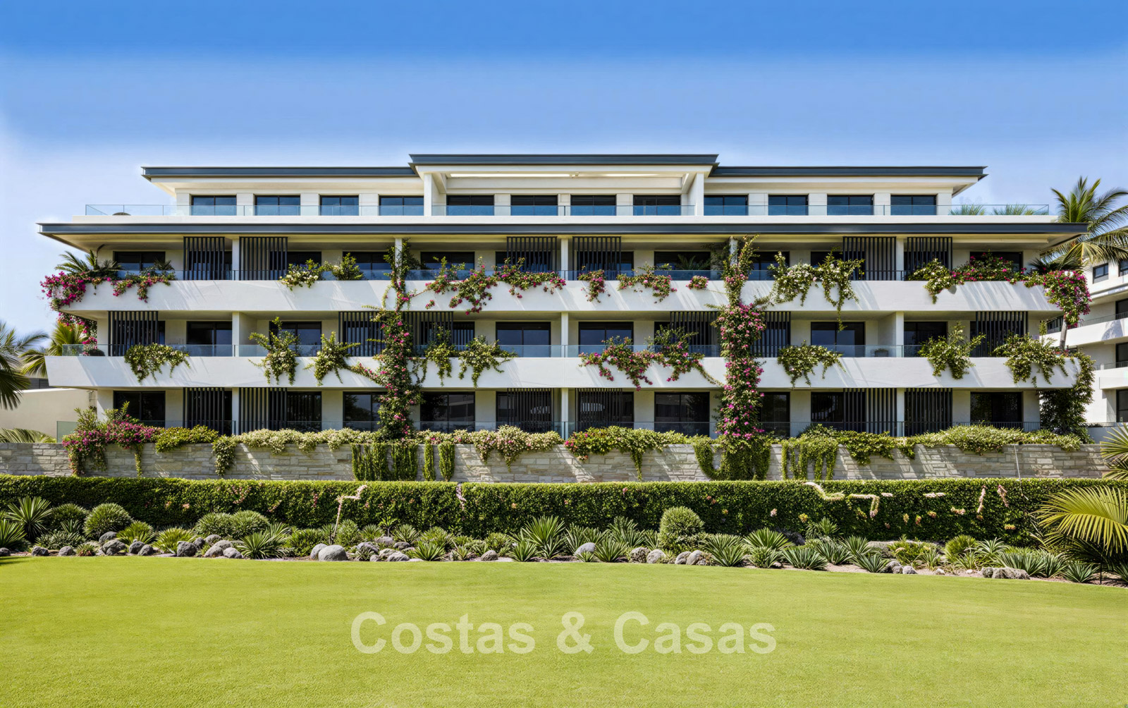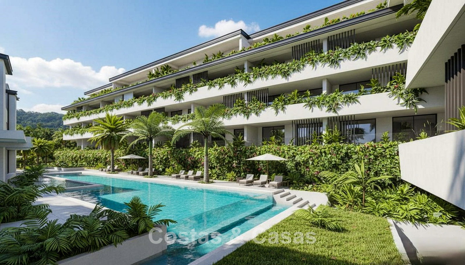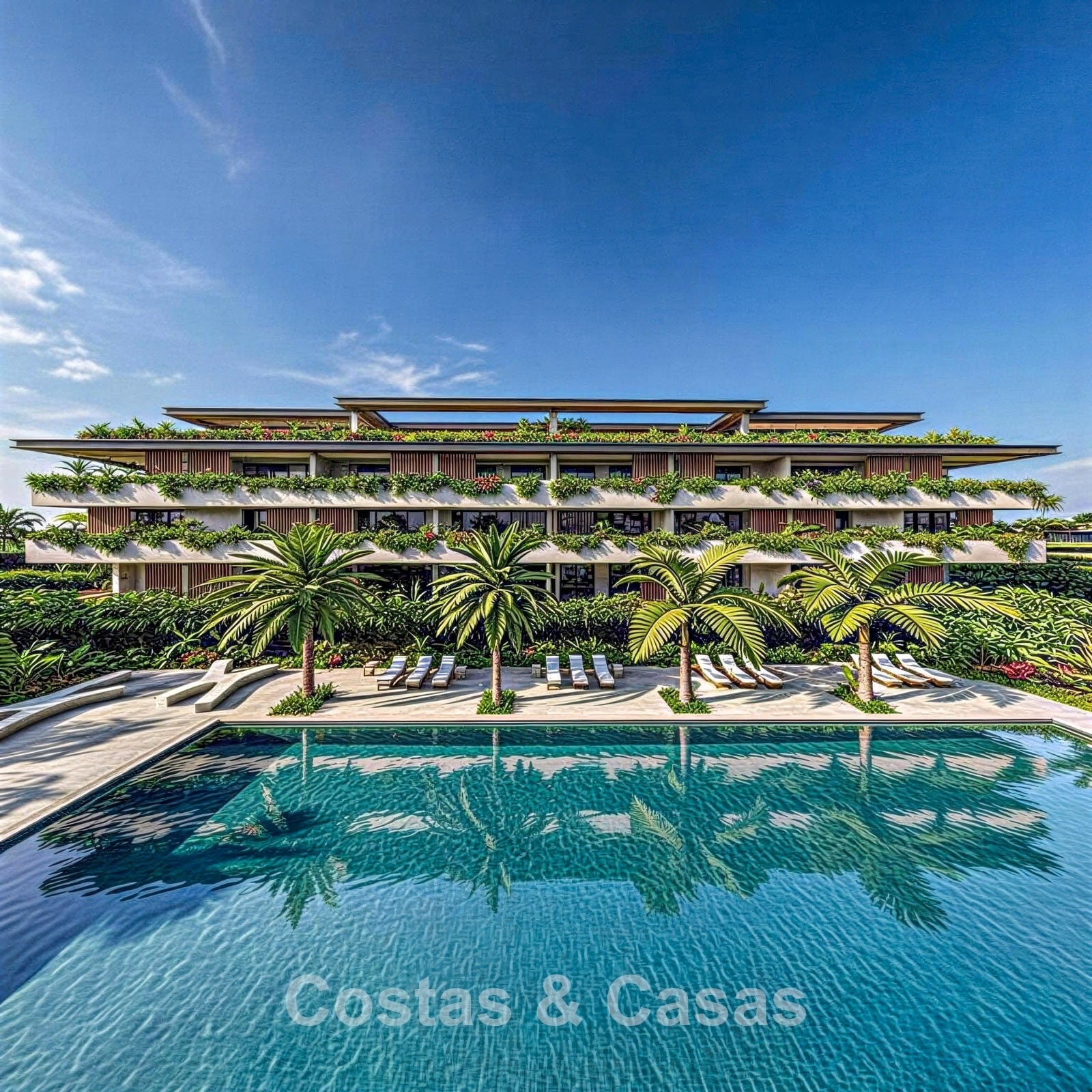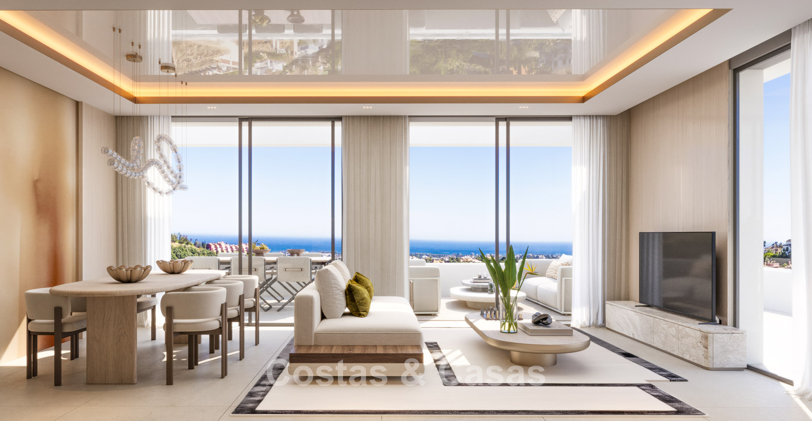 Résidence contemporaine composée de 63 logements de luxe répartis sur trois bâtiments. Finitions haut de gamme avec une attention particulière portée aux détails, à la luminosité naturelle et au confort moderne. Orientation majoritairement plein sud, offrant un ensoleillement optimal tout au long de la journée. Vues panoramiques exceptionnelles sur le golf, les montagnes et la mer Méditerranée. Les intérieurs privilégient la lumière et la transparence. Le salon spacieux s’ouvre sur la terrasse grâce à de grandes baies vitrées coulissantes du sol au plafond. Les cuisines ouvertes sont modernes et fonctionnelles, équipées de matériaux de haute qualité. Les appartements en rez-de-chaussée disposent de vastes terrasses avec accès direct aux espaces communs. Les penthouses séduisent par leurs grands solariums et leurs vues spectaculaires à 360 degrés. Débarras et parking souterrain inclus.