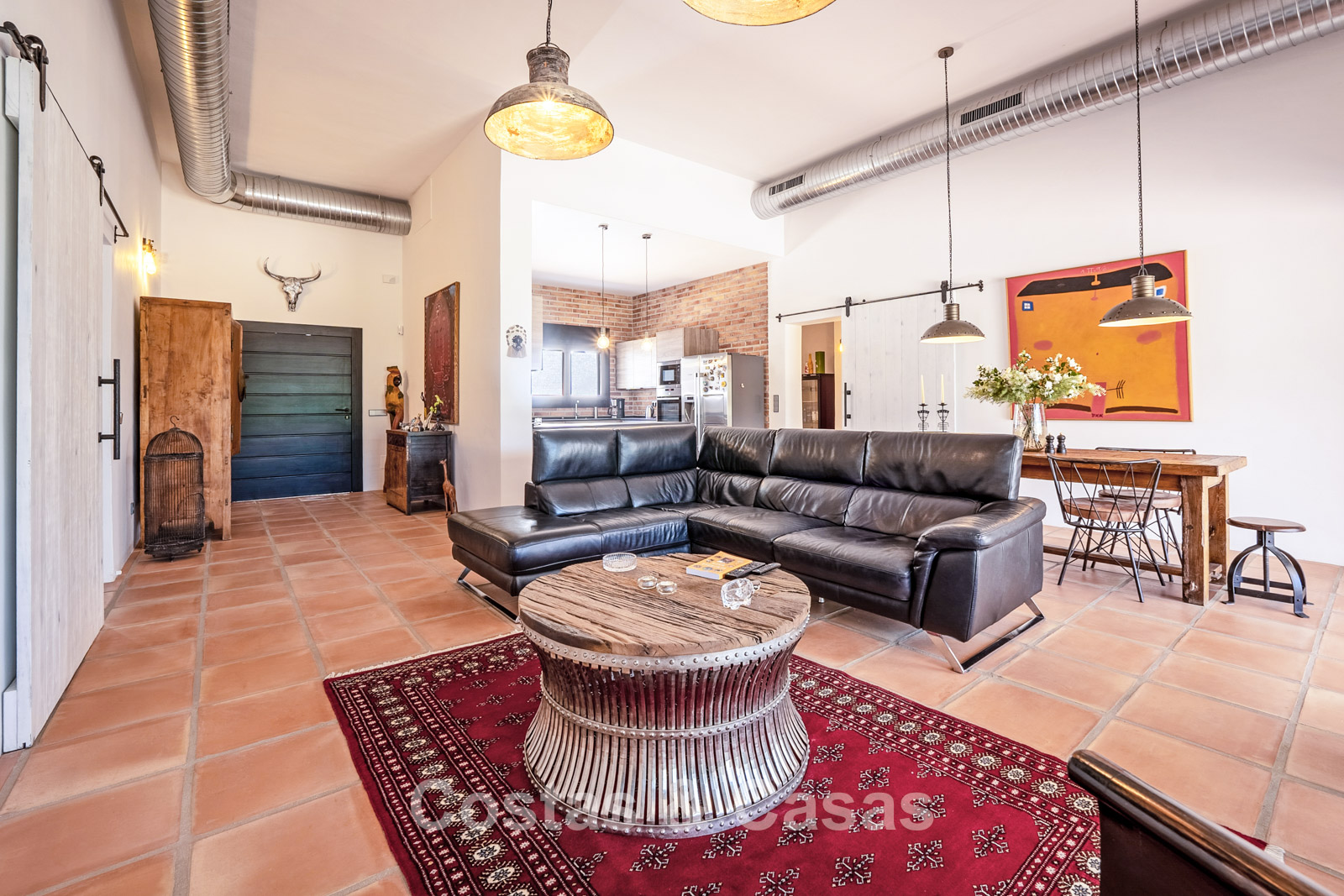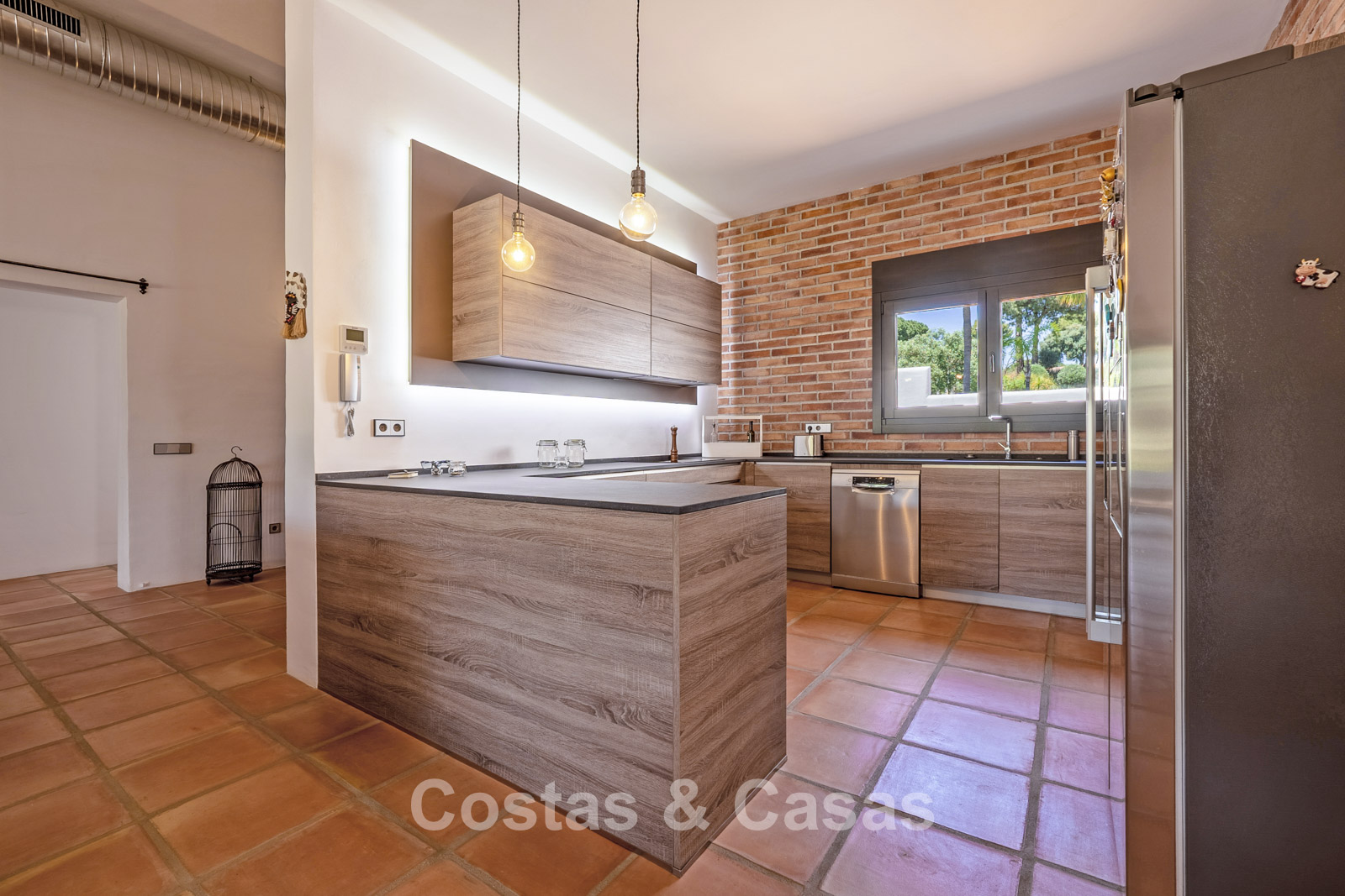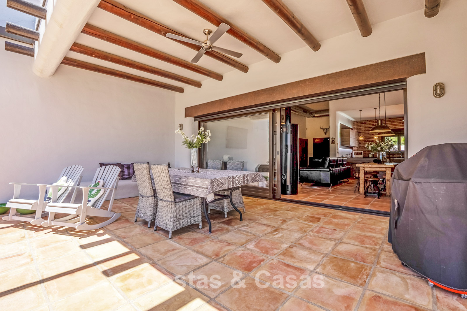 Villa individuelle au style moderne d’inspiration mexicaine. Construite avec des matériaux durables et des finitions de haute qualité. Les hautes fenêtres coulissantes créent une connexion harmonieuse entre l’intérieur et l’extérieur, laissant entrer la lumière naturelle et intégrant harmonieusement l’extérieur à l’intérieur. La décoration intérieure allie le caractère brut des éléments industriels à la chaleur et au confort des touches rustiques. Espace de vie dynamique avec salon et salle à manger. Cuisine ouverte entièrement équipée avec appareils électroménagers Neff. 3 chambres, 2 salles de bains. La suite parentale offre un confort absolu avec un spacieux dressing, une élégante salle de bains attenante avec baignoire et douche à l'italienne, et de grandes baies vitrées donnant directement sur la terrasse ensoleillée. Buanderie. Carrelage en terre cuite. Garage privé pour une voiture avec borne de recharge pour véhicule électrique. Places de parking supplémentaires disponibles dans la rue.