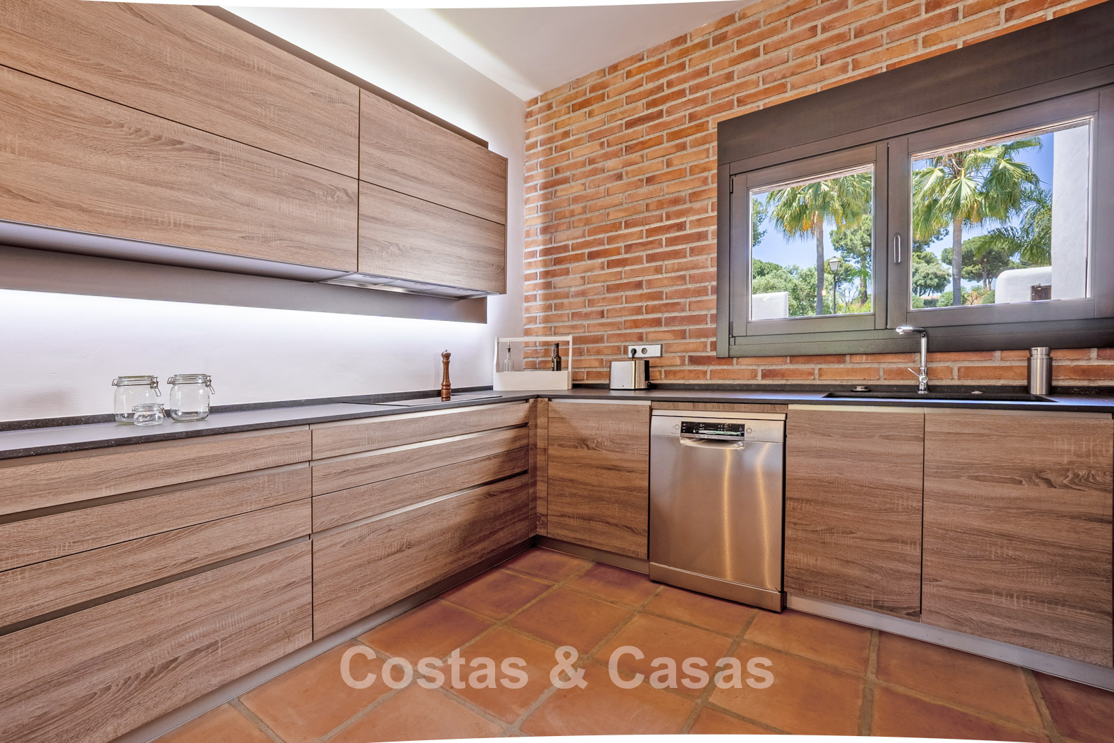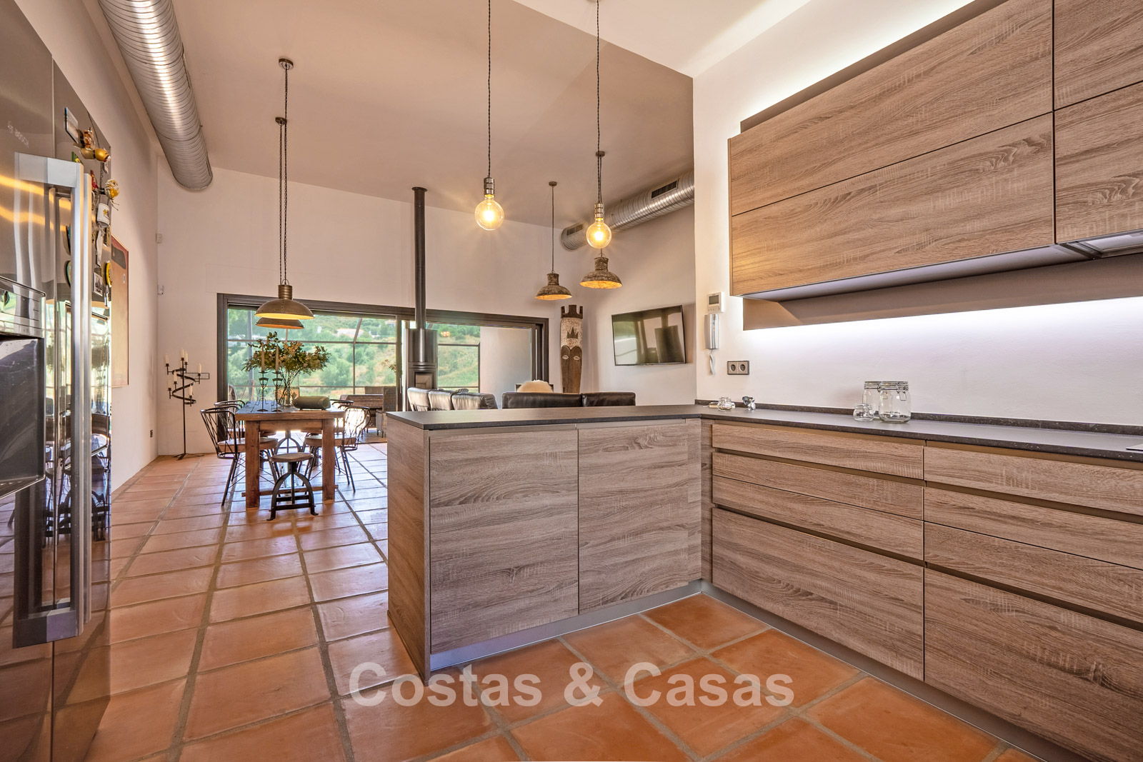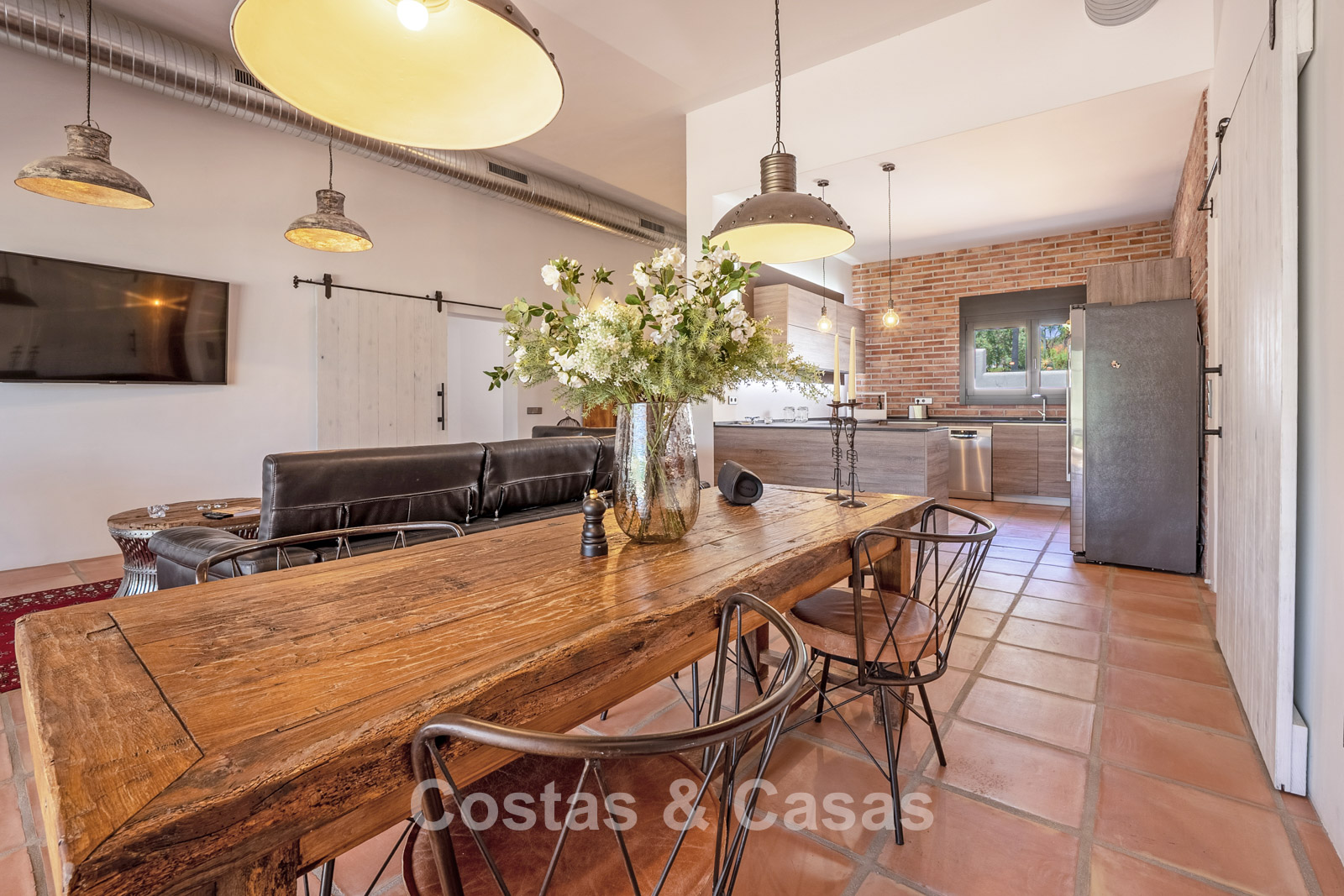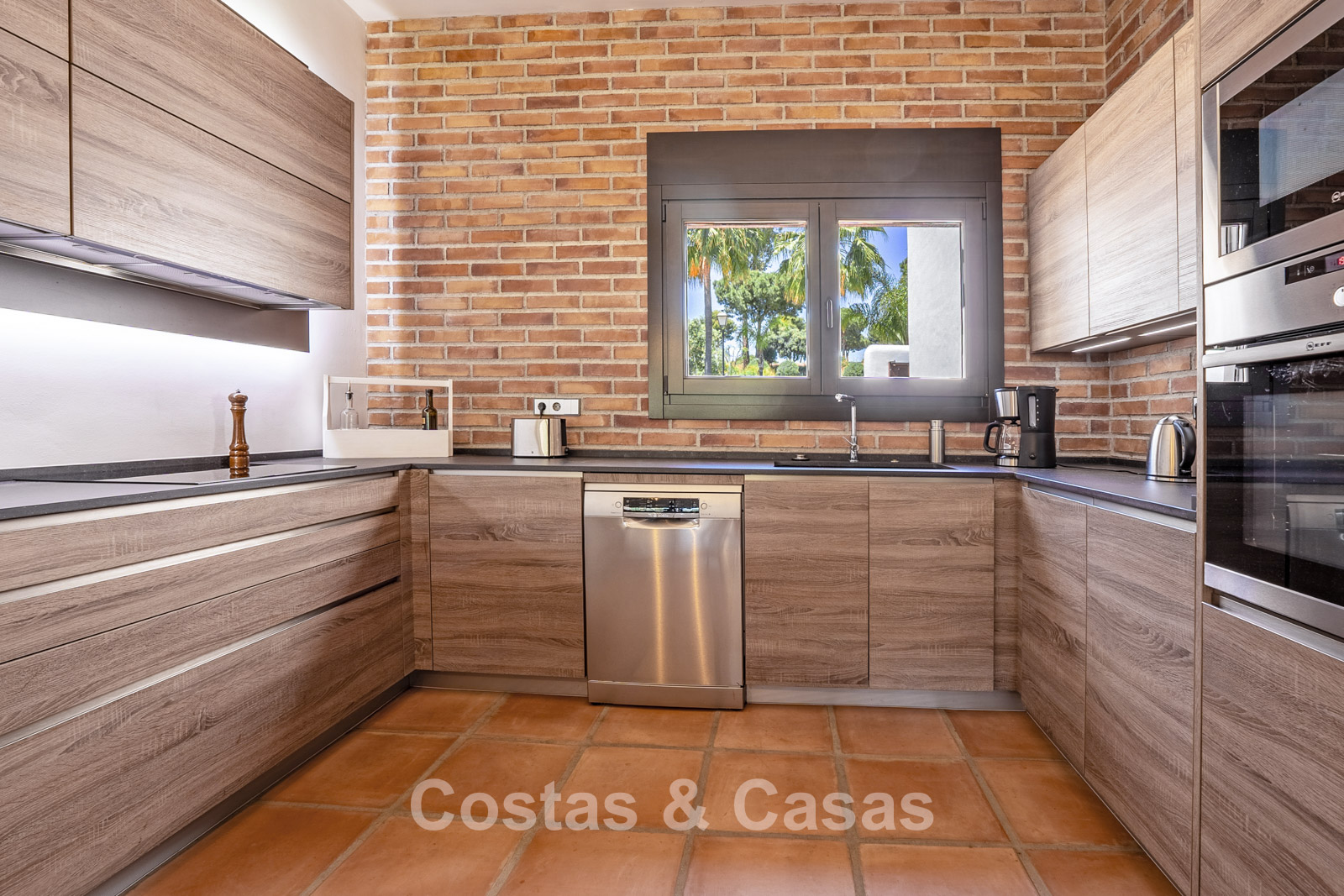 Villa individuelle au style moderne d’inspiration mexicaine. Construite avec des matériaux durables et des finitions de haute qualité. Les hautes fenêtres coulissantes créent une connexion harmonieuse entre l’intérieur et l’extérieur, laissant entrer la lumière naturelle et intégrant harmonieusement l’extérieur à l’intérieur. La décoration intérieure allie le caractère brut des éléments industriels à la chaleur et au confort des touches rustiques. Espace de vie dynamique avec salon et salle à manger. Cuisine ouverte entièrement équipée avec appareils électroménagers Neff. 3 chambres, 2 salles de bains. La suite parentale offre un confort absolu avec un spacieux dressing, une élégante salle de bains attenante avec baignoire et douche à l'italienne, et de grandes baies vitrées donnant directement sur la terrasse ensoleillée. Buanderie. Carrelage en terre cuite. Garage privé pour une voiture avec borne de recharge pour véhicule électrique. Places de parking supplémentaires disponibles dans la rue.