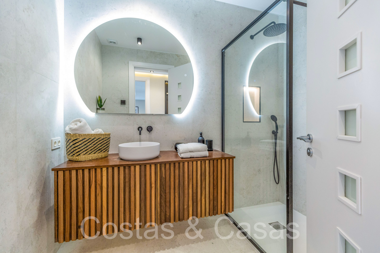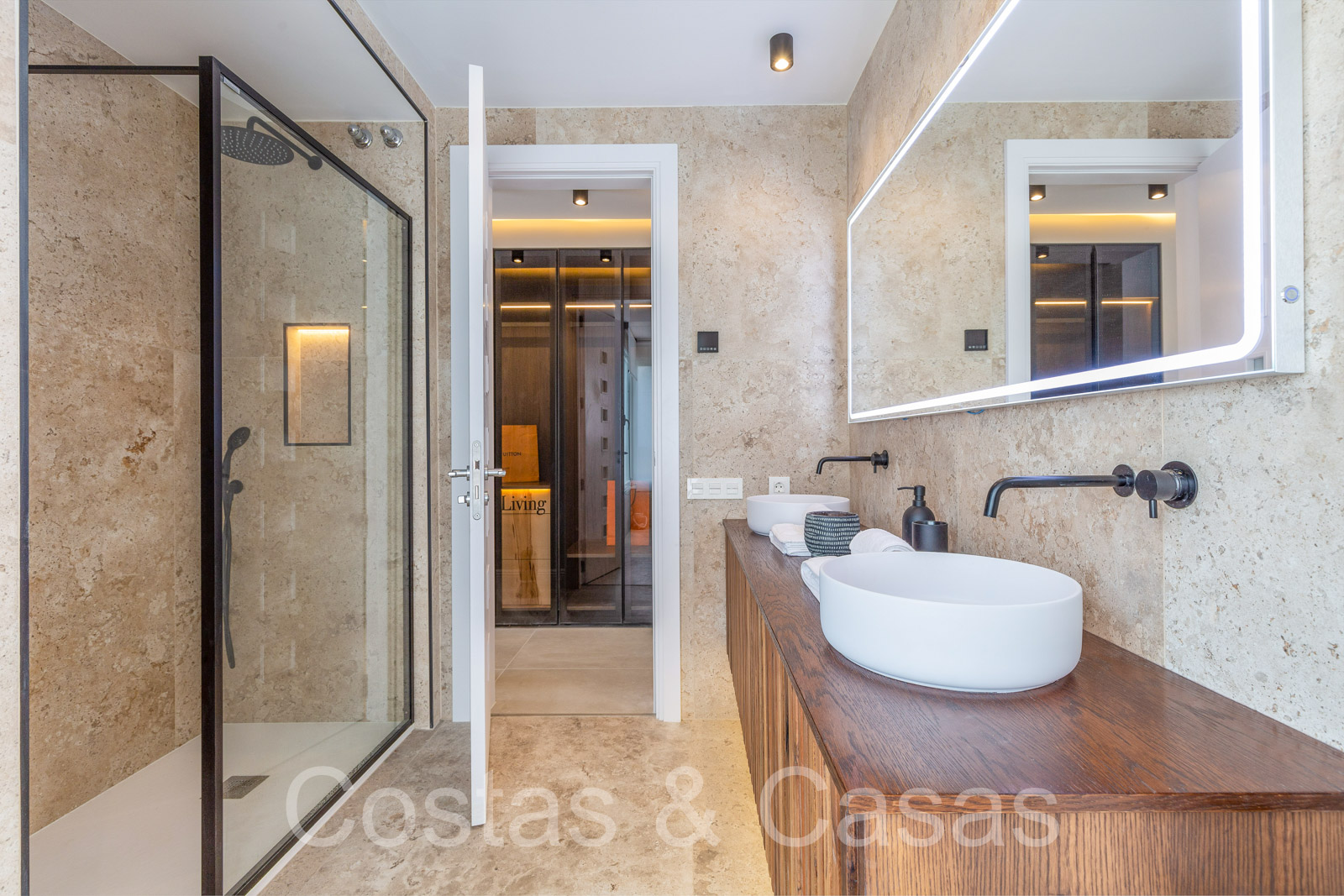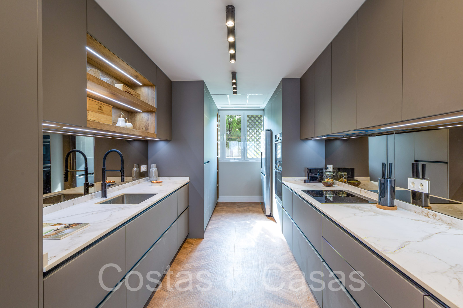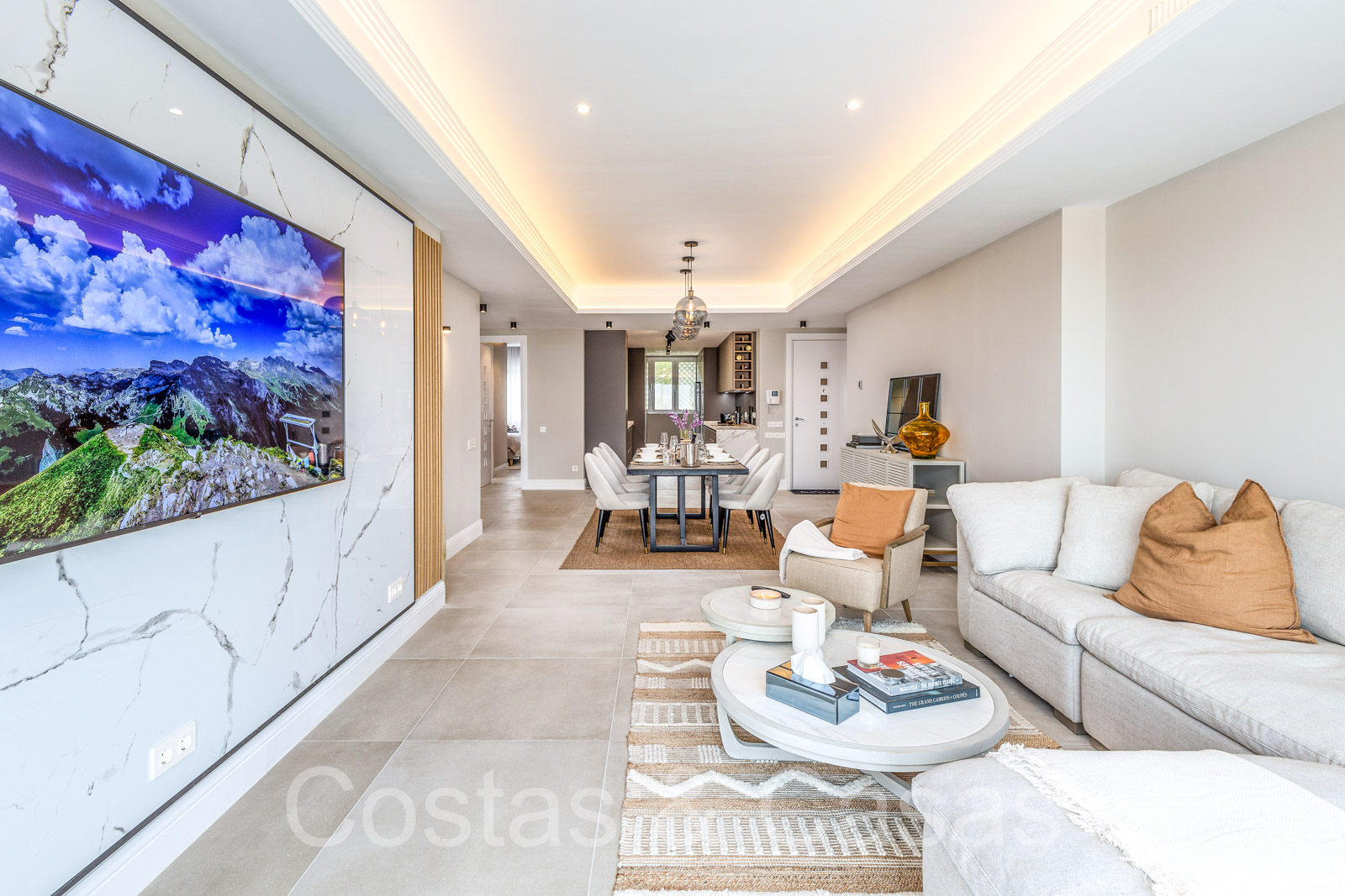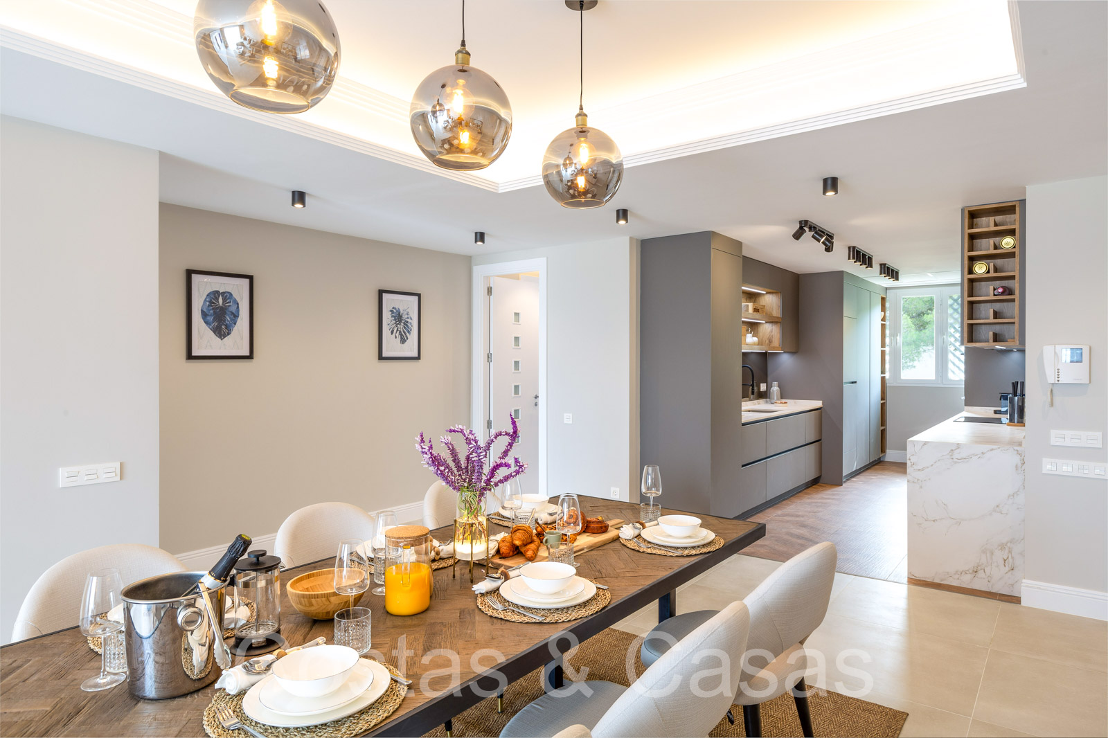 Penthouse spacieux de style contemporain. L'appartement a été rénové avec une finition de haute qualité et un mobilier de luxe contemporain. Intérieur moderne avec un aménagement ouvert où tout l'espace est utilisé. Terrasse spacieuse et ensoleillée. Orientation sud-est. Belles vues sur les terrains de golf et le paysage montagneux vers la mer Méditerranée. Séjour avec salon TV et coin repas intégré. La cuisine ouverte et moderne est équipée d'appareils électroménagers de haute qualité et offre de nombreux espaces de rangement. 3 chambres avec chacune sa salle de bain. Grâce aux hautes structures de fenêtres, l'intérieur bénéficie de beaucoup de lumière naturelle. Sols en carrelage léger et grand format. Les parquets en céramique dans les salles de bains confèrent un aspect chaleureux. Débarras et parking souterrain inclus dans le prix. Meublé pour un montant supplémentaire de 30 000 €.