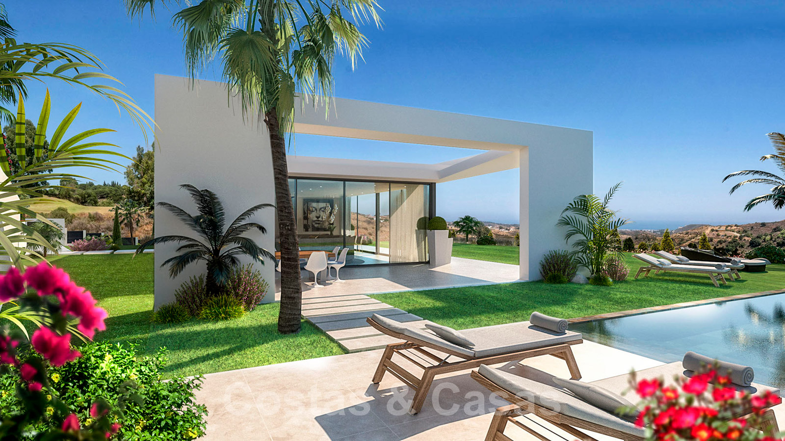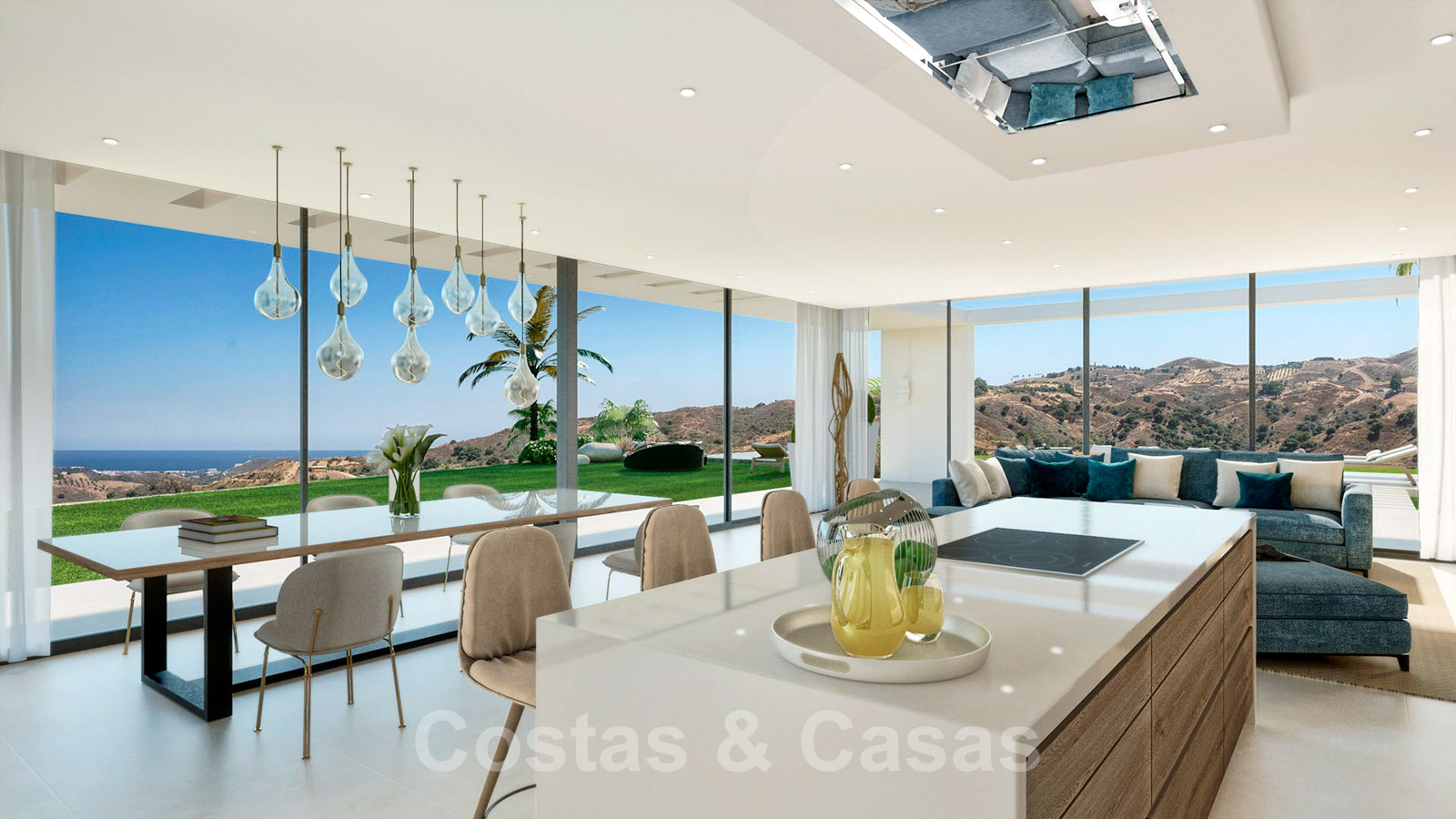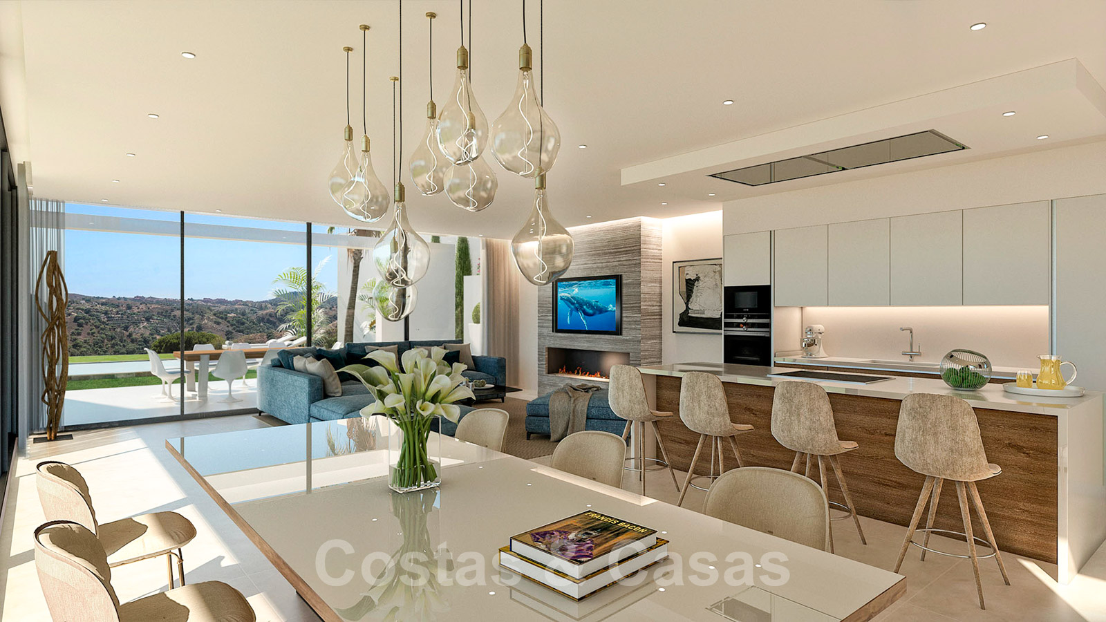 Luxueuse villa de construction récente à vendre dans un complexe de golf à Mijas avec vue panoramique sur les montagnes, la vallée et la mer