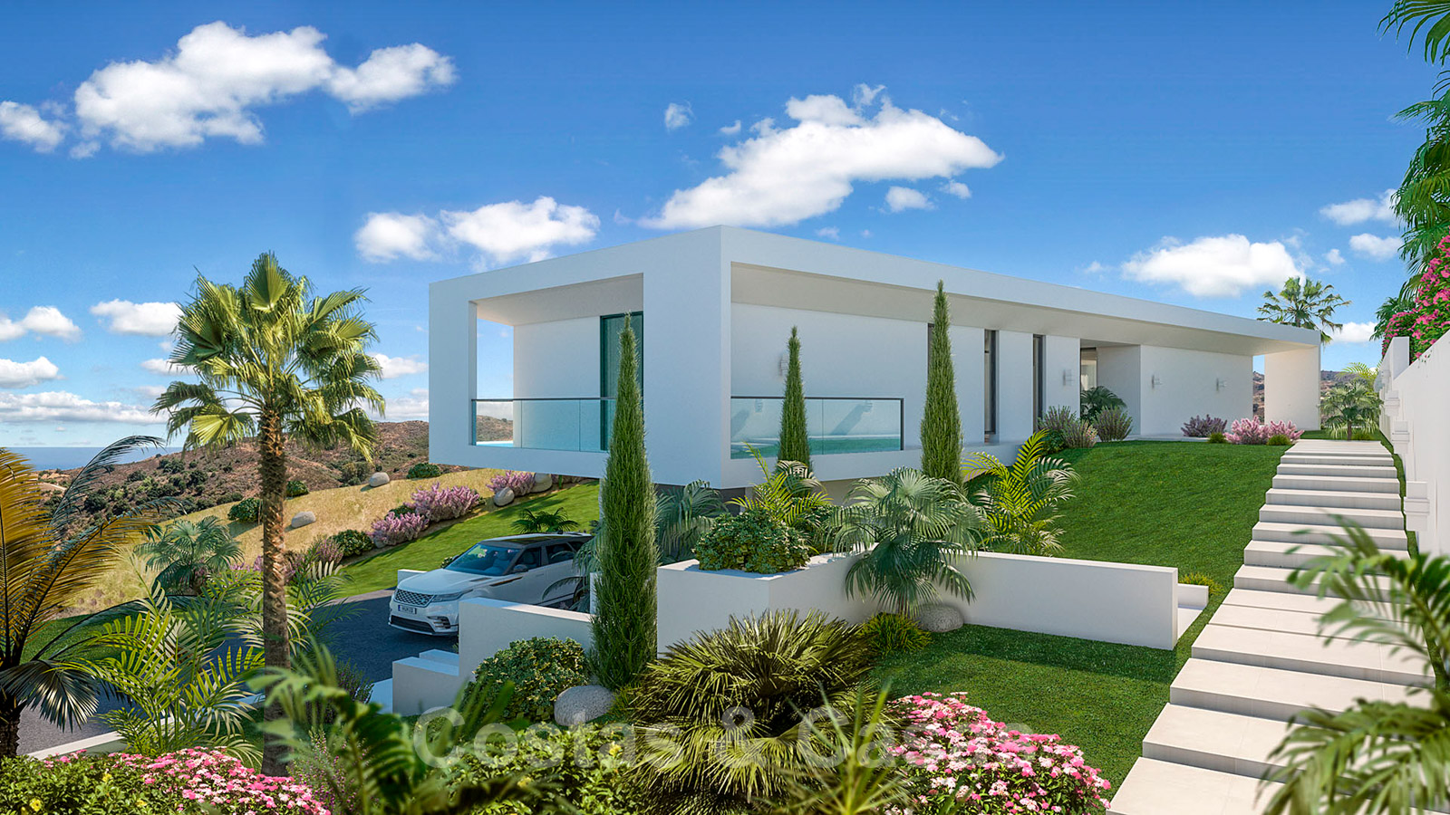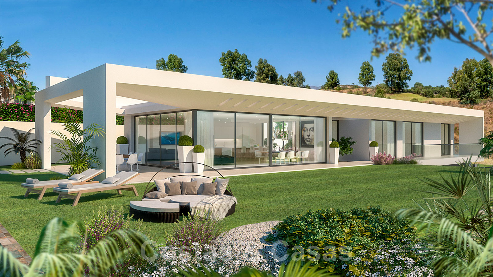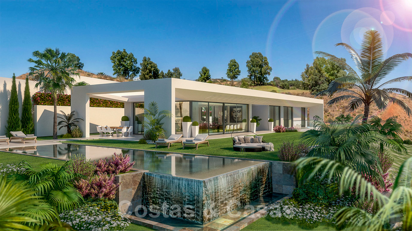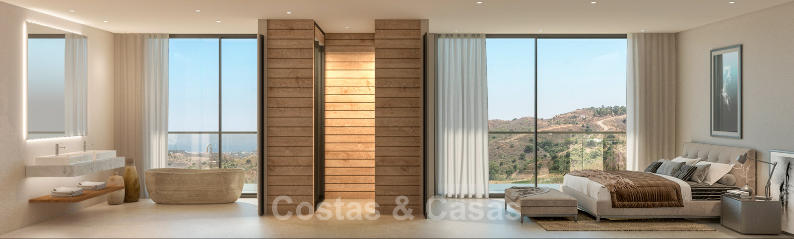 Luxueuse villa de construction récente à vendre dans un complexe de golf à Mijas avec vue panoramique sur les montagnes, la vallée et la mer