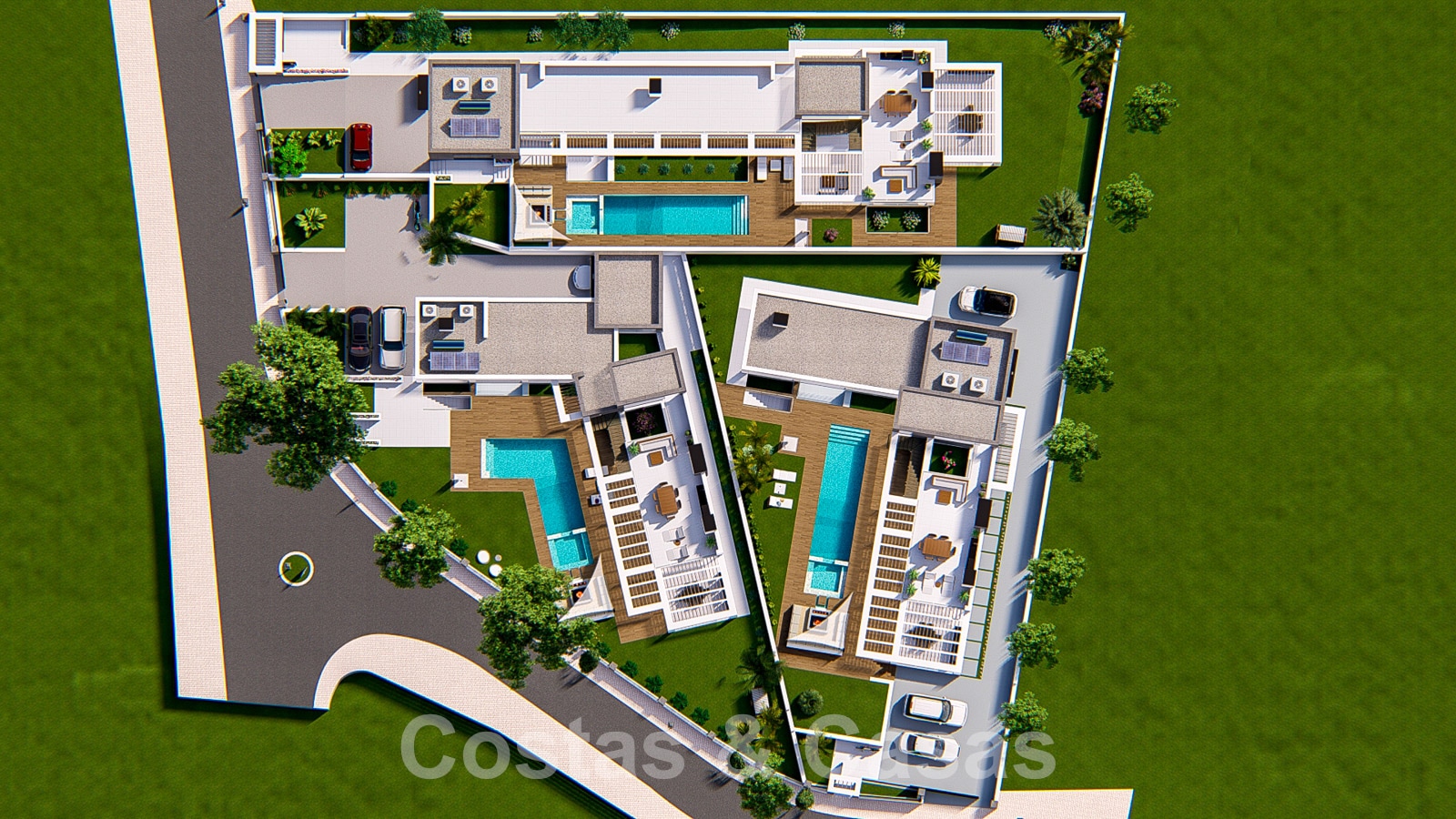 Dernière unité! Terrain : 866m² Surface habitable : 397m² Terrasse : 173m² 6 chambres 4 + 2 salles de bains €2.548.000 Achèvement au été 2025.