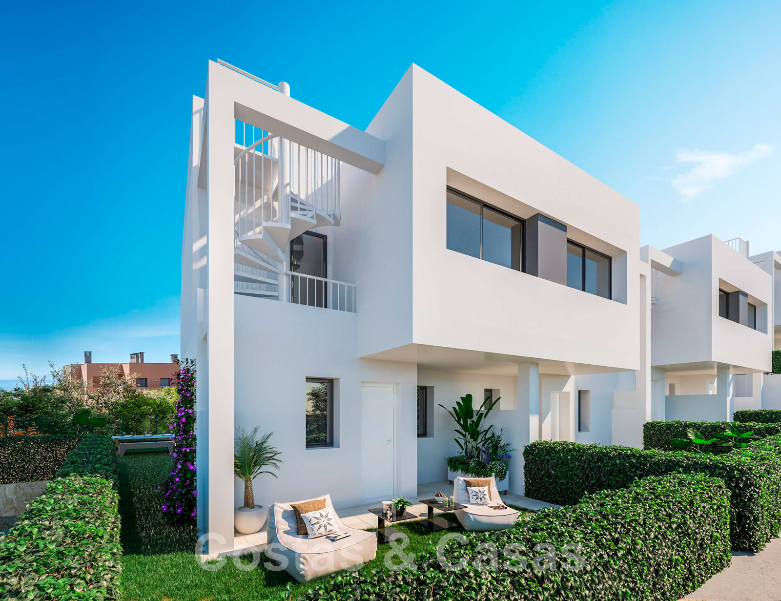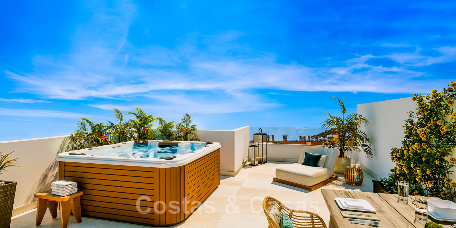 Maisons neuves de style contemporain. Utilisation de matériaux de haute qualité et d'une finition raffinée. Intérieur lumineux et accueillant. Maisons avec 2 étages résidentiels + étage inférieur et solarium. Terrasses ouvertes et couvertes avec espaces de détente. Chaque maison dispose d'une piscine privée. Solarium avec coin barbecue et suffisamment d'espace pour installer un coin repas, un coin détente et/ou un jacuzzi. Vue sublime sur Gibraltar et la côte africaine. Orientation sud et sud-ouest. Concept d'espace ouvert. Salle de séjour avec salon TV et table à manger intégrée. Cuisine ouverte, entièrement équipée, avec bar pour le petit-déjeuner. De hautes fenêtres coulissantes, offrant des pièces naturellement éclairées. Parquet et carreaux de céramique en intérieur. 3 chambres et 2 bains. Parking intérieur pour 2 voitures.