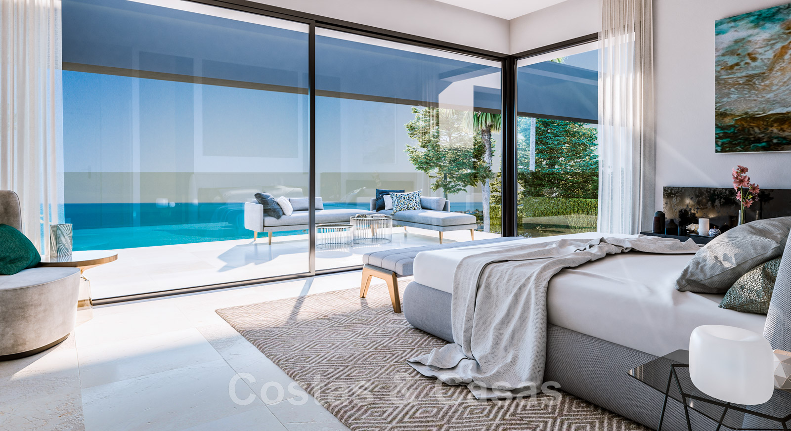 Chambre principale en-suite avec dressing et accès à la terrasse, qui sera équipée d'un chill-out.