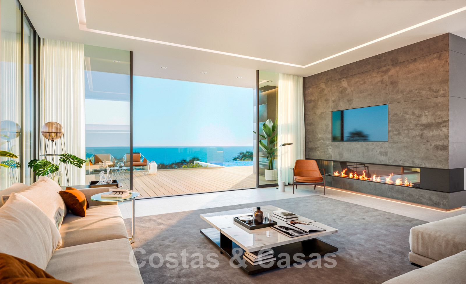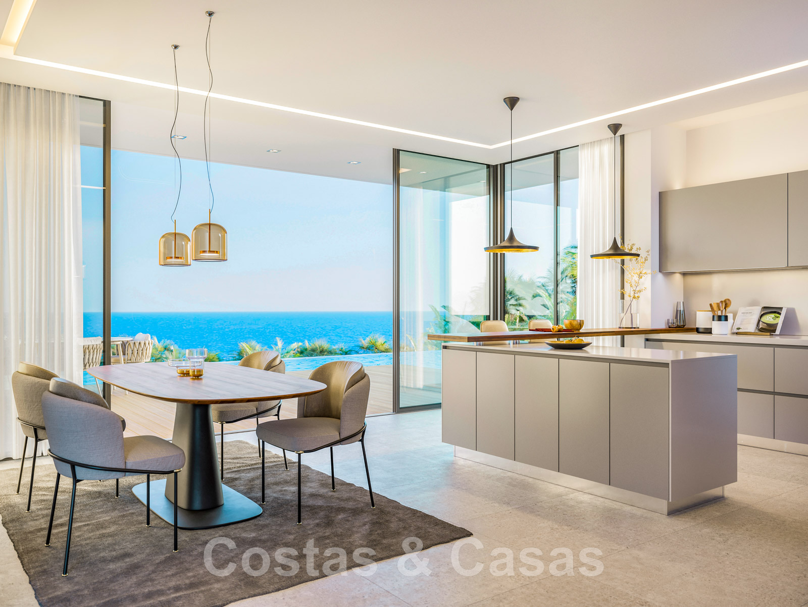 Transition transparente entre l'intérieur et l'extérieur grâce aux cadres de fenêtres en retrait.