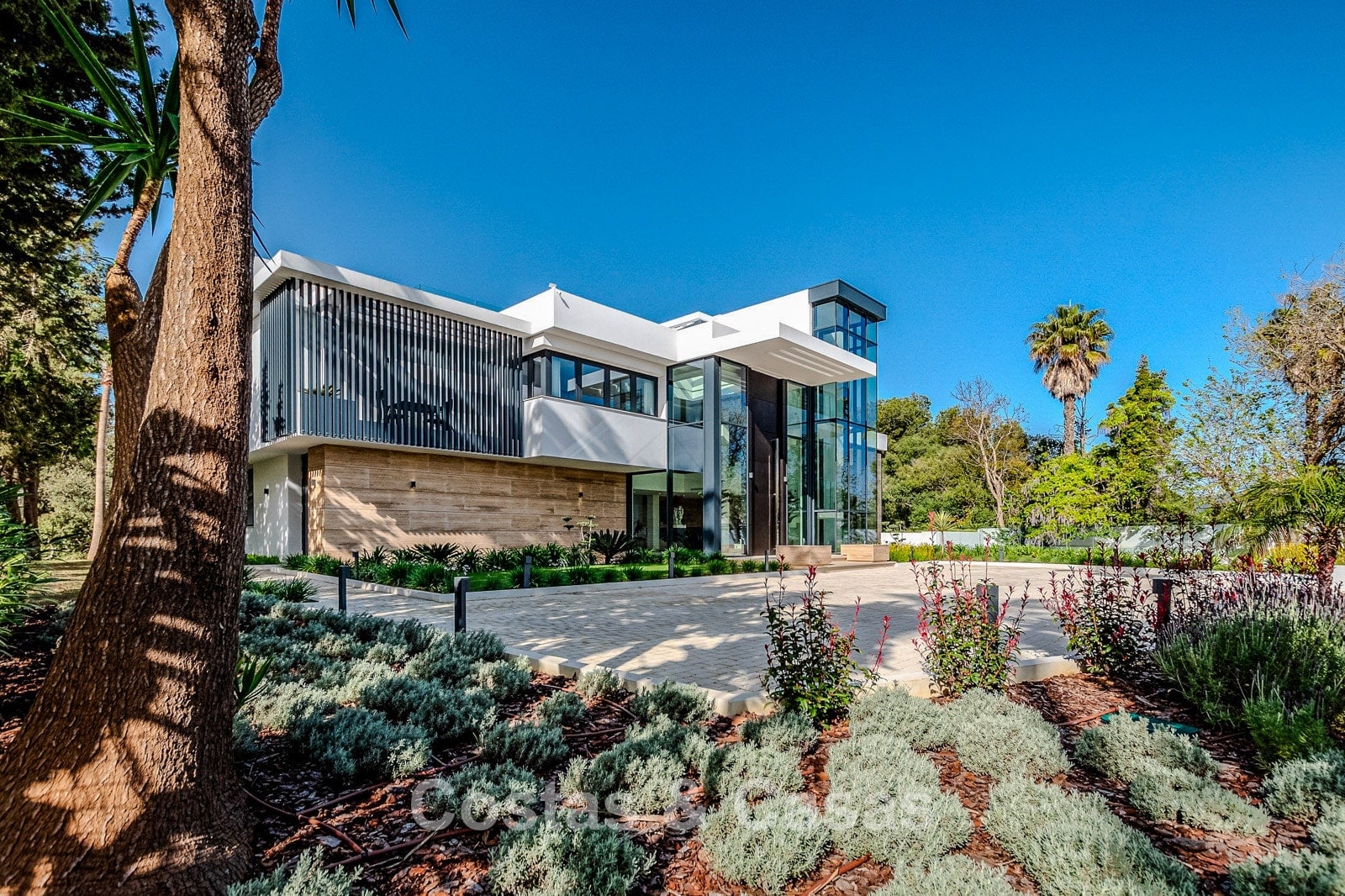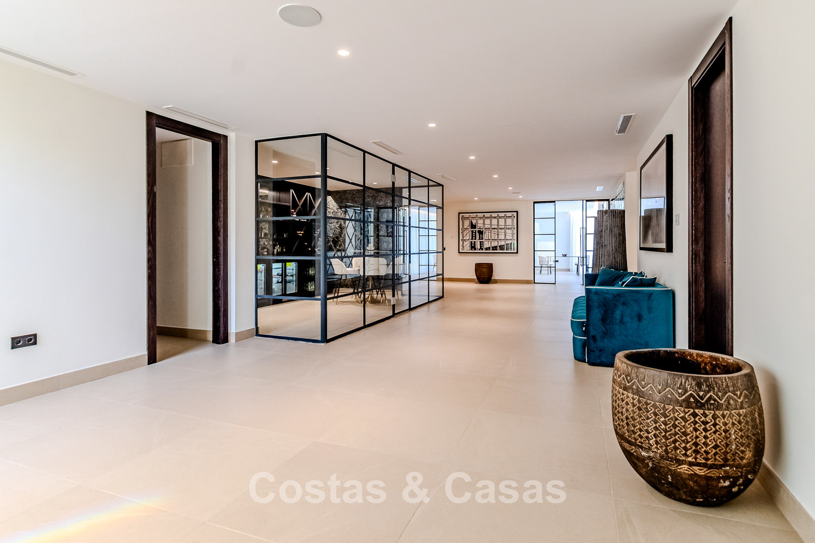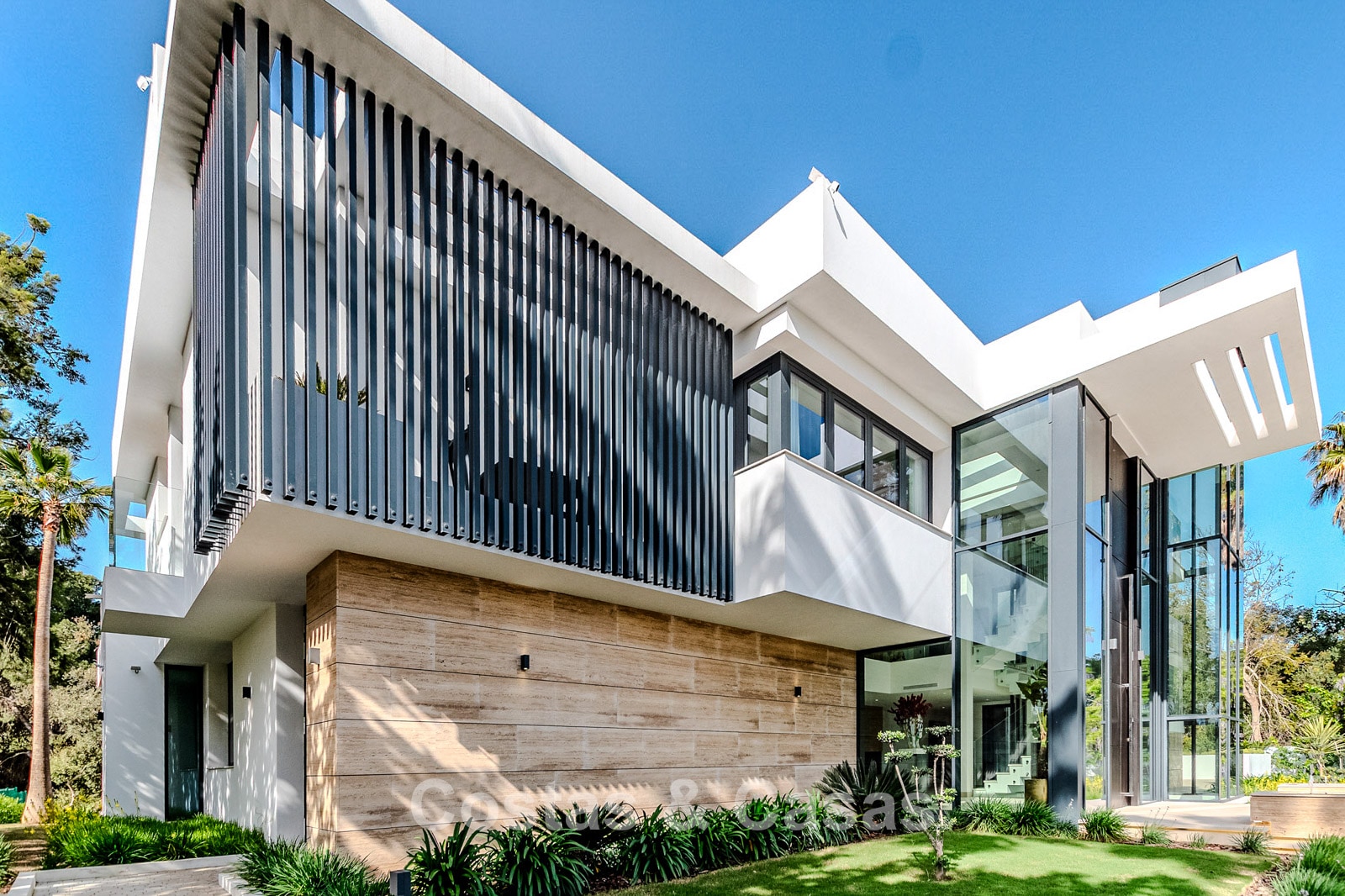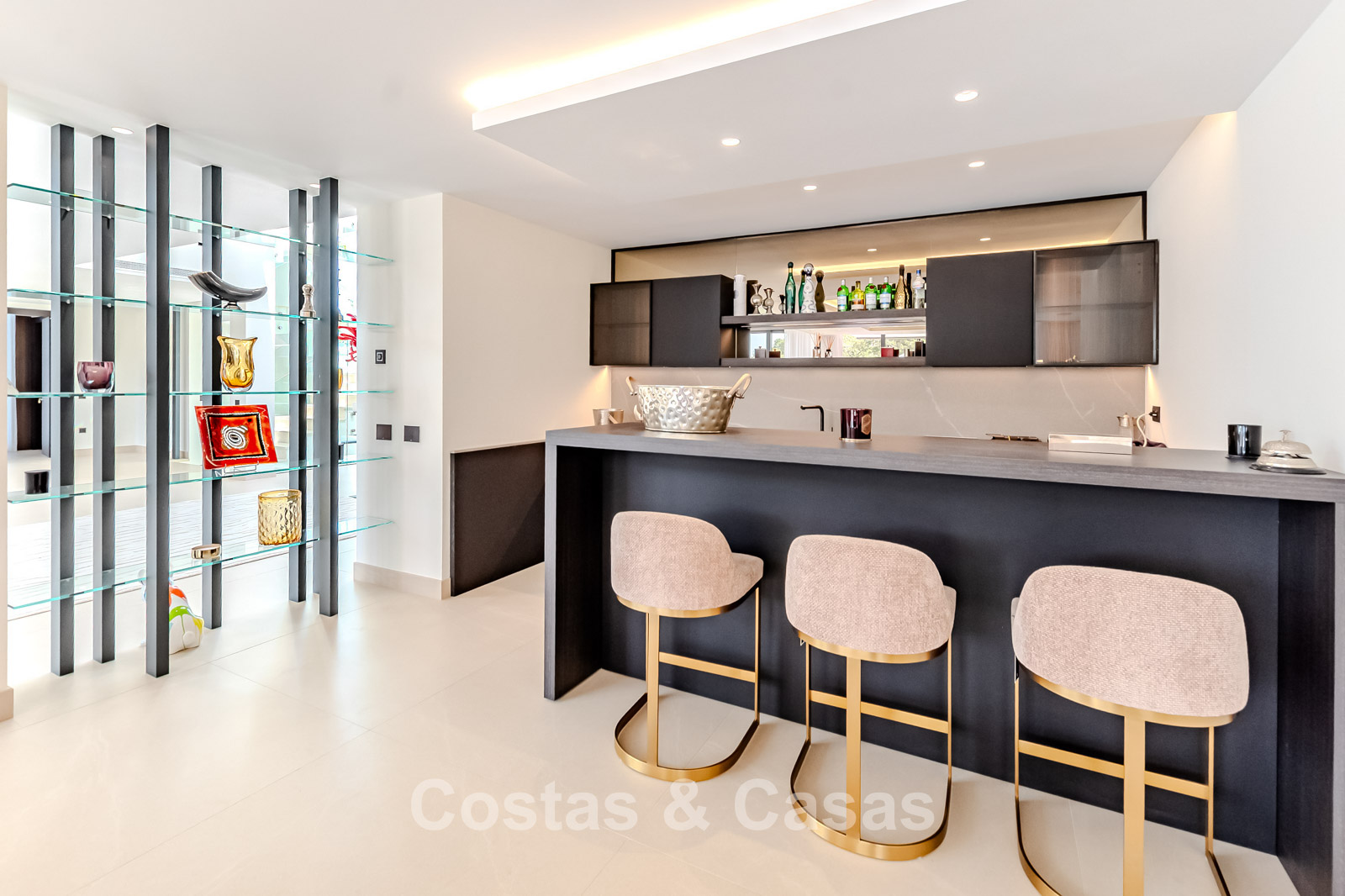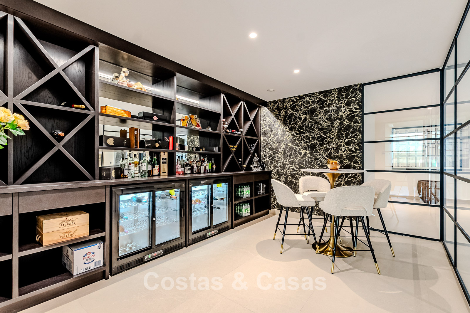 Autres caractéristiques : Ascenseur privé desservant tous les étages. Climatisation pour le refroidissement et le chauffage. Chauffage au sol. Cheminée moderne. (Plusieurs) Armoires intégrées sur mesure. Double vitrage. Balustrades en verre autour des terrasses. Éclairage LED intérieur et extérieur. Panneaux solaires. Système d'alarme avec caméras de vidéosurveillance.