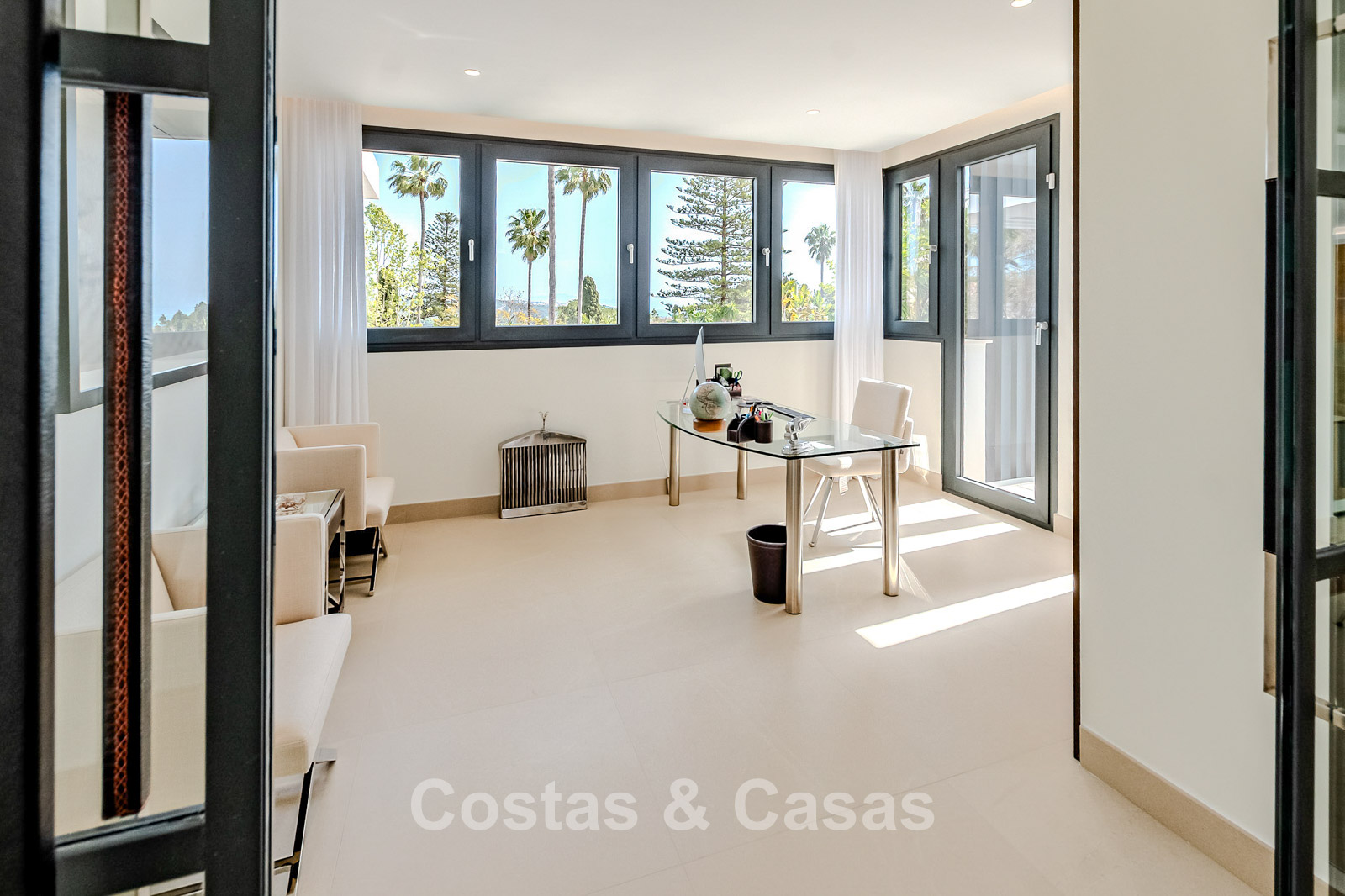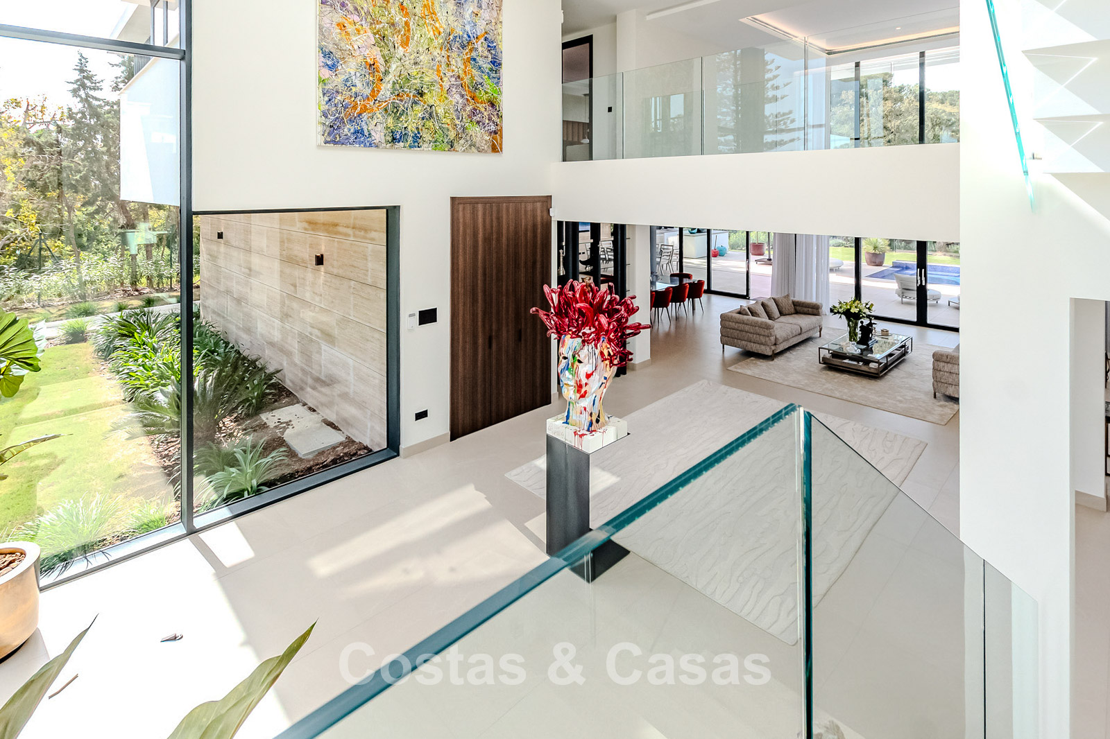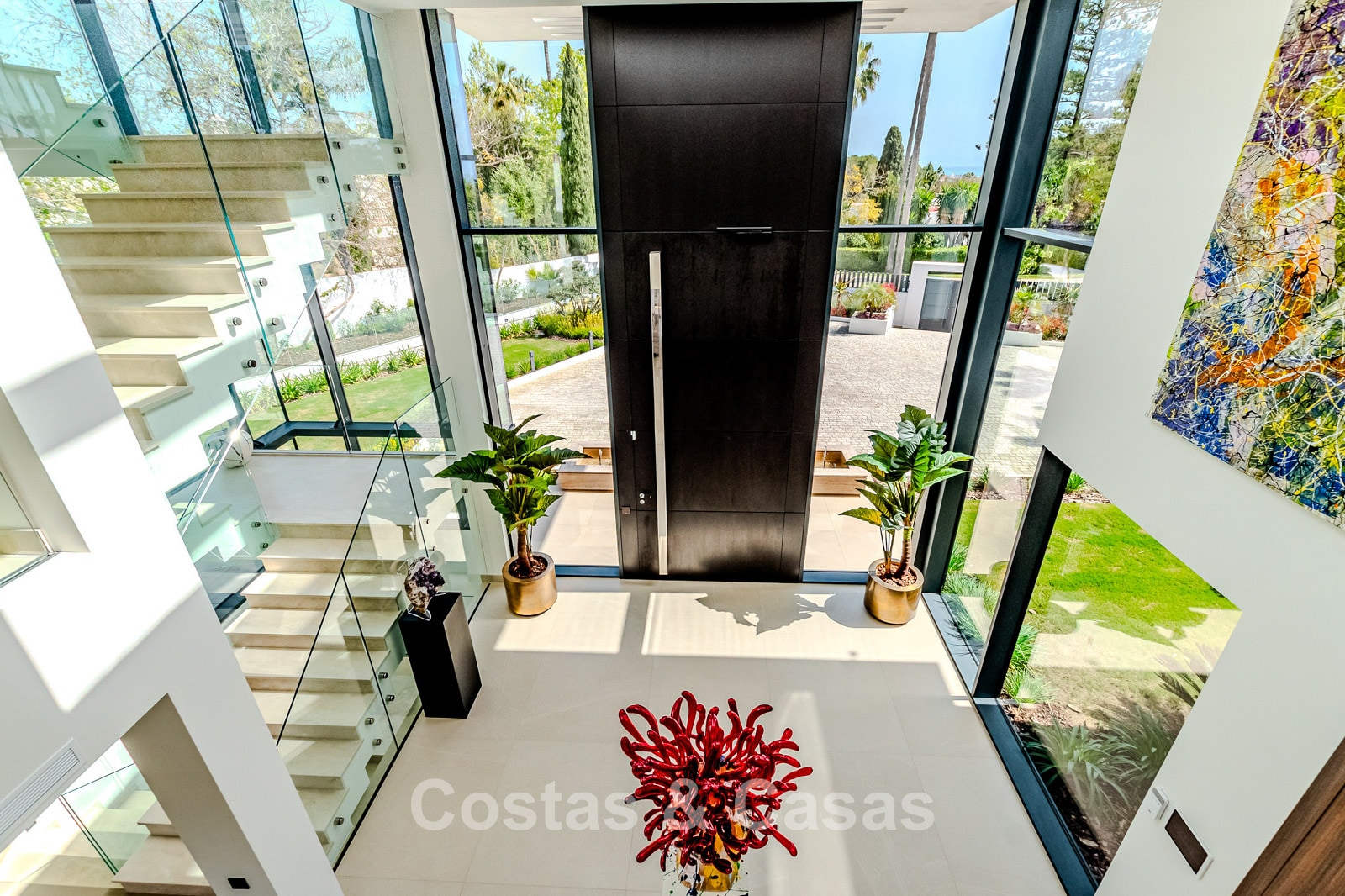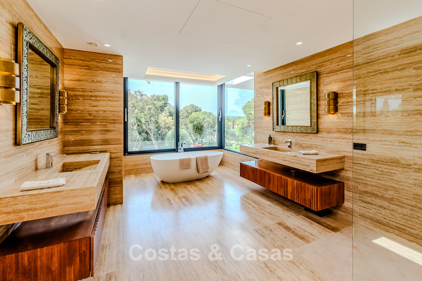 Autres caractéristiques : Ascenseur privé desservant tous les étages. Climatisation pour le refroidissement et le chauffage. Chauffage au sol. Cheminée moderne. (Plusieurs) Armoires intégrées sur mesure. Double vitrage. Balustrades en verre autour des terrasses. Éclairage LED intérieur et extérieur. Panneaux solaires. Système d'alarme avec caméras de vidéosurveillance.