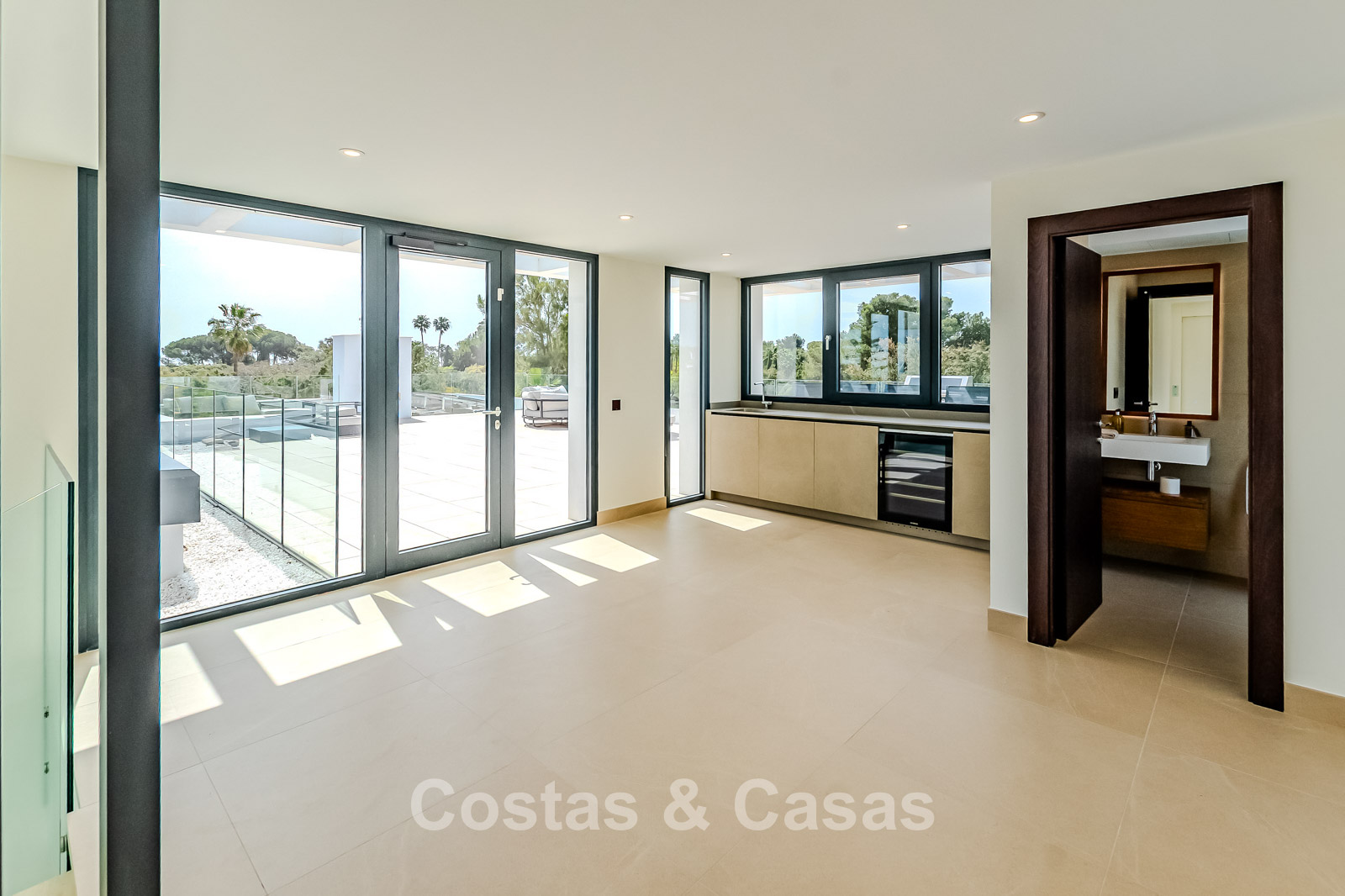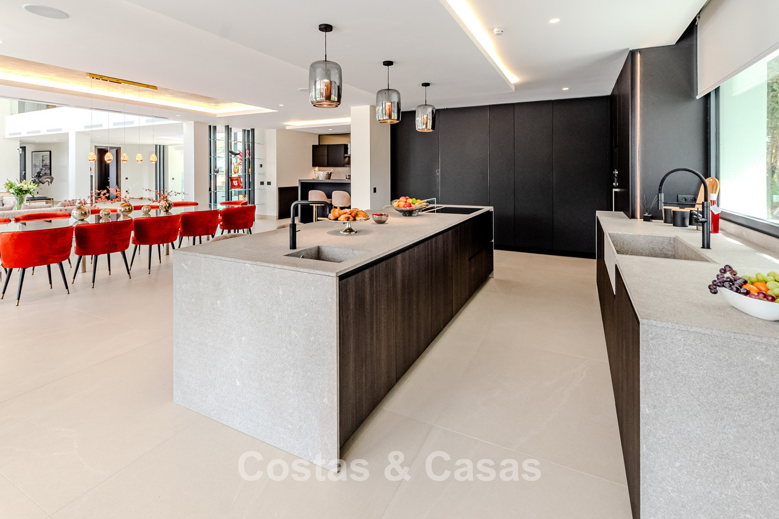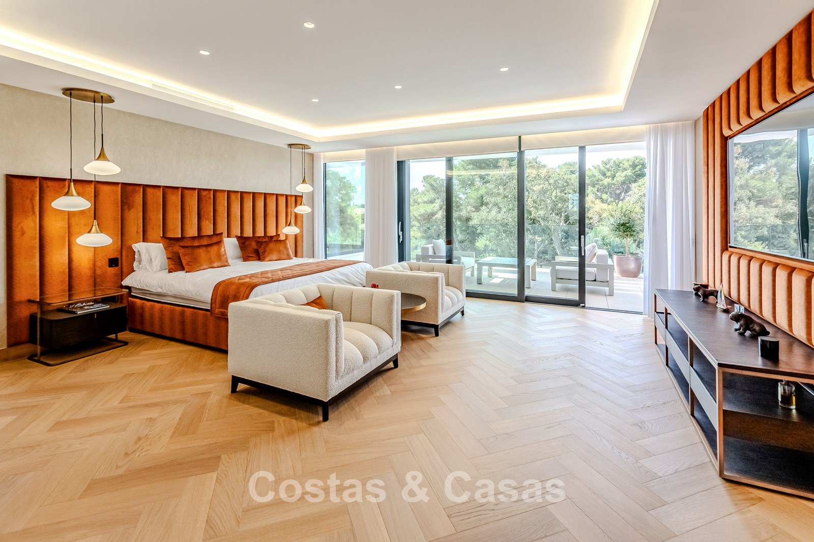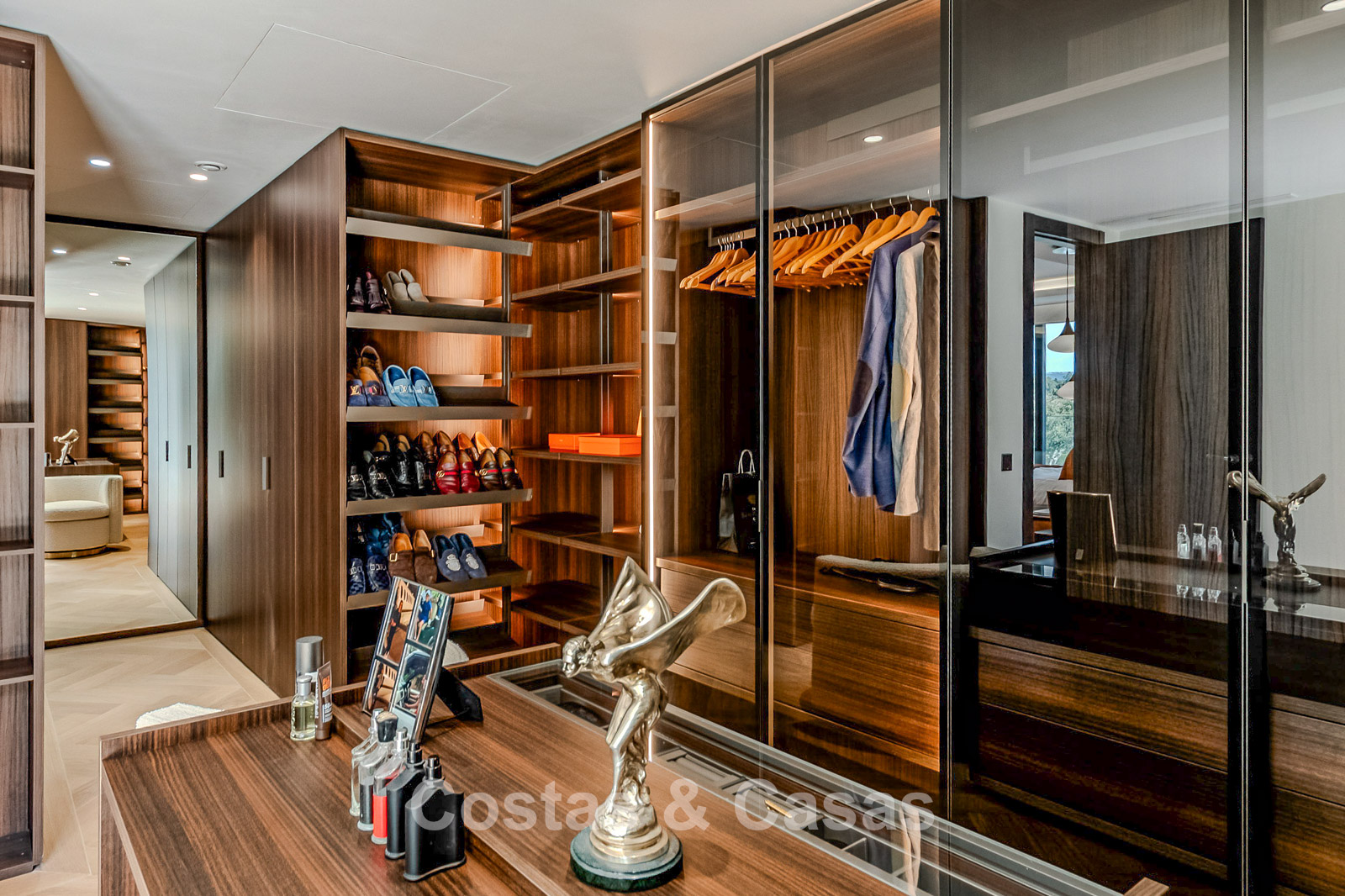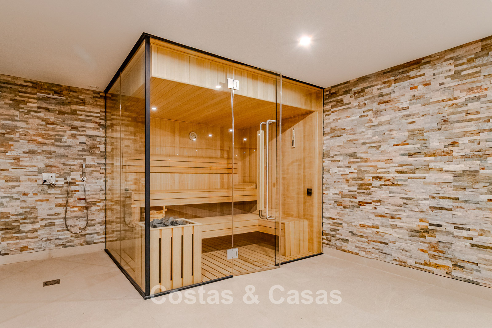 Autres caractéristiques : Ascenseur privé desservant tous les étages. Climatisation pour le refroidissement et le chauffage. Chauffage au sol. Cheminée moderne. (Plusieurs) Armoires intégrées sur mesure. Double vitrage. Balustrades en verre autour des terrasses. Éclairage LED intérieur et extérieur. Panneaux solaires. Système d'alarme avec caméras de vidéosurveillance.