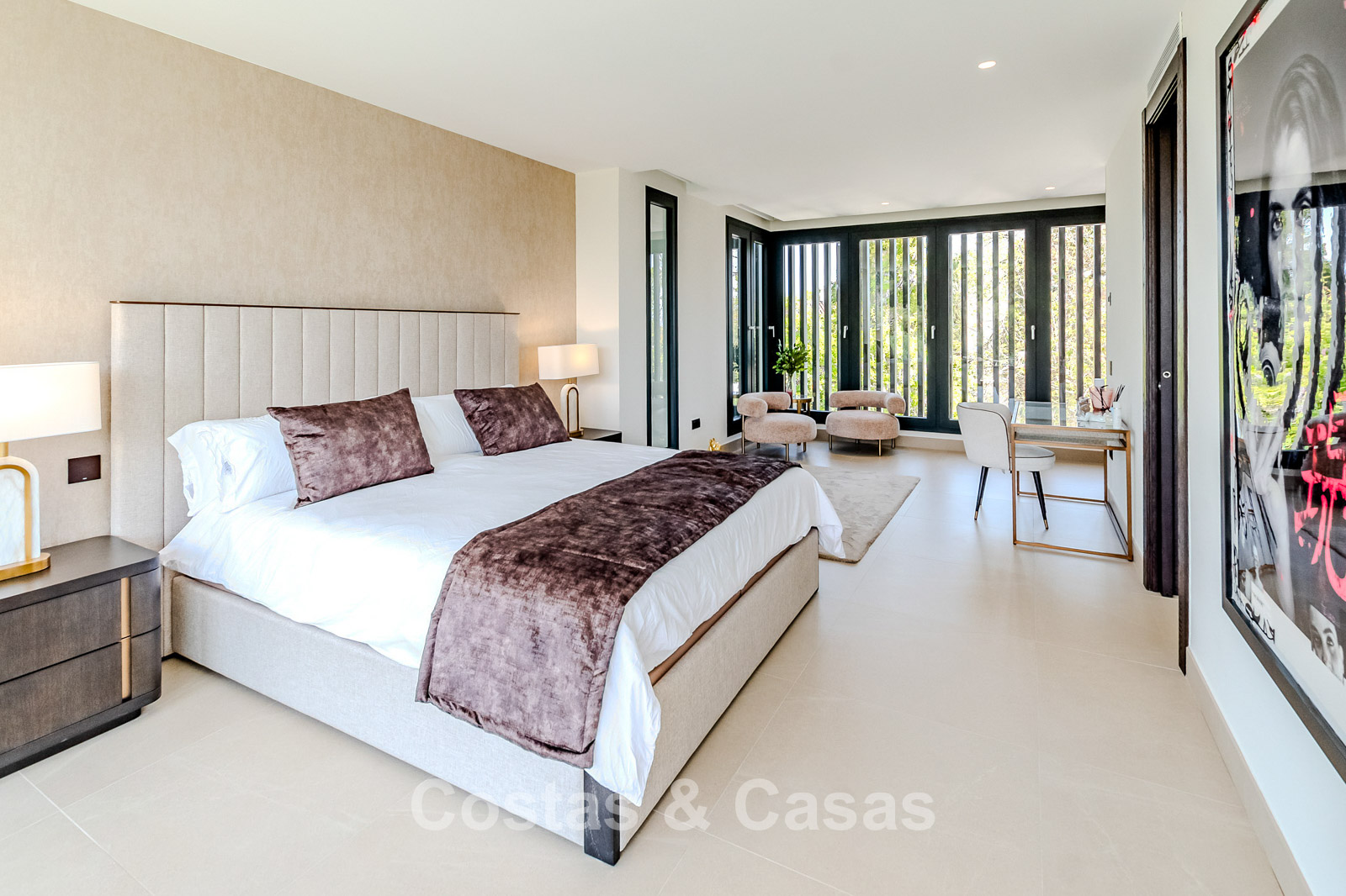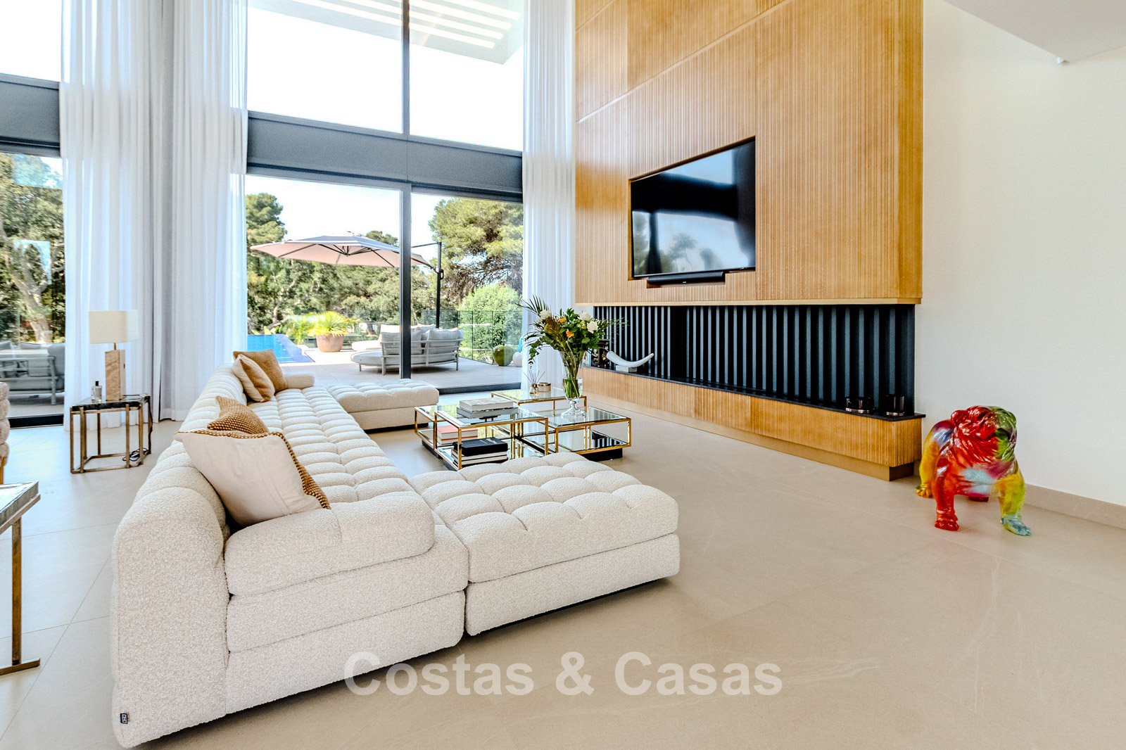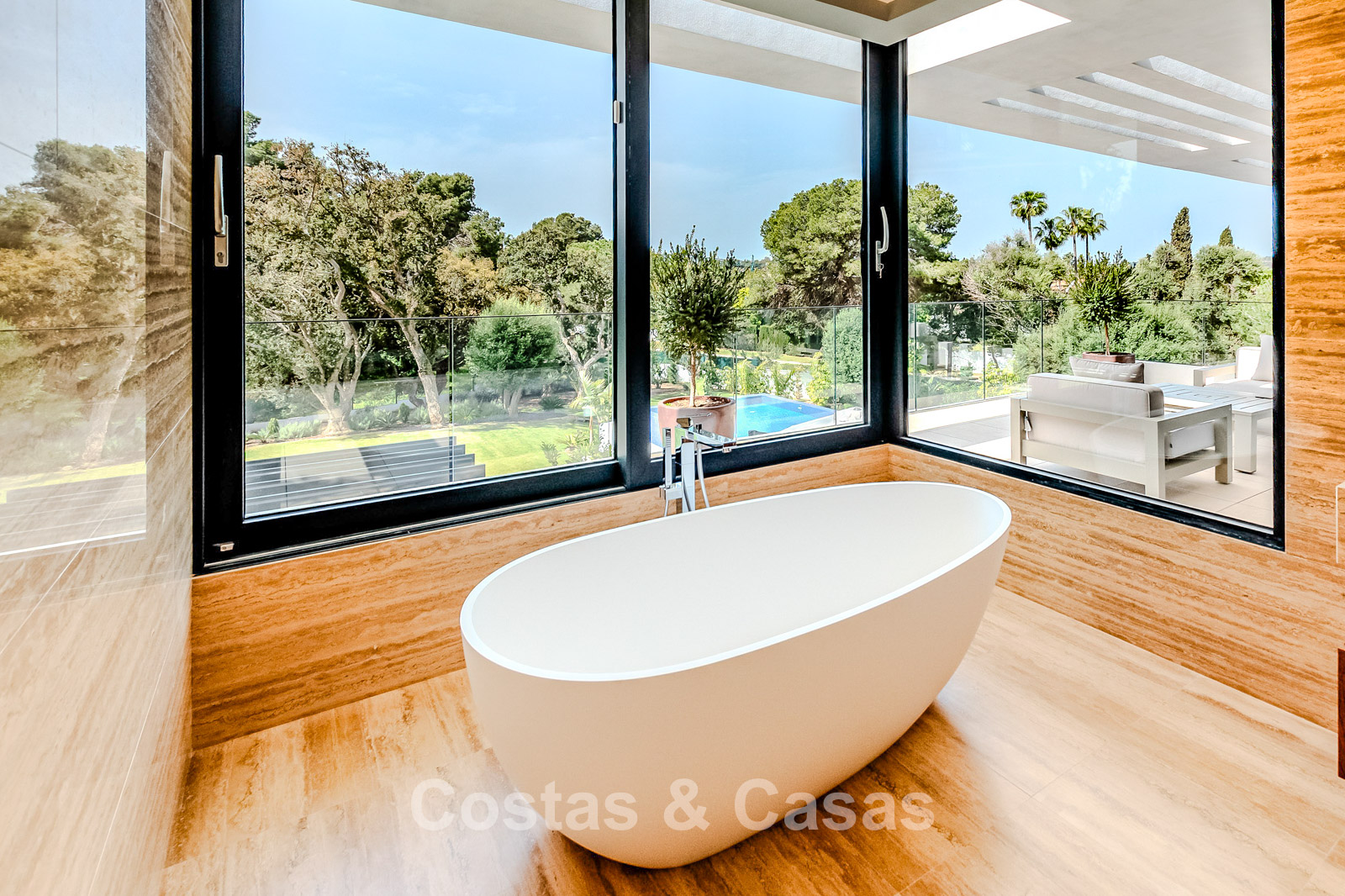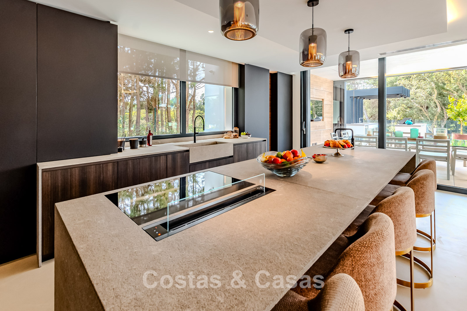Autres caractéristiques : Ascenseur privé desservant tous les étages. Climatisation pour le refroidissement et le chauffage. Chauffage au sol. Cheminée moderne. (Plusieurs) Armoires intégrées sur mesure. Double vitrage. Balustrades en verre autour des terrasses. Éclairage LED intérieur et extérieur. Panneaux solaires. Système d'alarme avec caméras de vidéosurveillance.