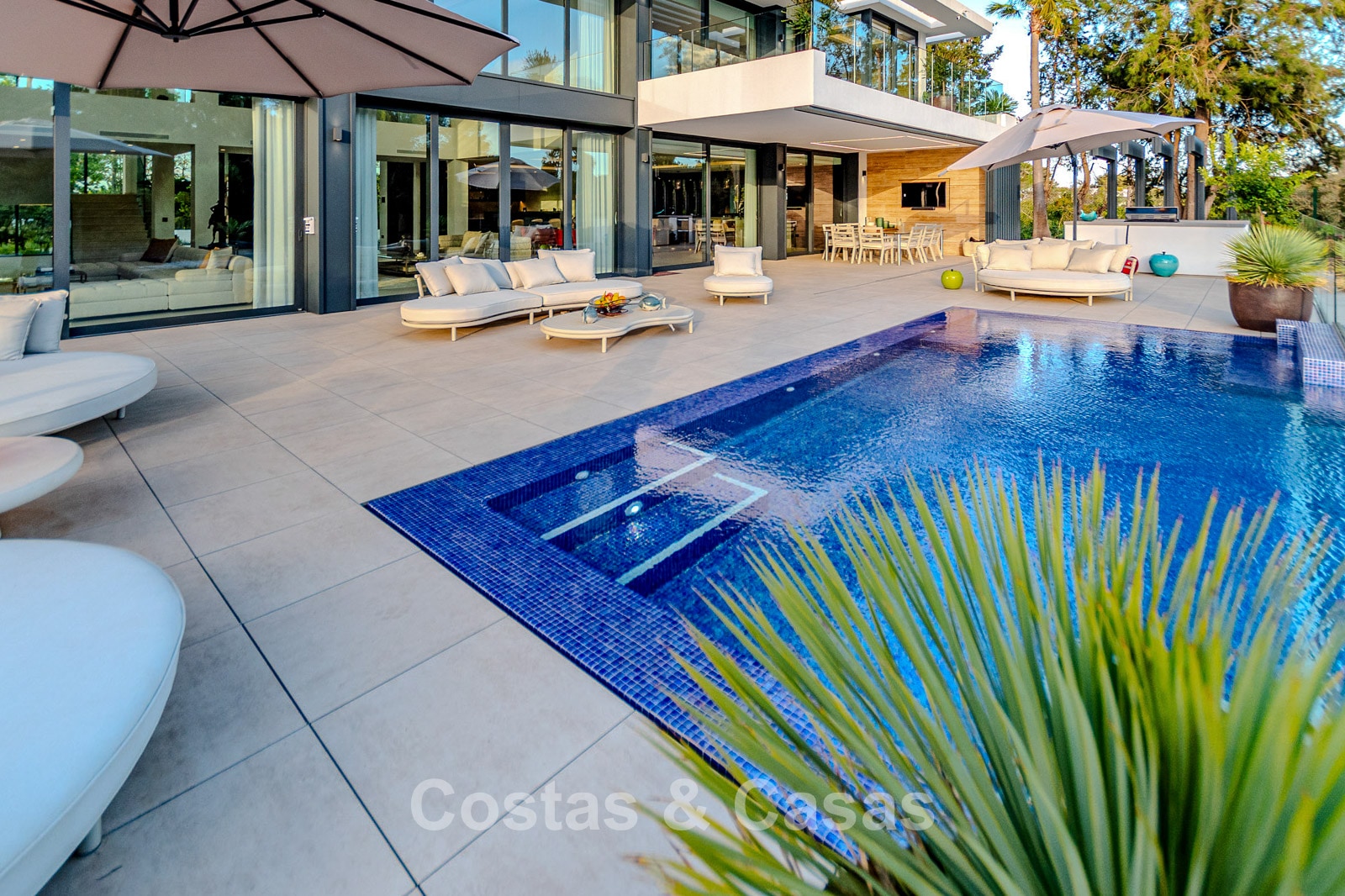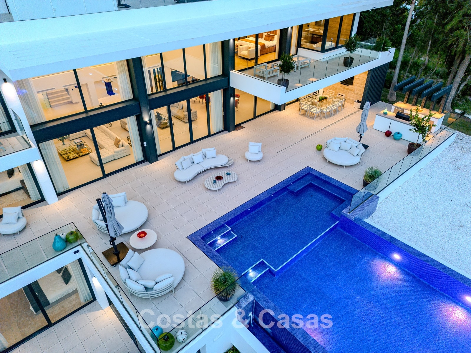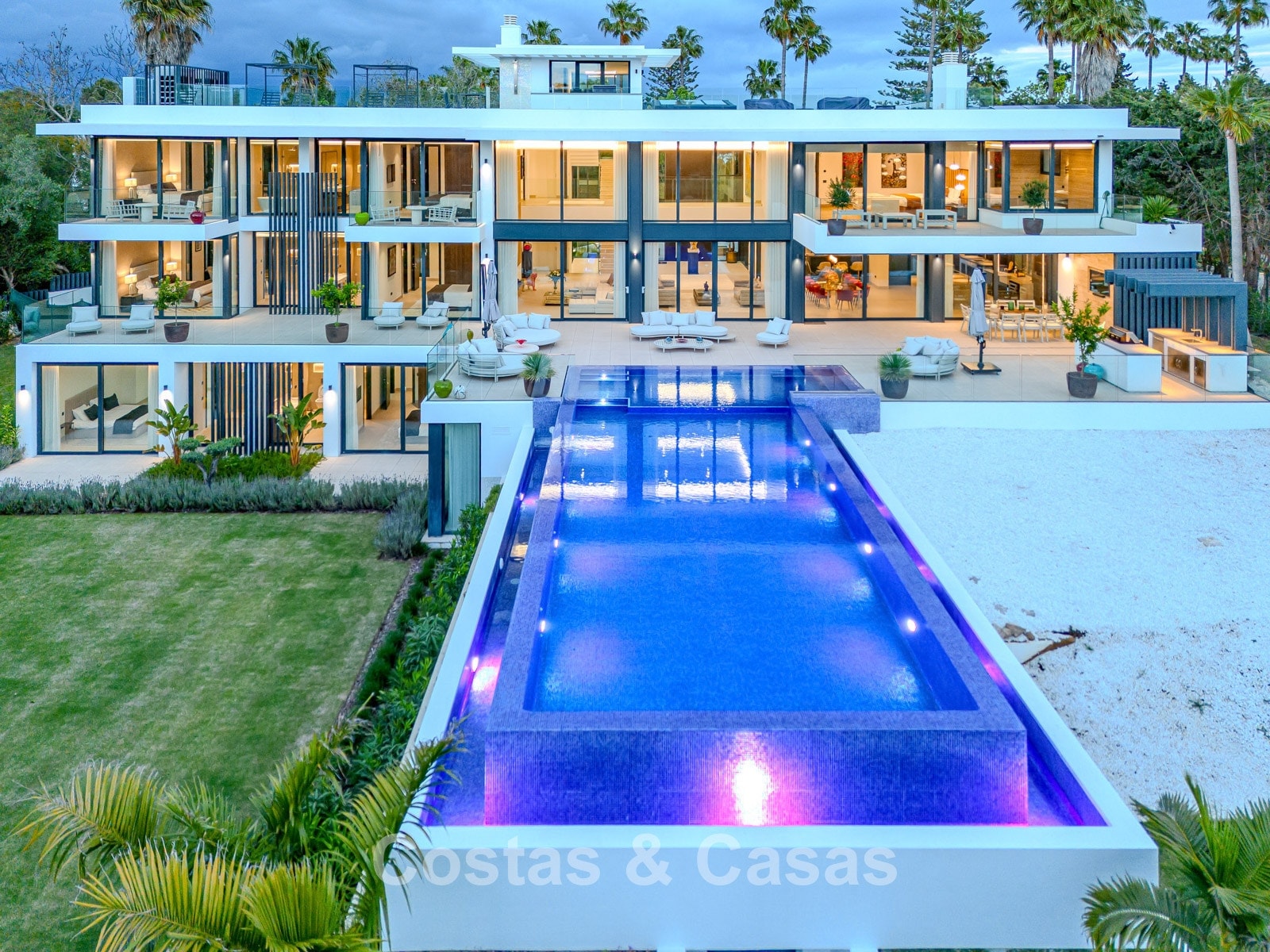 Terrain : 3 828 m² Superficie construite : 2 173 m² Terrasses : 512 m² Chambres : 7 Salles de bain : 8