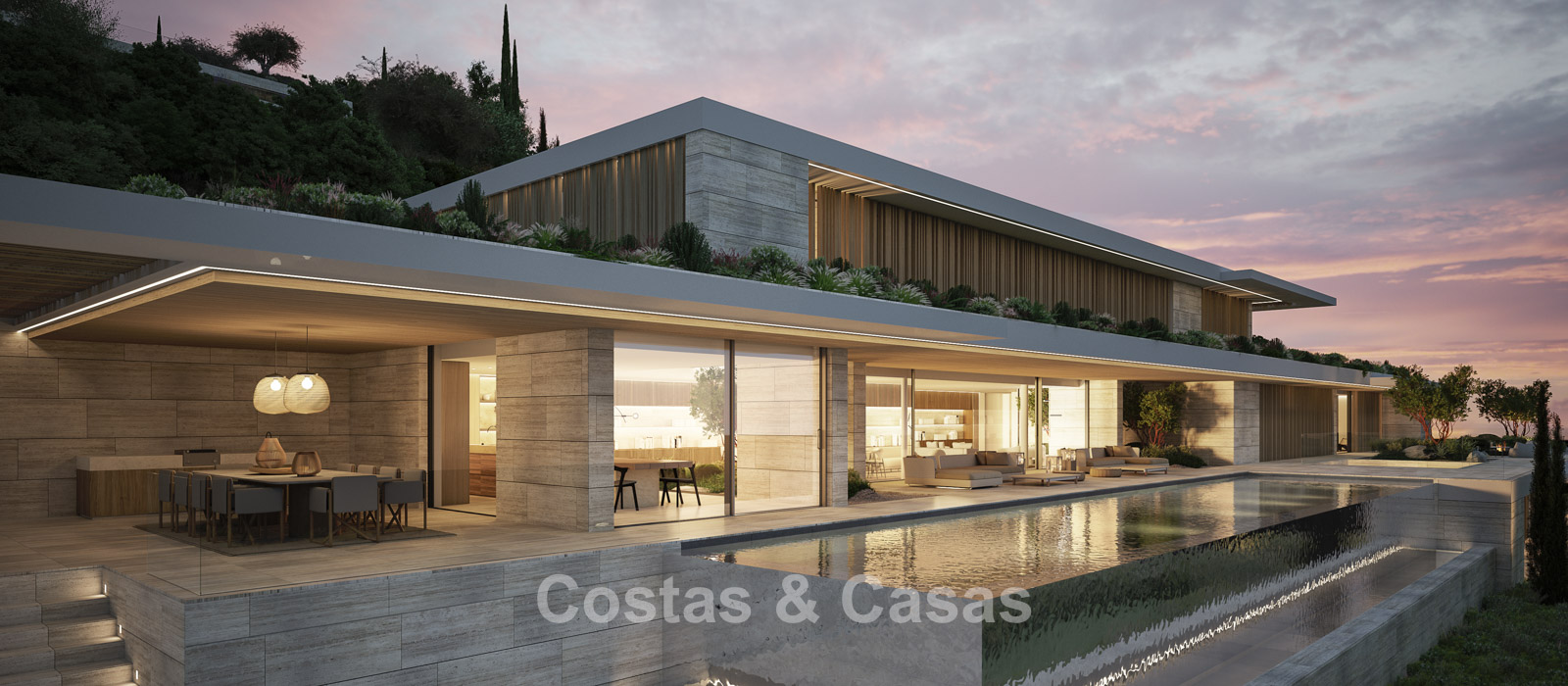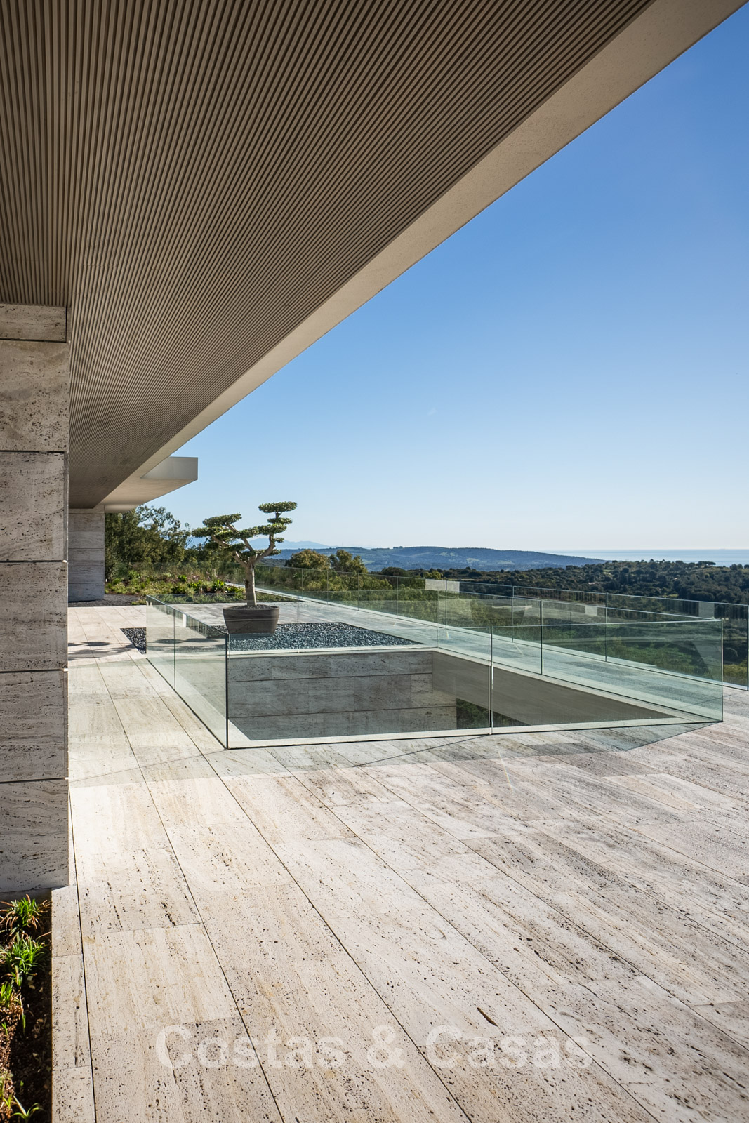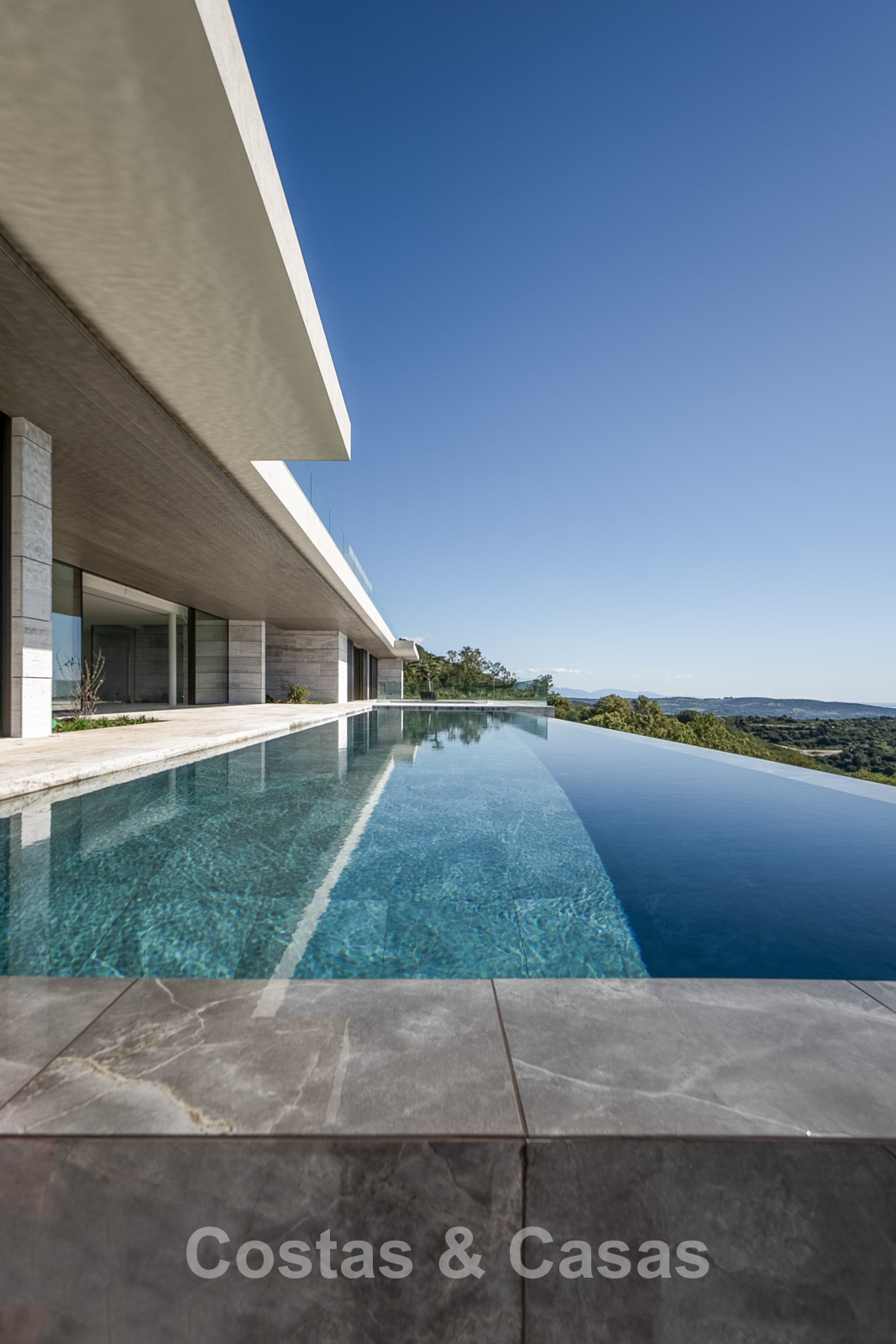 Terrain : 4 405 m² Surface construite : 2 338 m² Surface intérieure : 1 770 m² Superficie de la terrasse couverte : 395 m² Superficie de la terrasse ouverte : 759 m² Allée : 460 m² Plateformes de jardin et murs de soutènement : 800 m² Chambres : 7 Salles de bain : 7 Piscine à débordement : 25 mètres 3 étages + entrée