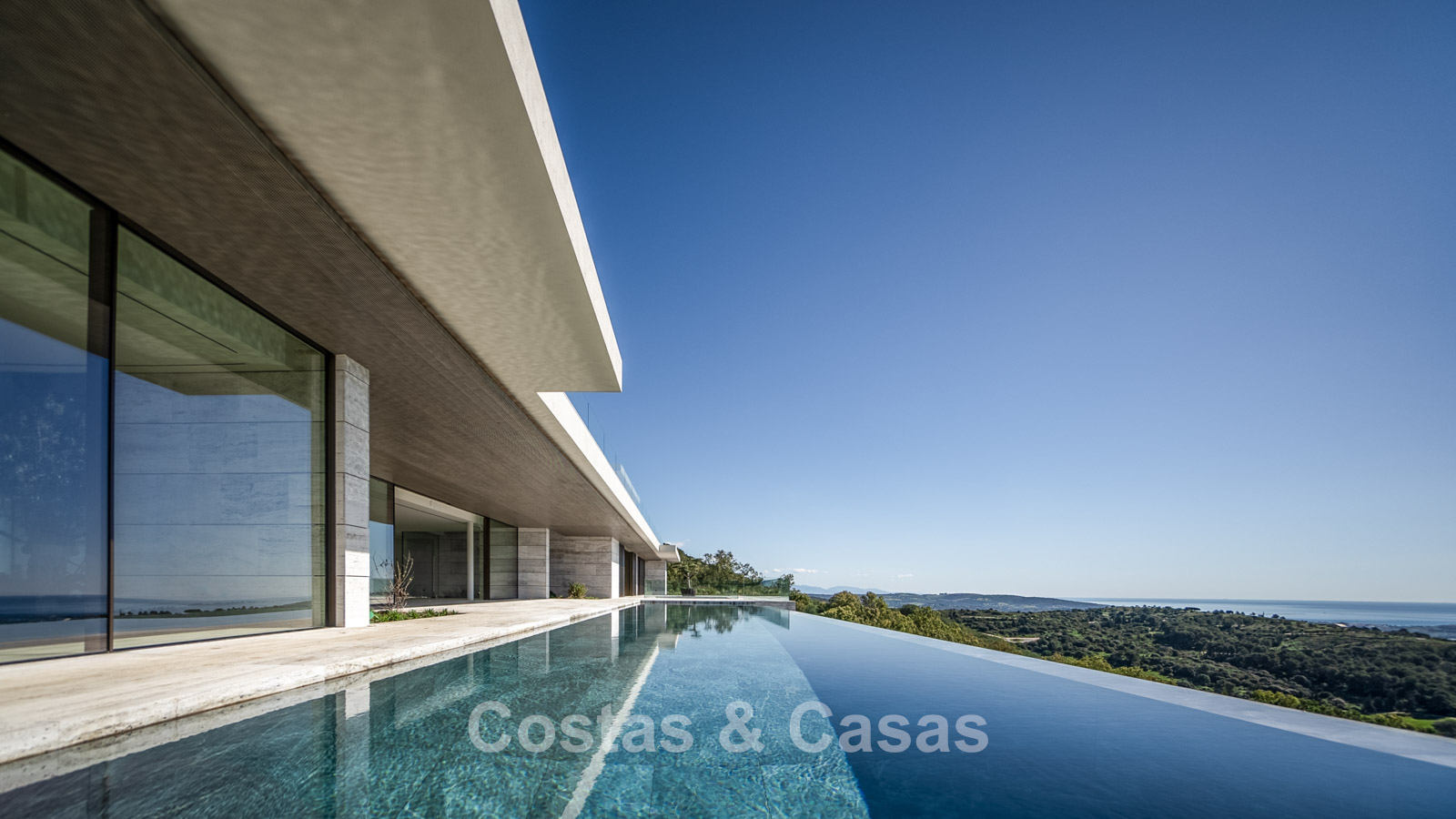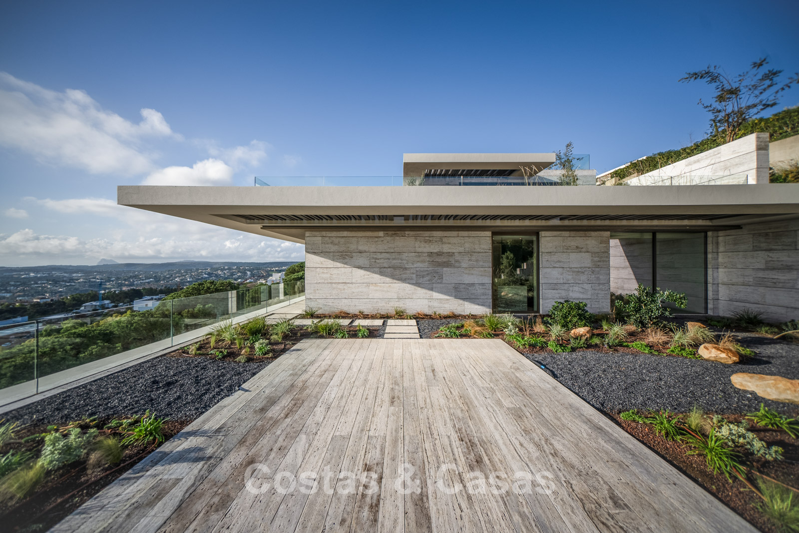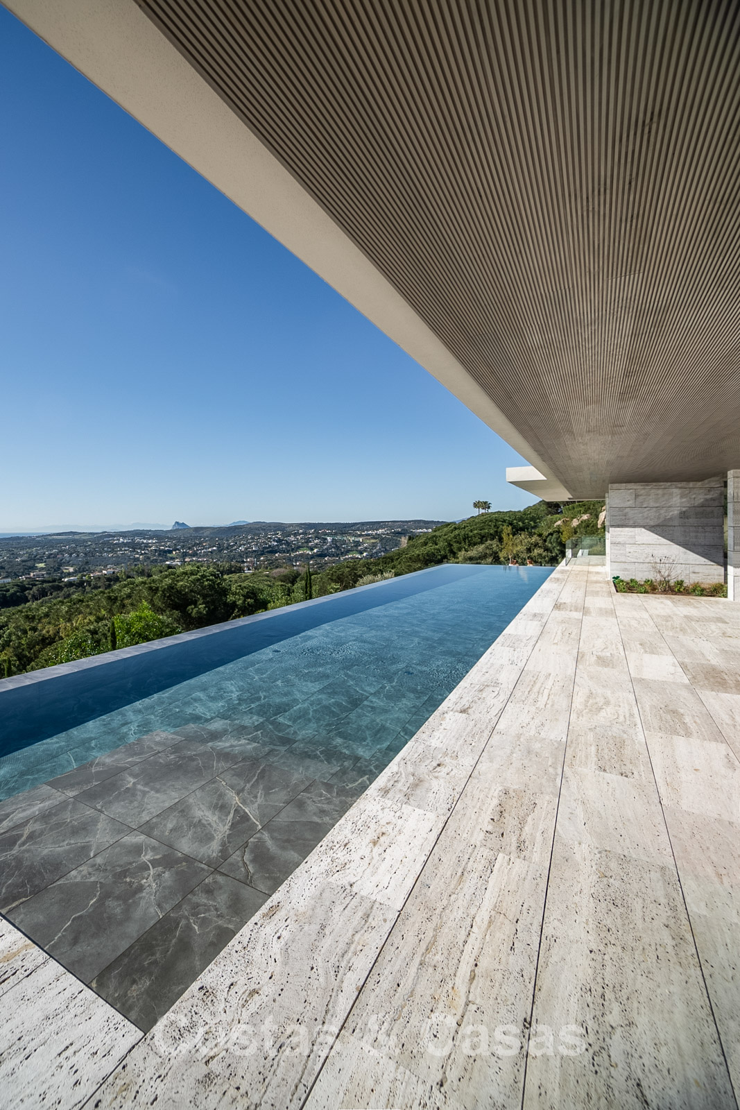 Vaste terrain de près de 4 500 m² situé en hauteur. Le jardin paysager est un chef-d'œuvre architectural, avec ses plantes tropicales soigneusement aménagées et sa pelouse. Spectaculaire piscine à débordement de 25 mètres avec terrasses ensoleillées adjacentes. De grandes terrasses ouvertes et couvertes offrent un vaste espace de détente et de restauration. Vue panoramique imprenable sur les parcours de golf et le littoral, jusqu'à Gibraltar, l'Afrique et la mer Méditerranée.