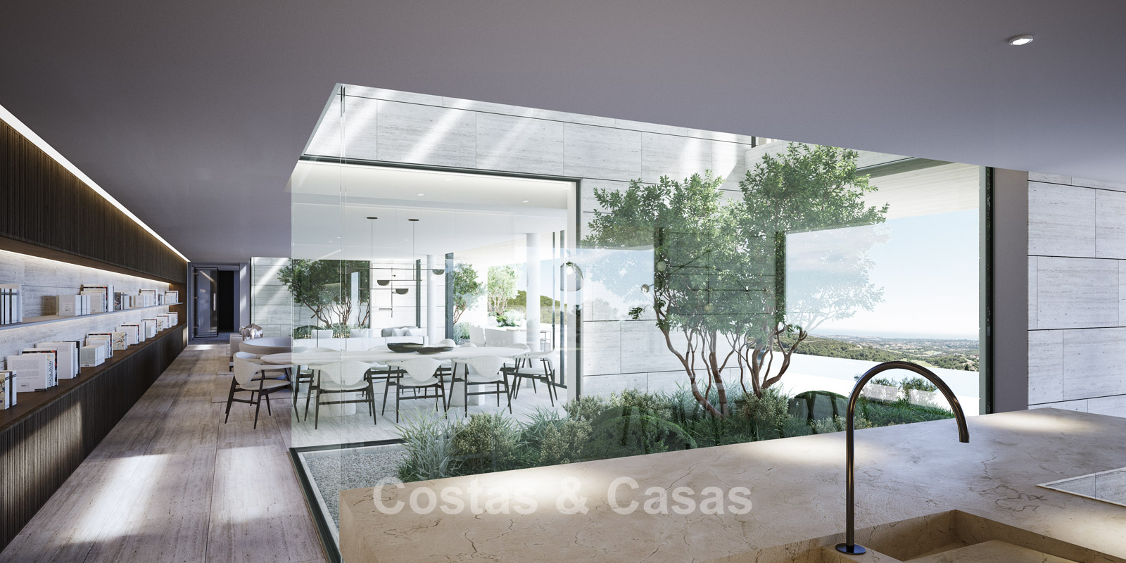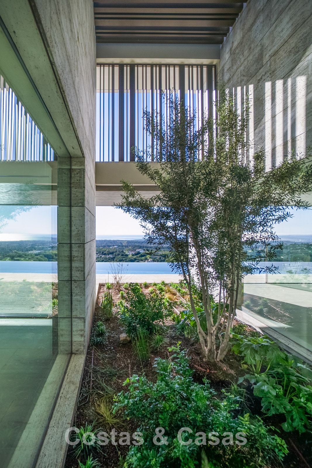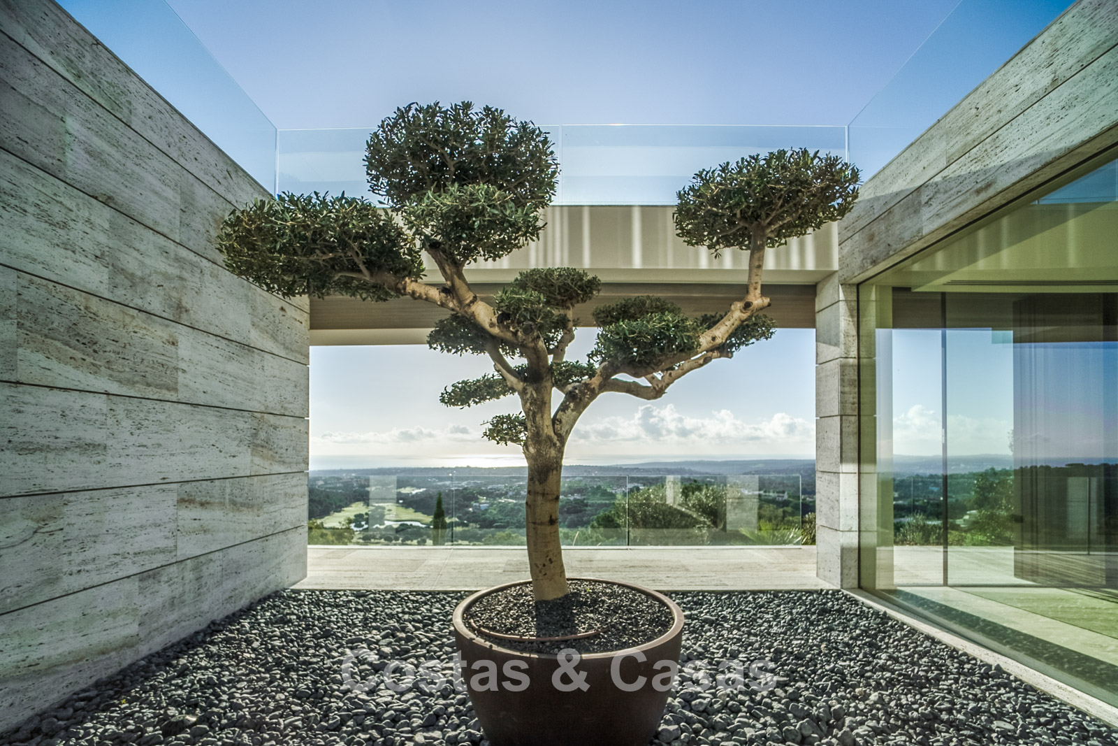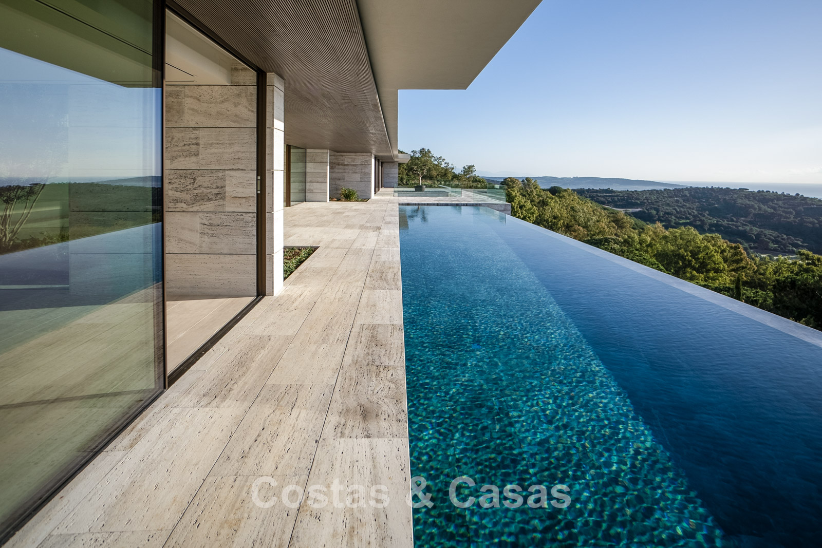 Vaste terrain de près de 4 500 m² situé en hauteur. Le jardin paysager est un chef-d'œuvre architectural, avec ses plantes tropicales soigneusement aménagées et sa pelouse. Spectaculaire piscine à débordement de 25 mètres avec terrasses ensoleillées adjacentes. De grandes terrasses ouvertes et couvertes offrent un vaste espace de détente et de restauration. Vue panoramique imprenable sur les parcours de golf et le littoral, jusqu'à Gibraltar, l'Afrique et la mer Méditerranée.