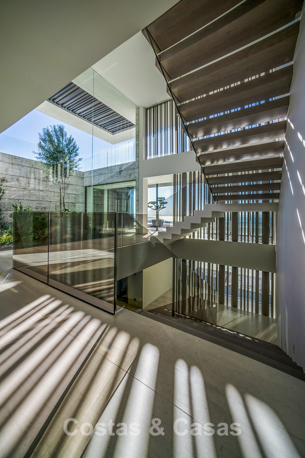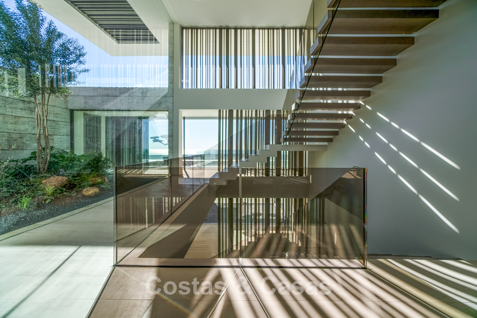 Autres prestations : Ascenseur privé. Climatisation pour le rafraîchissement et le chauffage. Chauffage au sol. Cheminée moderne. Double vitrage. Balustrades en verre autour des terrasses. Menuiserie sur mesure. Éclairage LED. Système domotique.