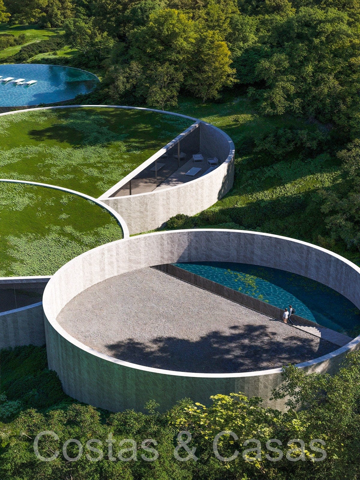Villa individuelle composée de volumes cylindriques qui épousent les irrégularités naturelles du terrain et s'intègrent ainsi subtilement à l'environnement naturel. Soigneusement conçue par un cabinet d'architectes de premier plan axé sur la redéfinition des normes de durabilité. L'entrée a été conçue avec un grand élément d'eau et un long escalier descendant menant au hall d'entrée. Les structures de fenêtres du sol au plafond avec des profils encastrés assurent un flux fluide entre les espaces intérieurs et extérieurs et génèrent également beaucoup de lumière naturelle. Cette approche avant-gardiste garantit une utilisation efficace des ressources naturelles et minimise l'impact environnemental sans sacrifier le raffinement et l'équipement. Un volume séparé sera aménagé avec des espaces de jour, tels que la cuisine, la salle à manger, le salon et un spa intérieur. Un volume optionnel peut être aménagé en logement d'hôtes. A l’étage inférieur se trouve un espace bien-être équipé d'une piscine intérieure chauffée, d'un sauna, d'un bain à vapeur turc, d'une salle de bain séparée et d'une salle de fitness. Dans cette partie se trouvent un home cinéma, un coin salon spacieux et une buanderie. Un garage pour 5+ voitures.