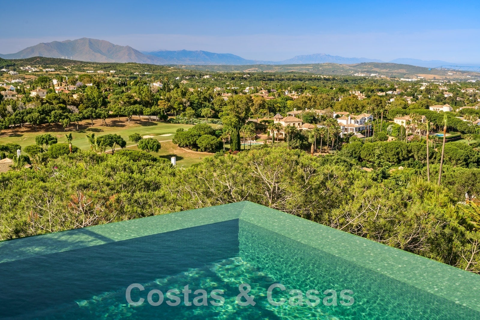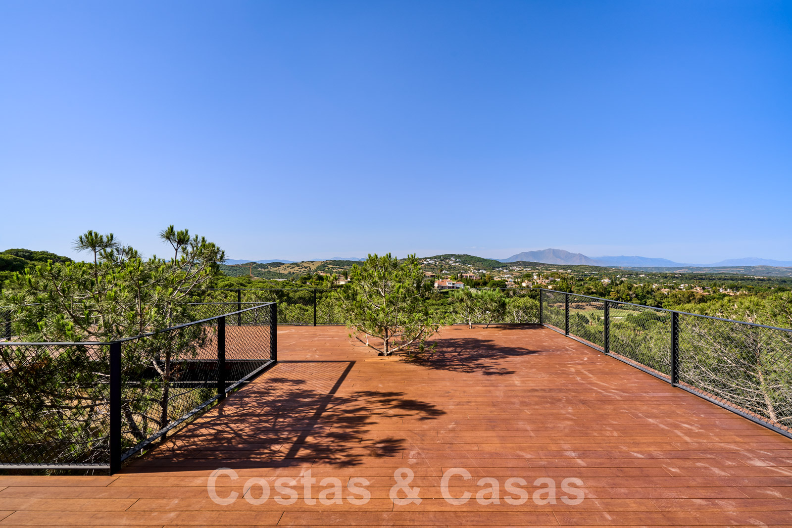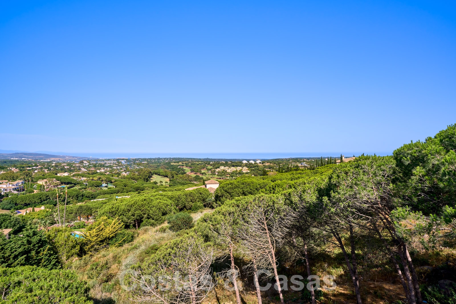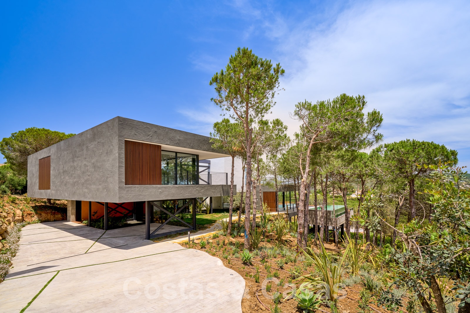 Terrain spacieux dans un environnement calme et naturel, entouré d'une forêt de pins matures, offrant l'intimité nécessaire. L'étage principal est surélevé et offre une vaste terrasse flottante qui s'intègre subtilement à la verdure environnante grâce à son caractère. Grande piscine à débordement. Superbe vue panoramique sur la vallée, le terrain de golf et le paysage montagneux en direction de la mer.