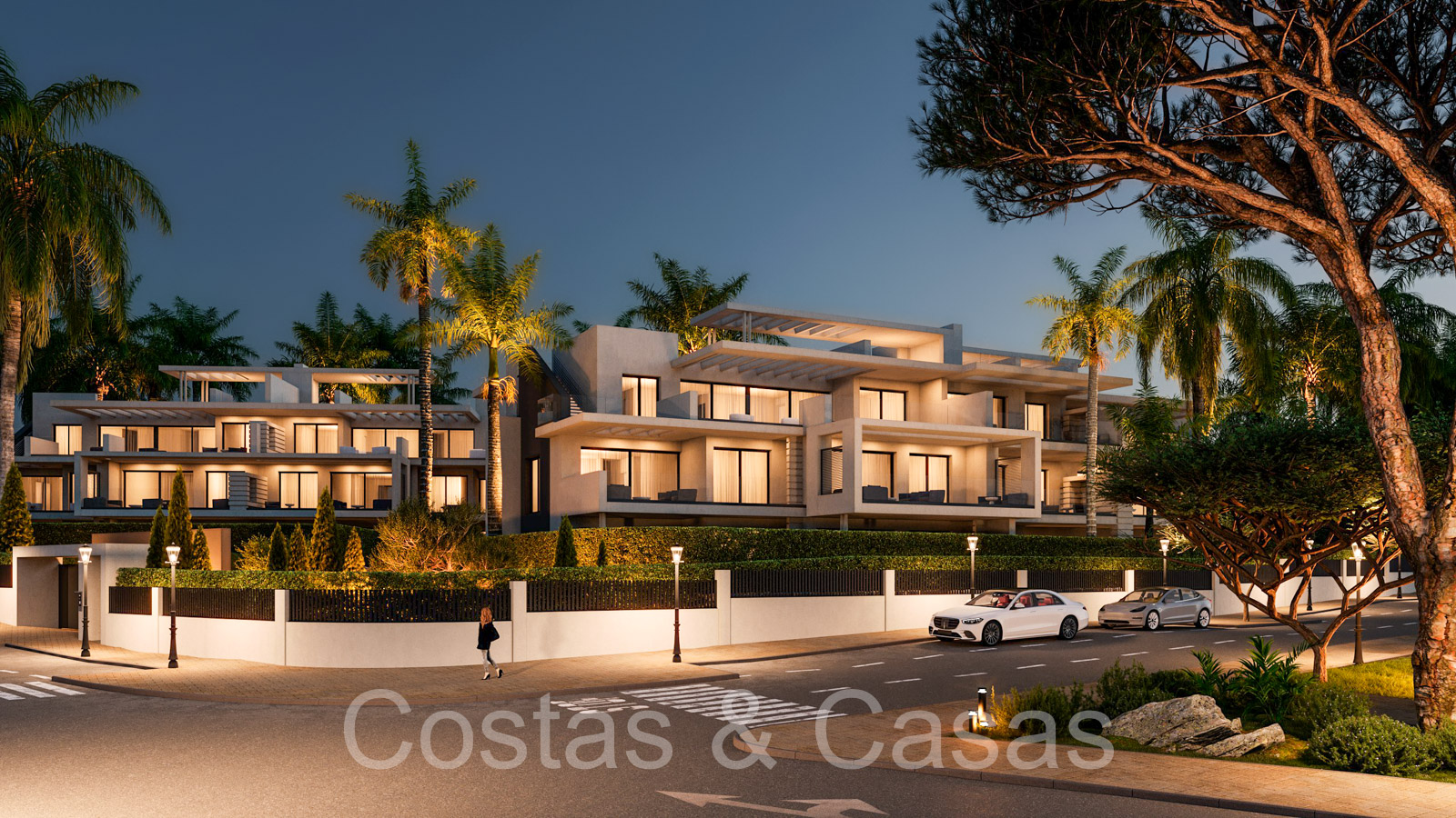 48 appartements modernes de nouvelle construction dans une communauté résidentielle fermée. Utiliser des matériaux de haute qualité dans le respect des technologies respectueuses de l’environnement. Conçu par un cabinet d'architecte renommé. Appartements et penthouses de 2 ou 3 chambres. Terrasses spacieuses et ensoleillées avec une atmosphère relaxante. Les hautes fenêtres coulissantes génèrent beaucoup de lumière naturelle dans les maisons et donnent sur les terrasses spacieuses. Les penthouses bénéficient de vastes terrasses et d'une vue panoramique sur la mer. Les appartements du rez-de-chaussée bénéficient d'un jardin privatif. Un intérieur élégant avec un agencement ouvert. Cuisine ouverte, entièrement équipée avec des appareils électroménagers haut de gamme. Coin repas intégré. Débarras. Chaque appartement dispose d'une place de parking. Les penthouses disposent de 2 places de parking.