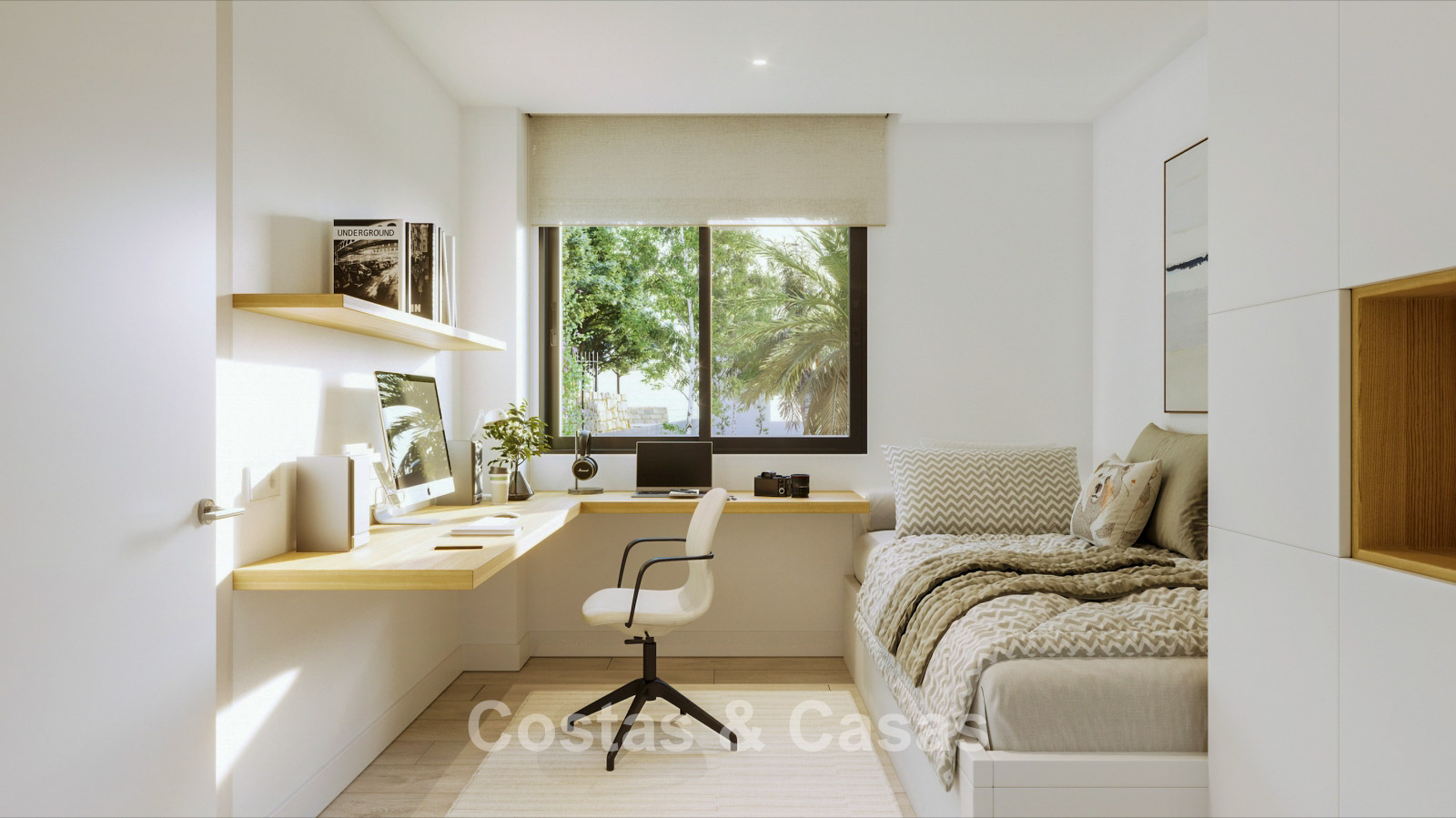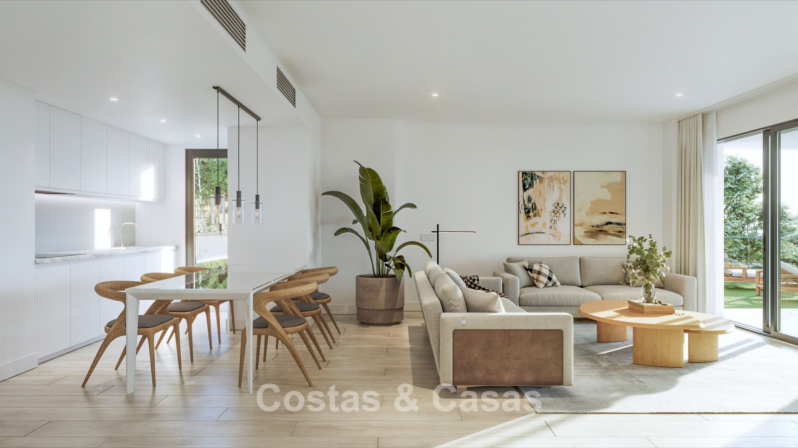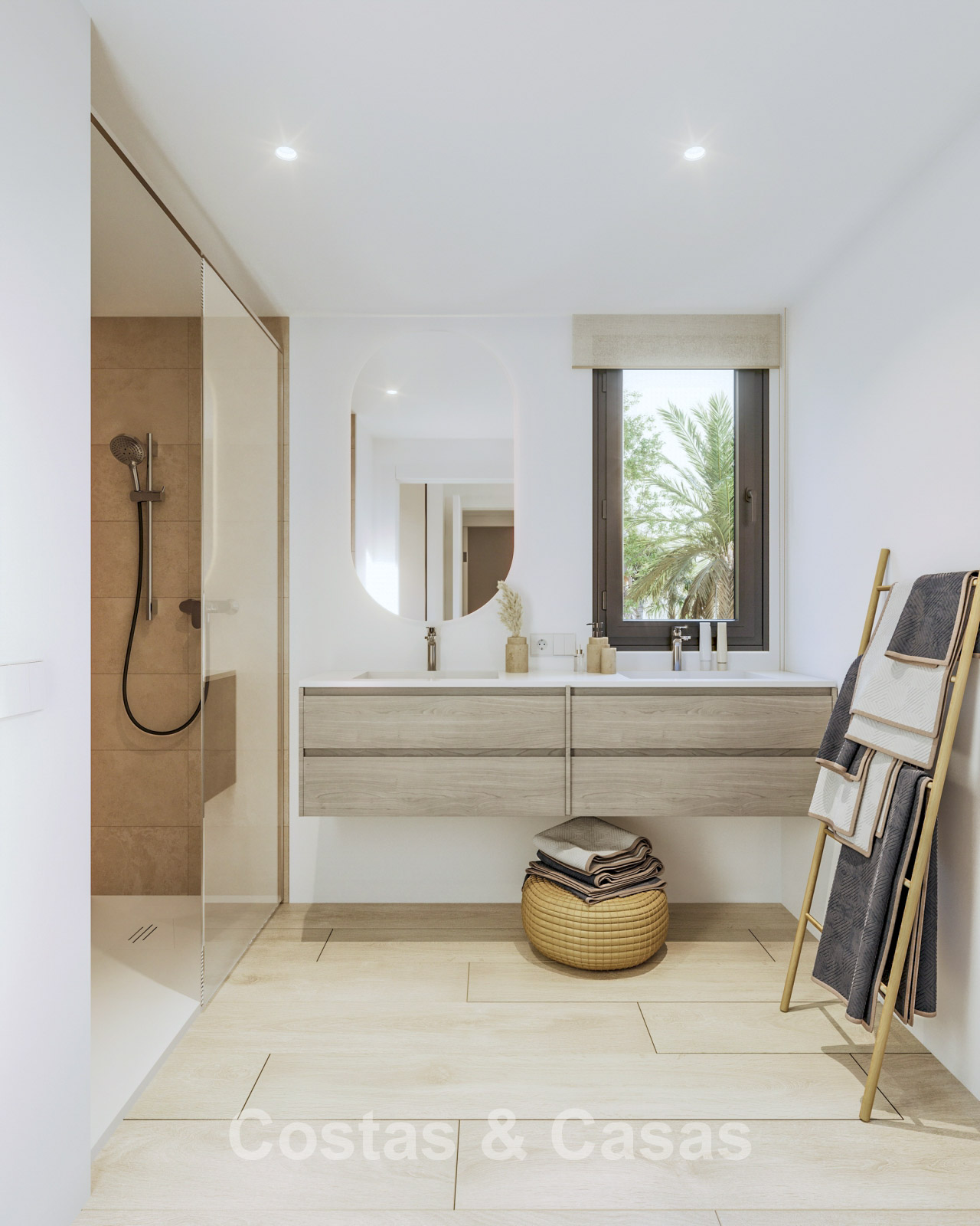 Appartements neufs au design contemporain. Conception respectueuse de l’environnement, matériaux et finitions de qualité supérieure. Intérieur moderne et tendance. Vue à 360 ° sur la mer et les montagnes. Appartements de 2 et 3 chambres. De grandes baies vitrées coulissantes laissent entrer la lumière naturelle et donnent sur les terrasses ensoleillées. Séjour avec coin TV et table à manger intégrée. Cuisine ouverte entièrement équipée avec des appareils électroménagers de qualité. Les appartements du rez-de-chaussée bénéficient d'un jardin privé. Les premiers étages disposent de vastes terrasses. Les penthouses bénéficient de magnifiques solariums. Salle à manger intégrée. Sols en porcelaine de qualité. Débarras et garage inclus.