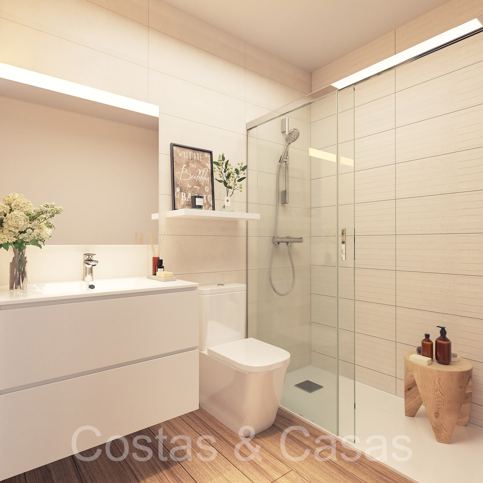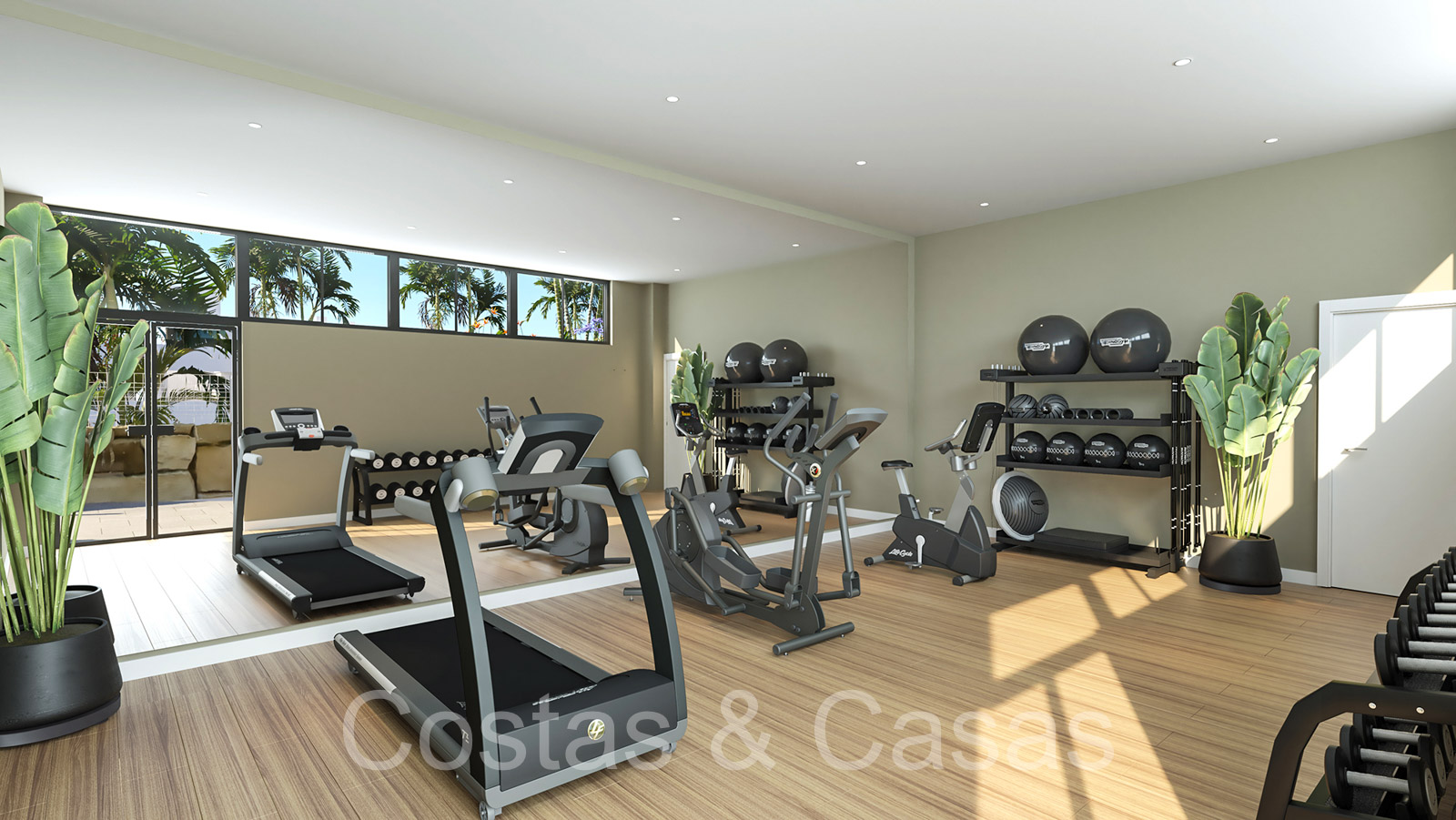 Climatisation. Balustrades en verre. Carrelage en porcelaine. Robinets avec système d'économie d'eau et d'énergie. Pré-installation pour véhicules électriques.