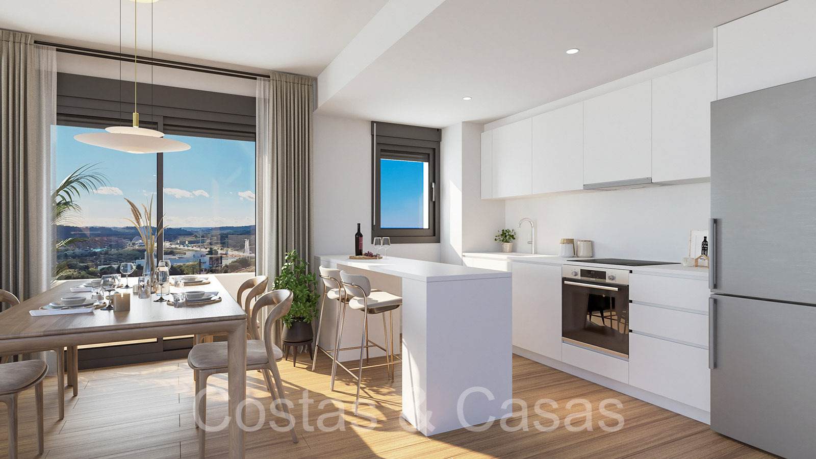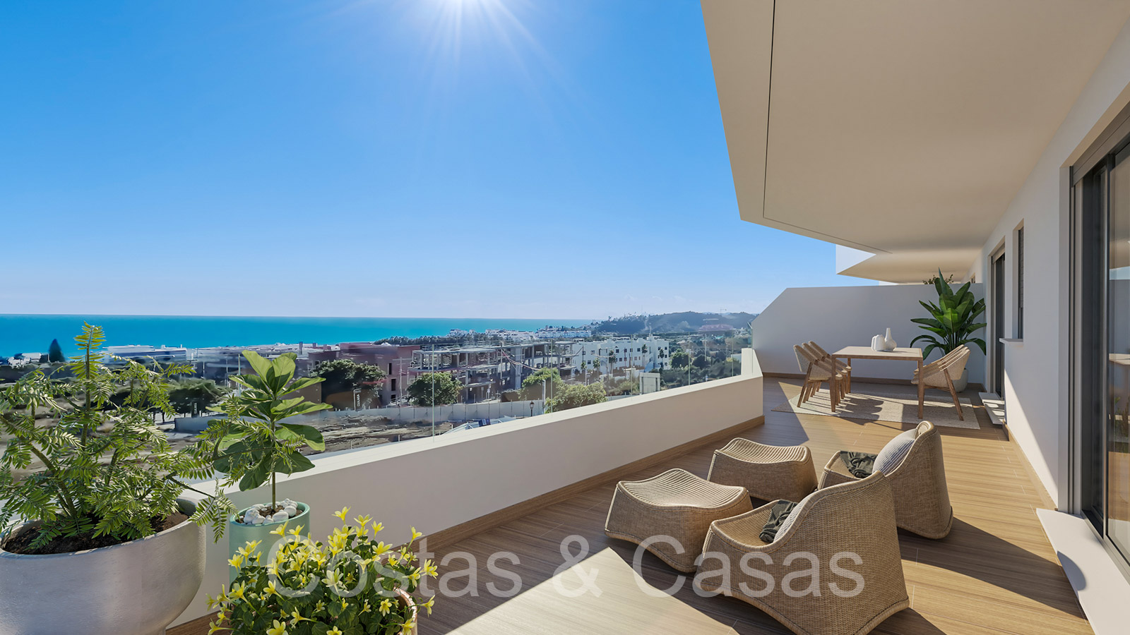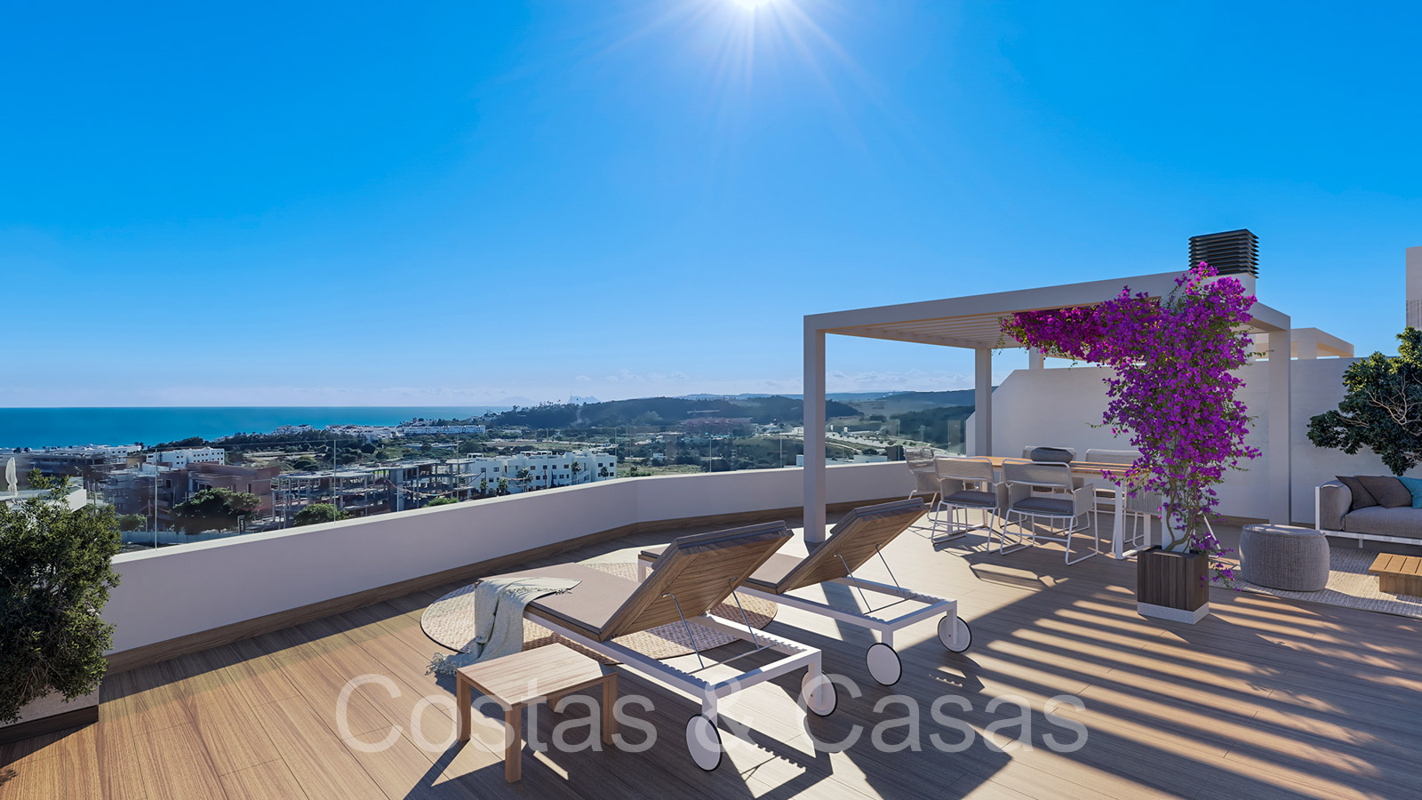 Appartements neufs au design contemporain. Construits avec de nouvelles techniques de construction et des installations économes en énergie. Meubles élégants et à la mode. Utilisation d'énergies renouvelables et durables pour la climatisation et la production d'eau chaude sanitaire. Appartements au rez-de-chaussée, appartements intermédiaires et penthouses avec 2 ou 3 chambres à coucher. Grâce à leur position surélevée, les appartements jouissent d'une vue imprenable sur la Méditerranée, Gibraltar et la côte africaine. Les penthouses disposent d'un grand solarium avec une pré-installation pour un jacuzzi. Certains appartements du rez-de-chaussée disposent d'un jardin privé. Cuisines entièrement équipées avec des appareils électroménagers de haute qualité. Salon ouvert avec salon de télévision et salle à manger intégrée. De grandes fenêtres coulissantes apportent beaucoup de lumière naturelle dans les appartements et donnent sur les terrasses. Un parking souterrain et un débarras privé.