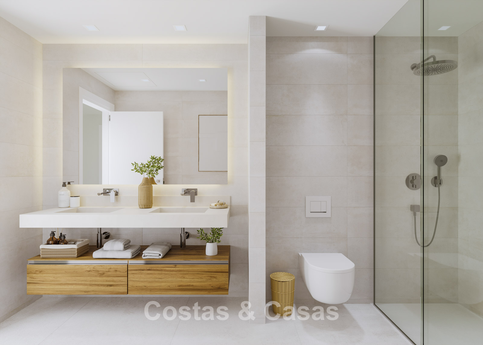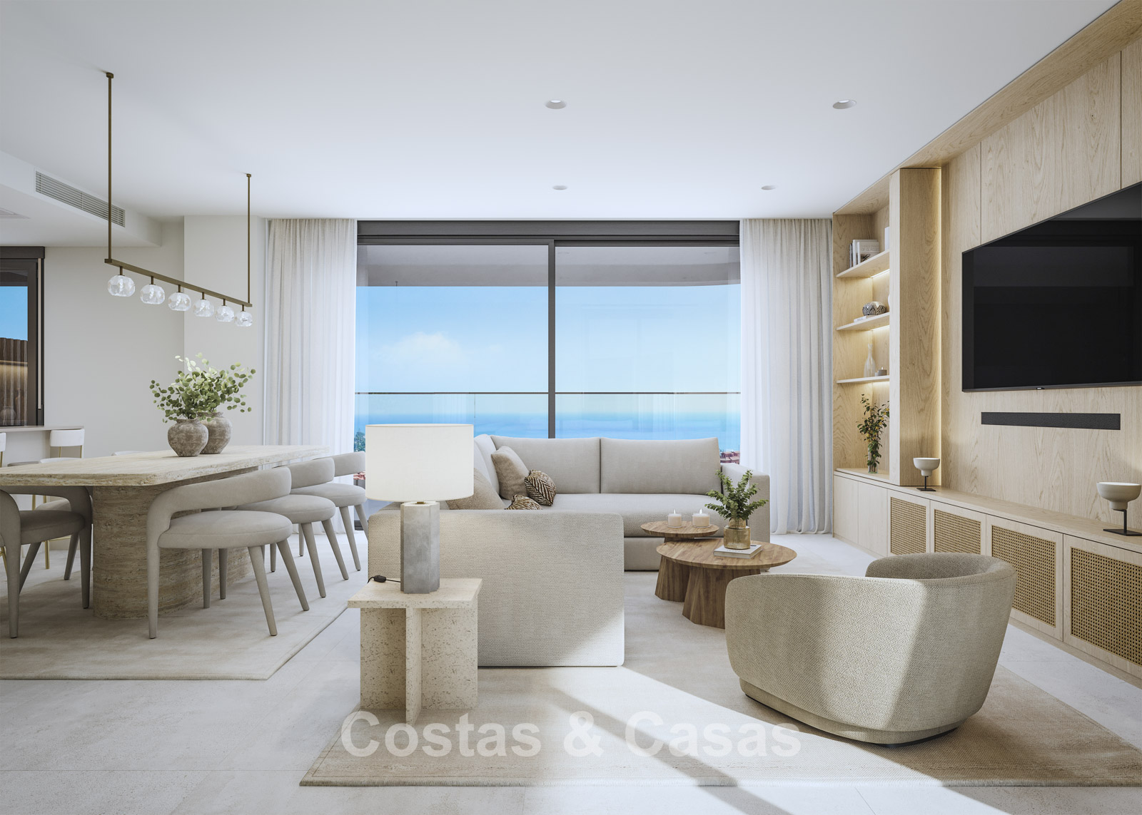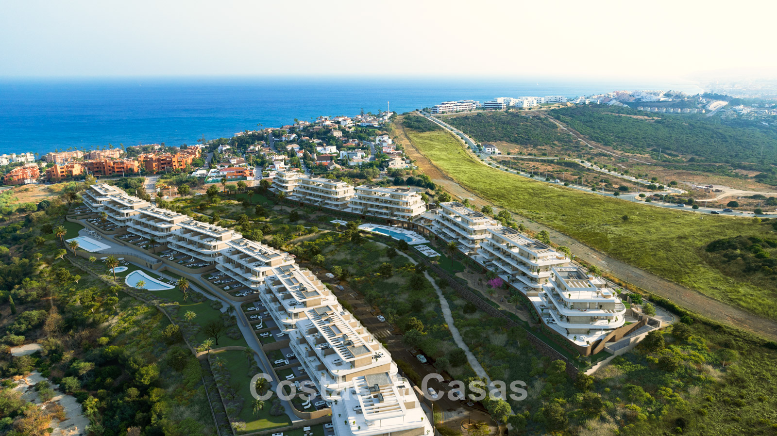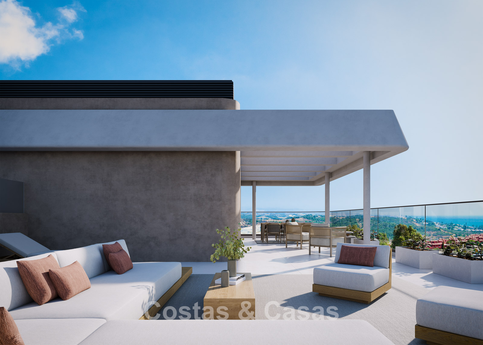 Autres caractéristiques : Chauffage par le sol à eau dans toute la maison. Chauffage électrique au sol dans les salles de bains. Double vitrage. Volets roulants électriques. Balustrades en verre autour de la terrasse. Menuiserie sur mesure. Système de télécommunication.