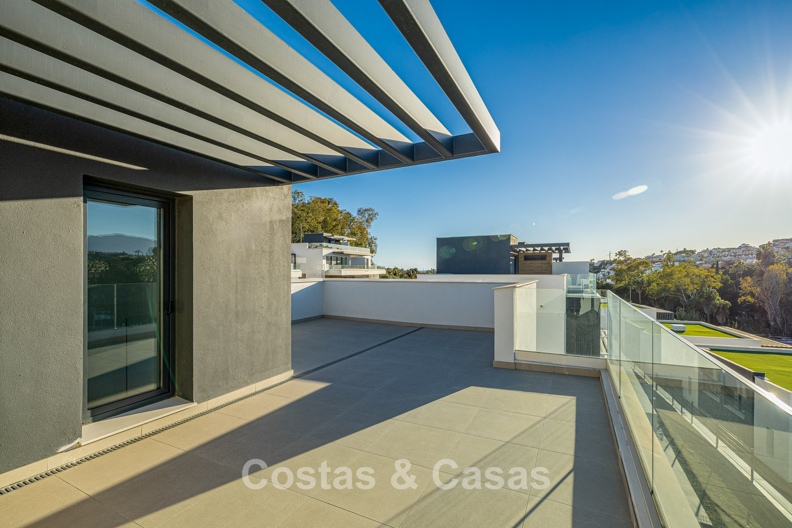 Autres caractéristiques: Climatisation Double vitrage Garde-corps en verre sur les terrasses Sols carrelés de couleur crème Placards intégrés sur mesure
