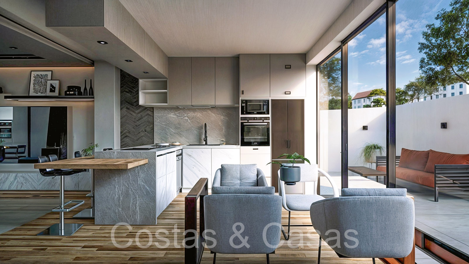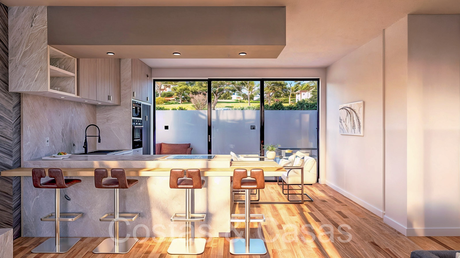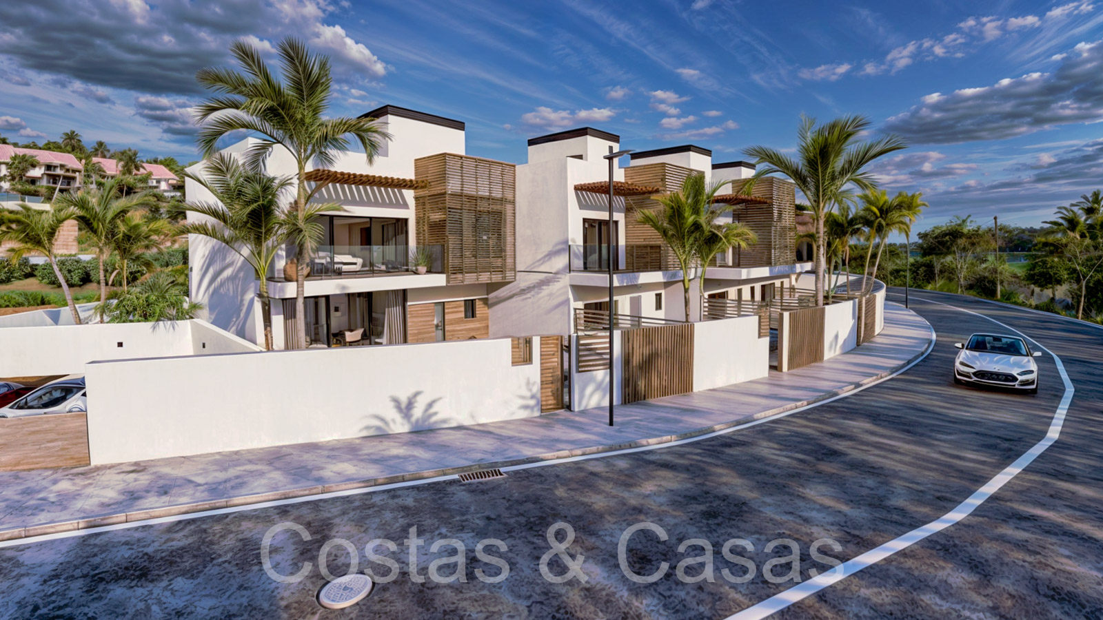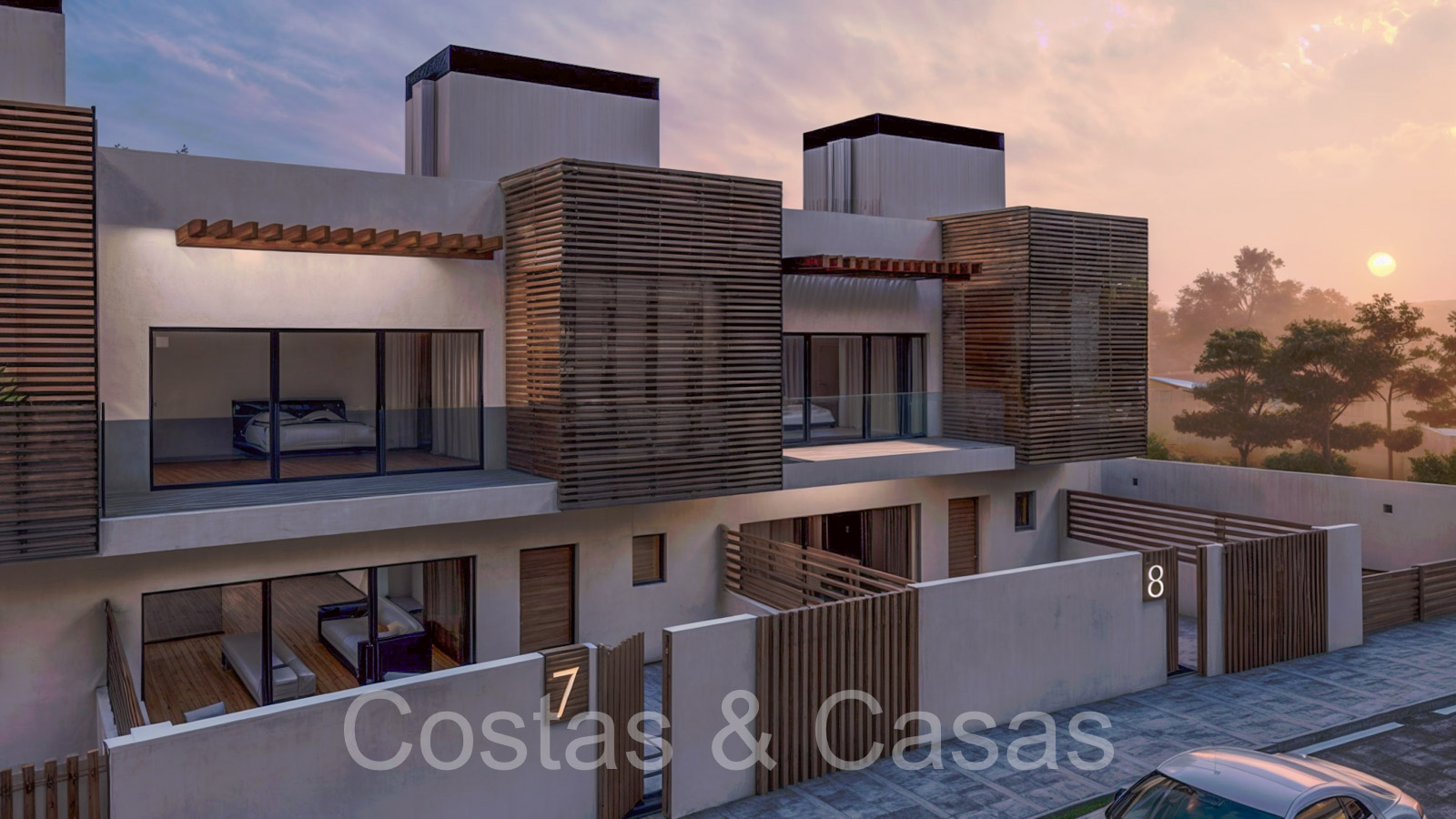 Collection de nouvelles maisons de ville adjacentes aux golfs. Soigneusement conçu avec une attention aux énergies économes en énergie. Chaque maison bénéficie d'un jardin privatif clos avec éventuellement une piscine. Depuis le solarium, vous pourrez profiter de vues spectaculaires sur les terrains de golf. De hautes fenêtres coulissantes s'ouvrent sur les espaces extérieurs et génèrent également beaucoup de lumière naturelle. Espace de vie ouvert. Cuisine ouverte, entièrement équipée avec des électroménagers haut de gamme et un îlot. 3 chambres, 3 salles de bains. L’étage inférieur peut être librement aménagé avec un man cave ou un home cinéma. Parking privé dans votre propre allée.