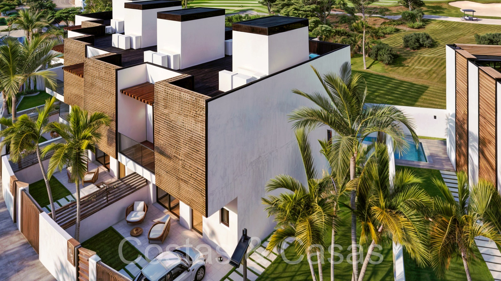 Maisons neuves et contemporaines à vendre, première ligne de golf à Estepona