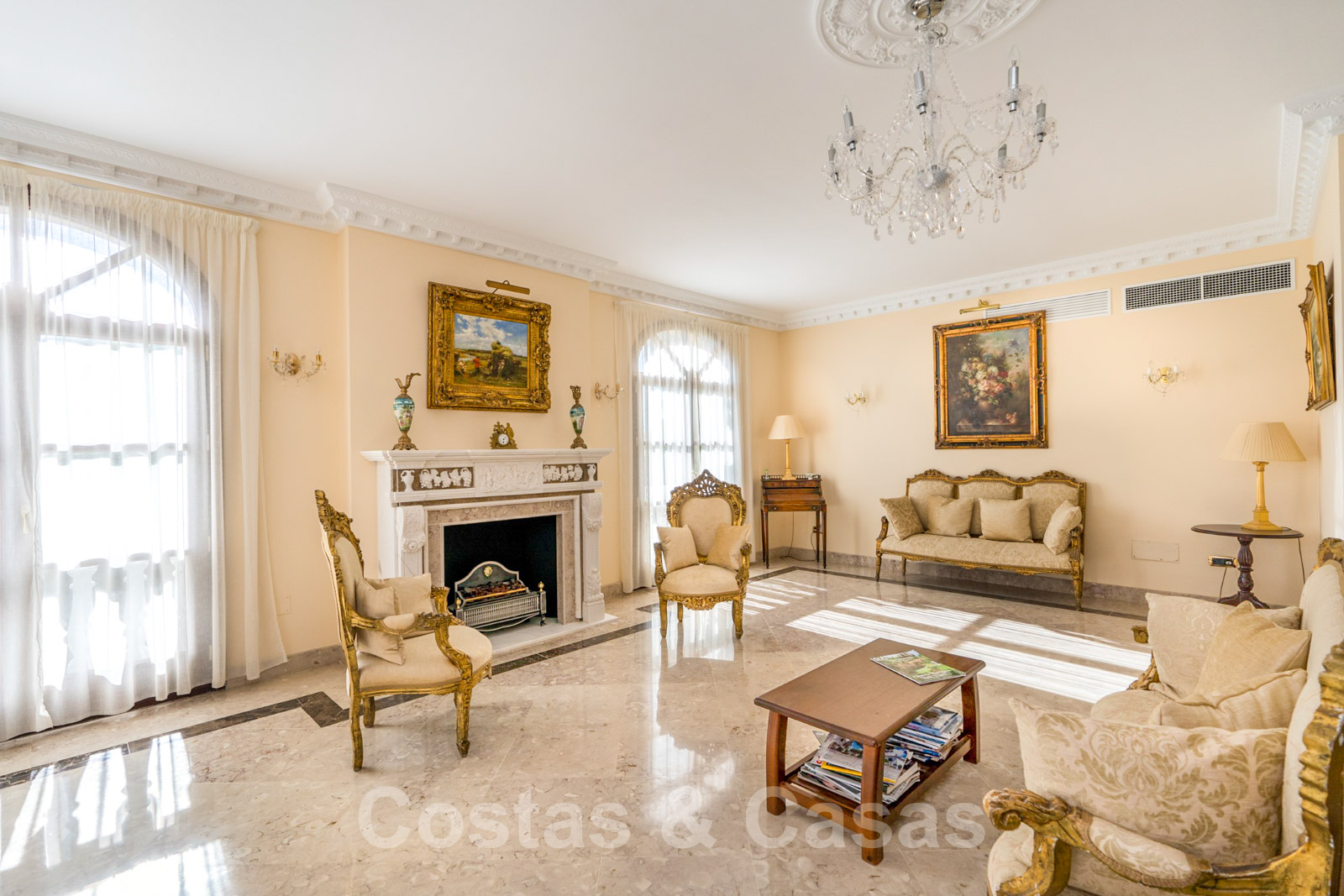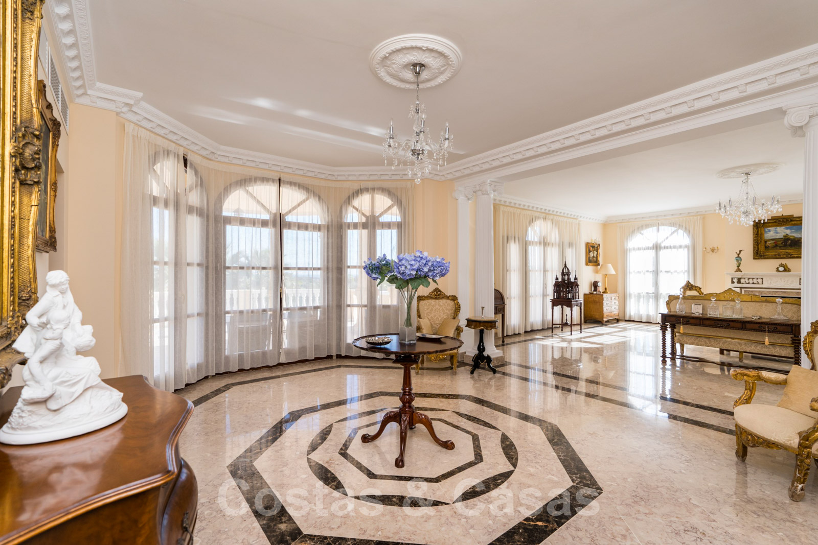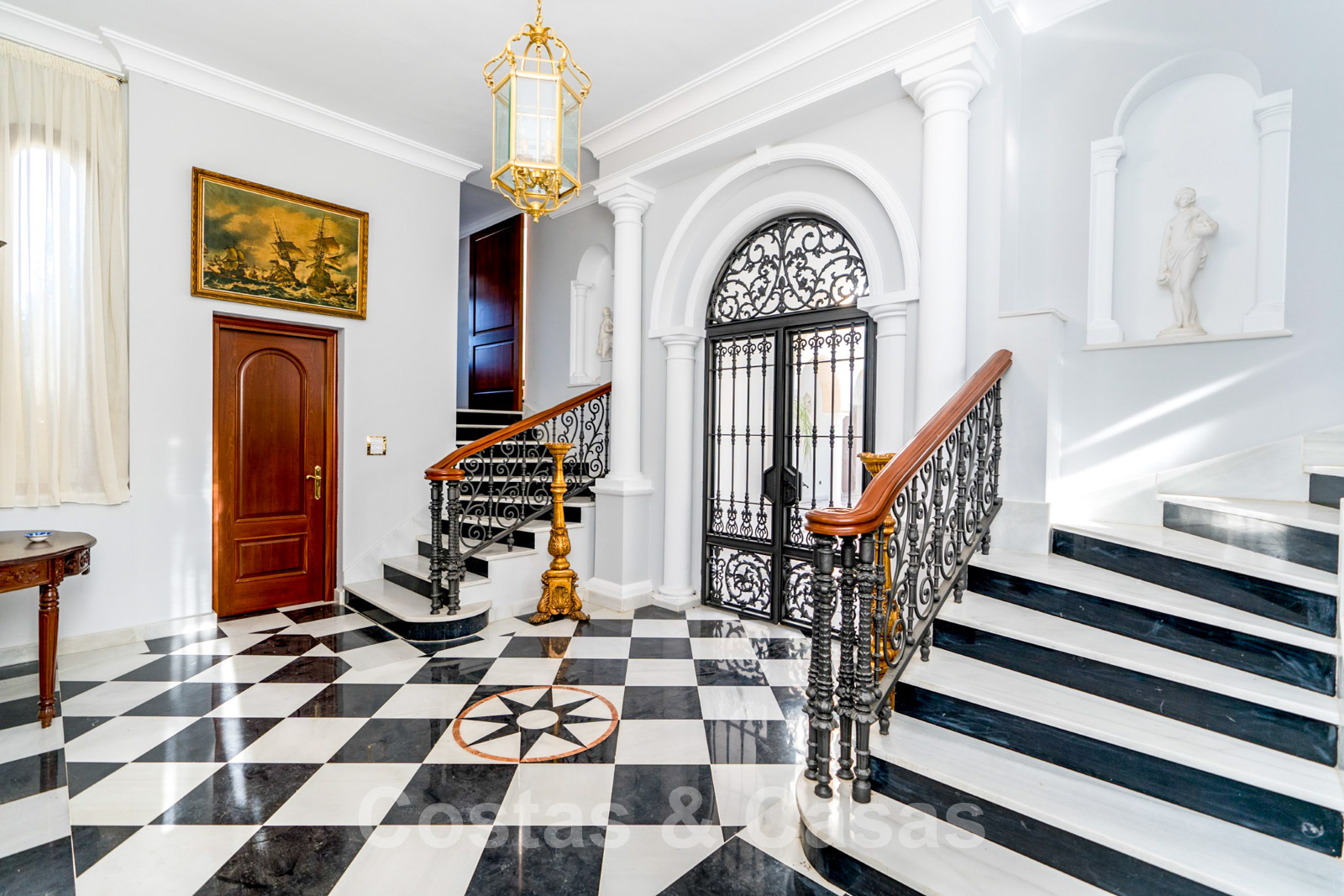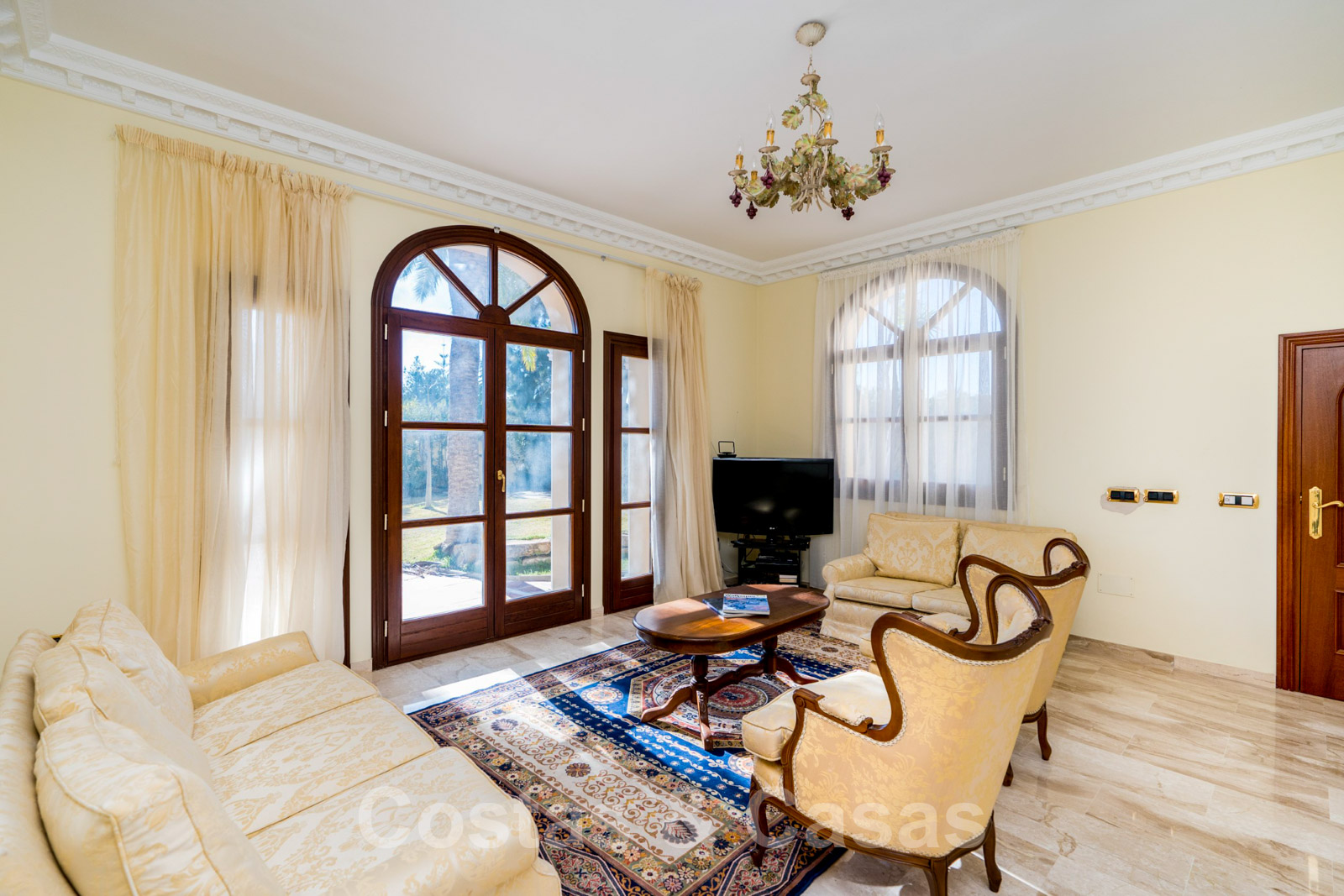 Elégante villa sur un grand terrain à vendre sur le New Golden Mile, à proximité de la plage et de la ville d'Estepona